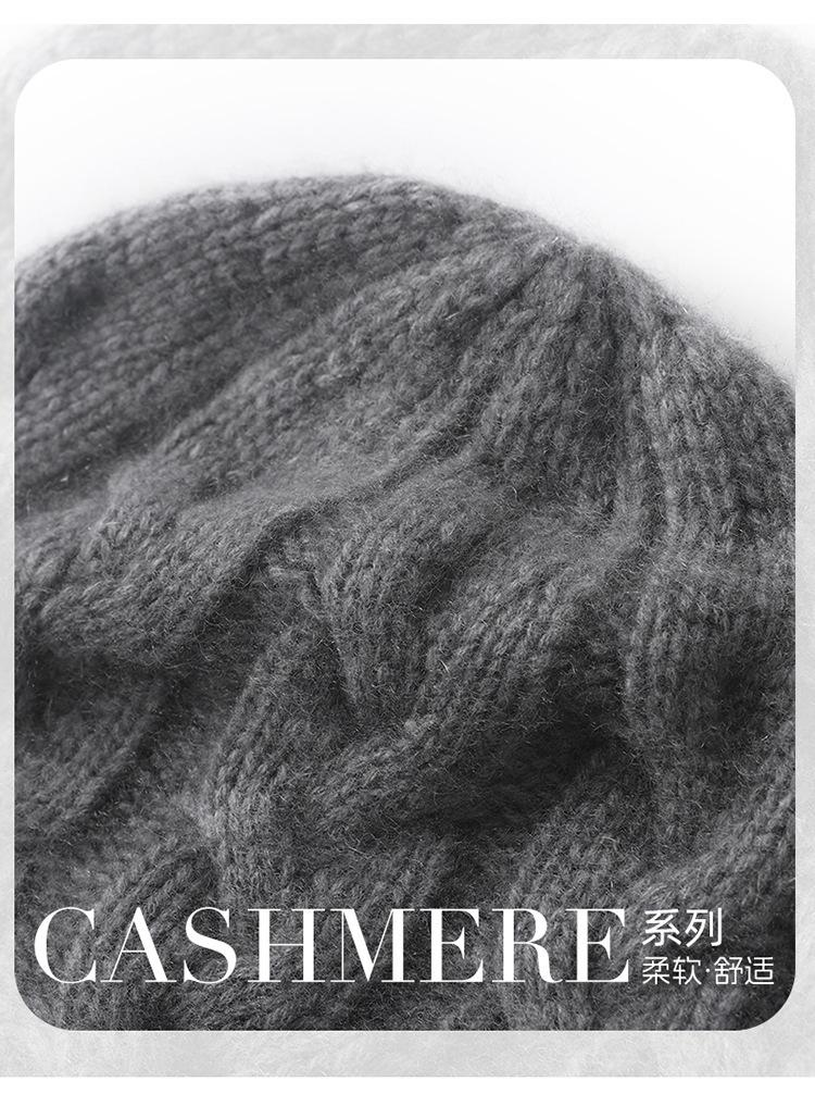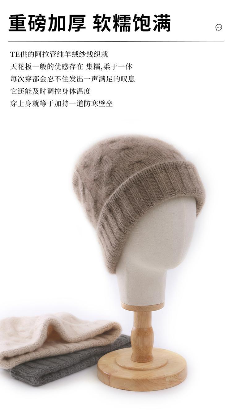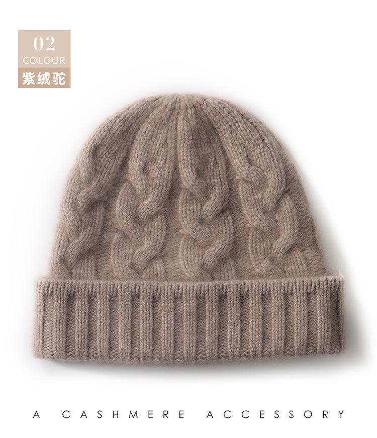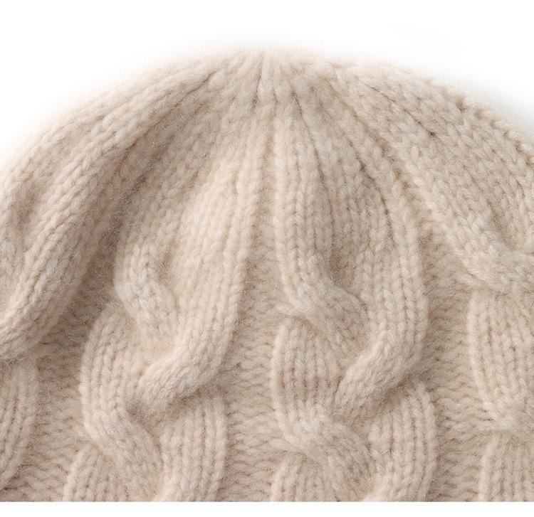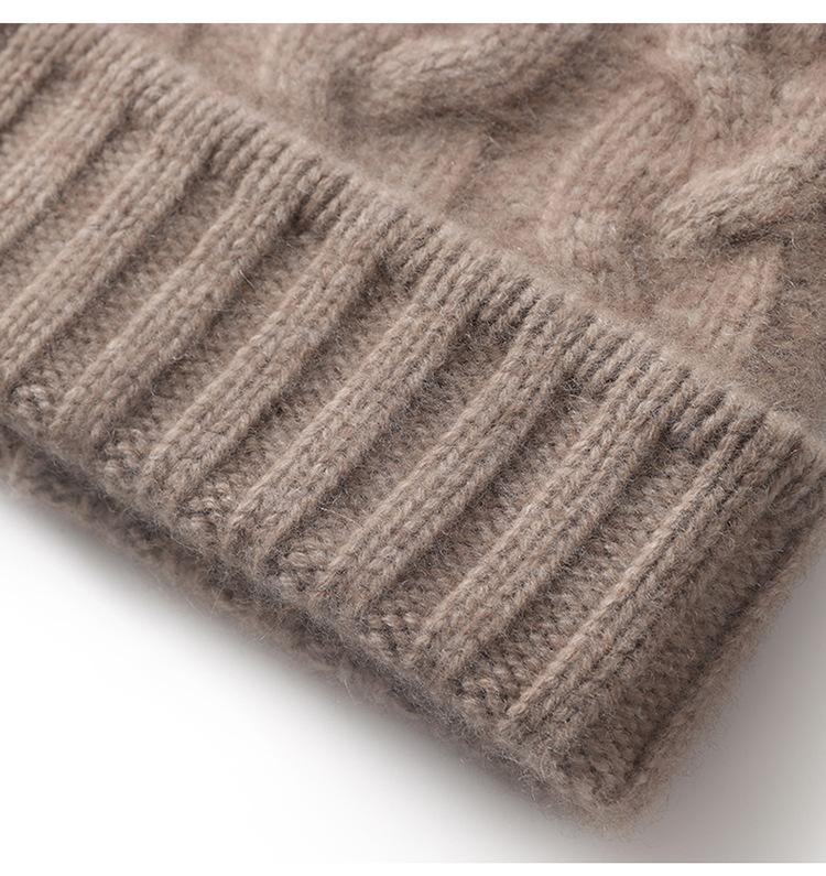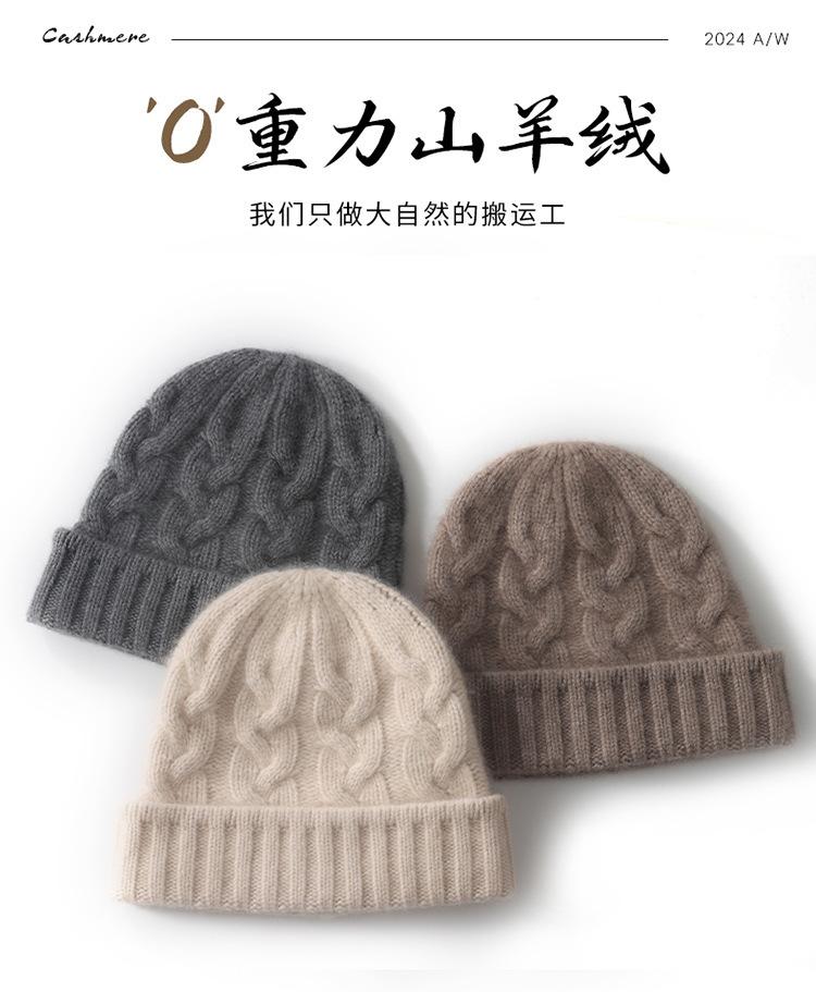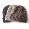 Gorro de cachemira 2024, otoño e invierno, nueva moda para mujer, informal, con orejeras, gorro de pelo, gorro de punto de color liso con flores retorcidas