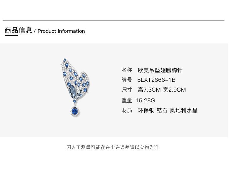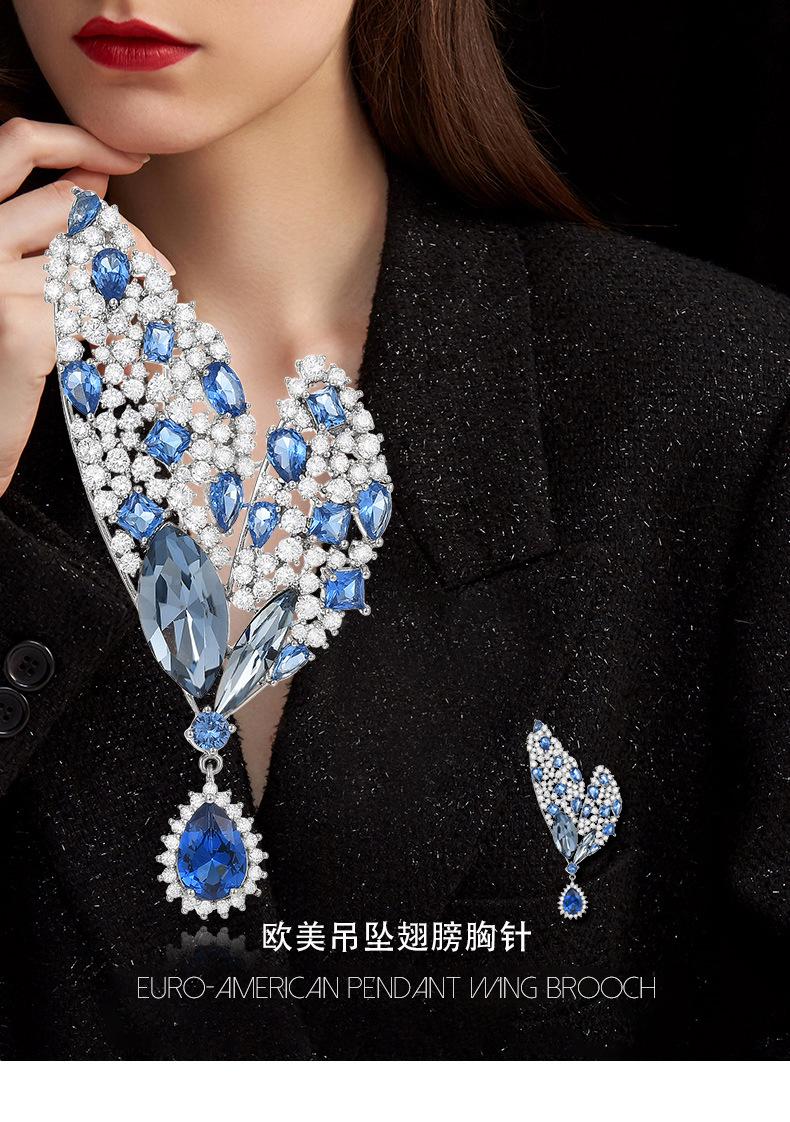 Collar Colgante Simple Nicho Broche Alas Vintage Combinable Incrustado de Diamantes Zircón Traje Vestido Corsage Accesorios Antideslumbrantes para Mujer