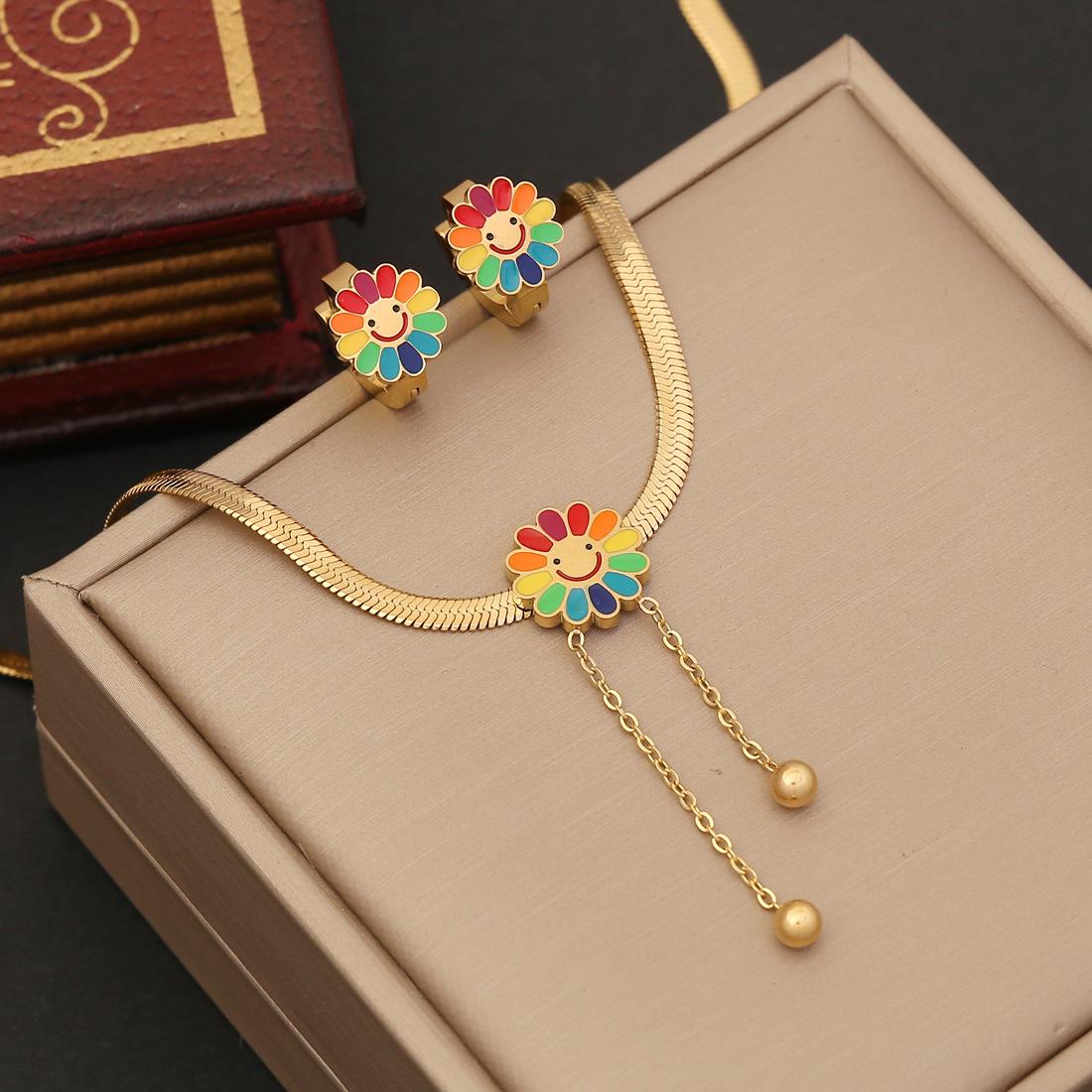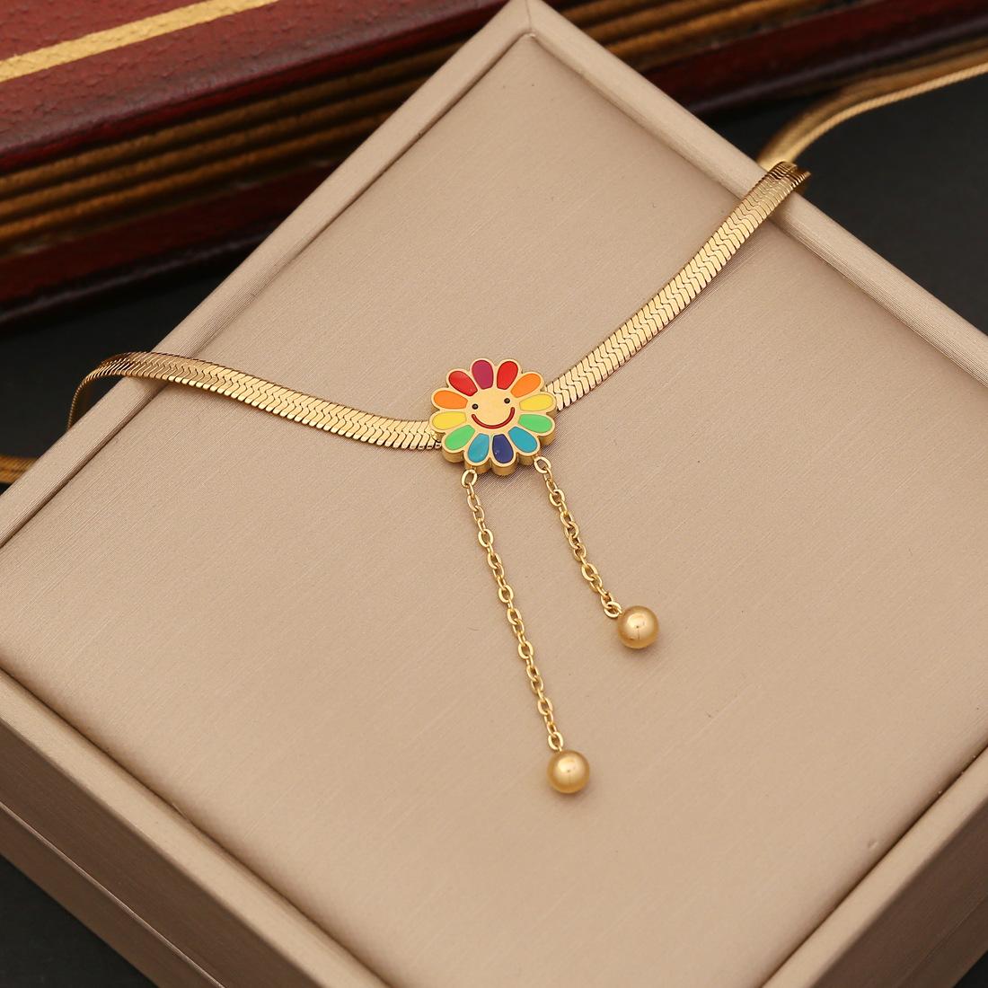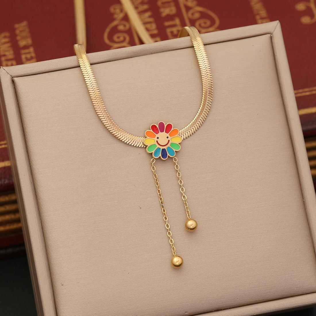 Nueva moda de joyería transfronteriza colgante de girasol colorido collar de acero inoxidable hueso de serpiente collar INS N1062