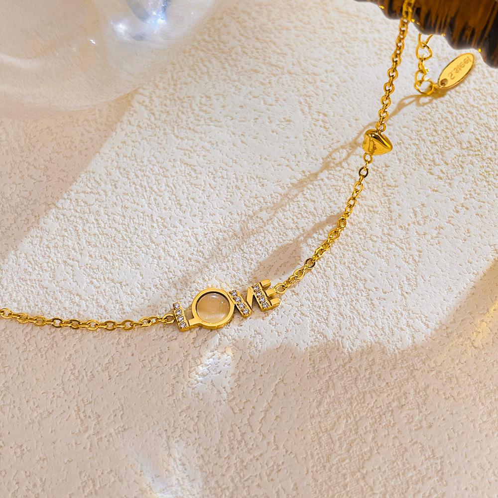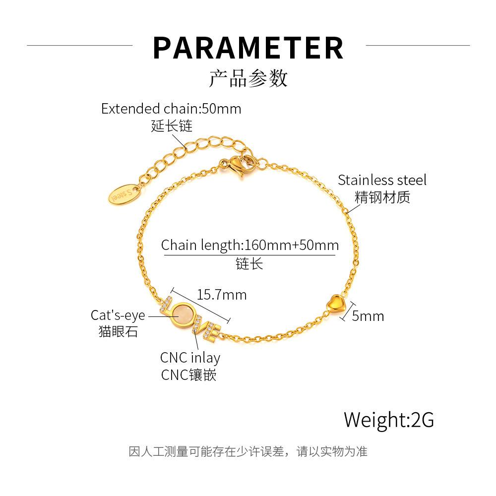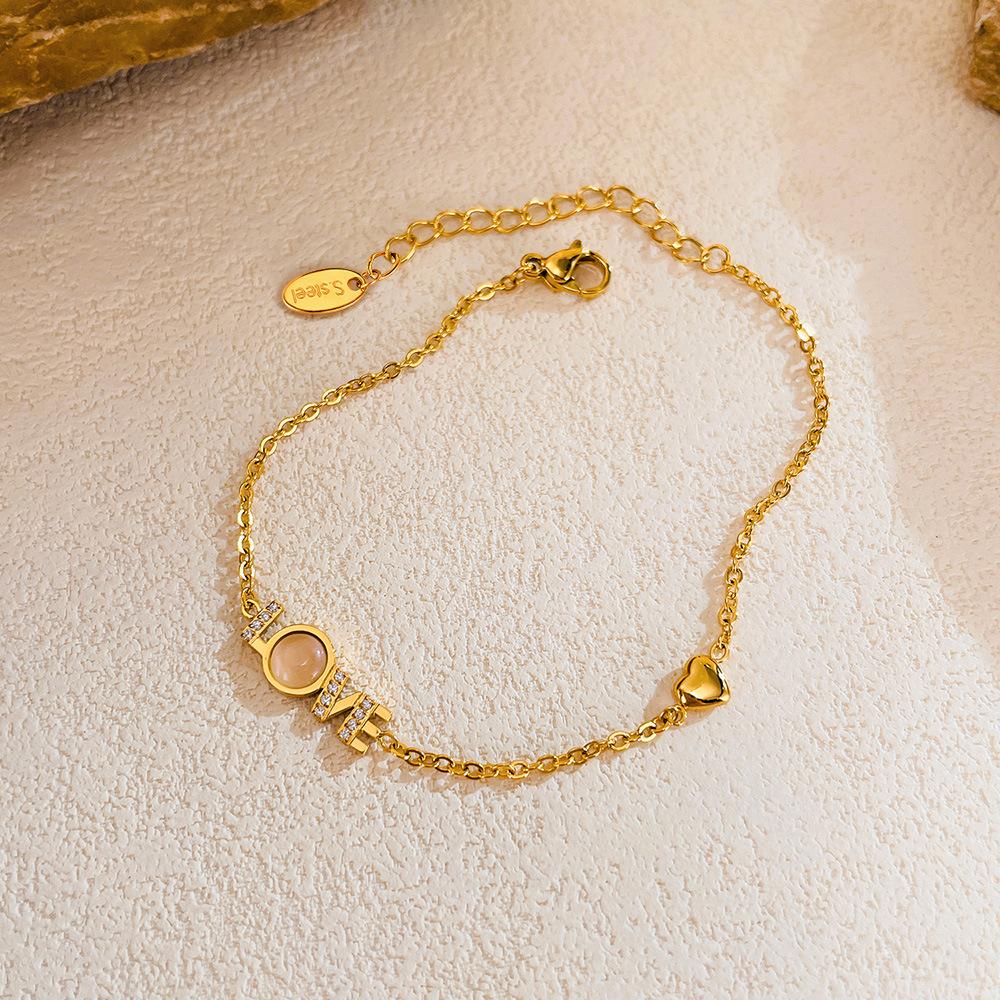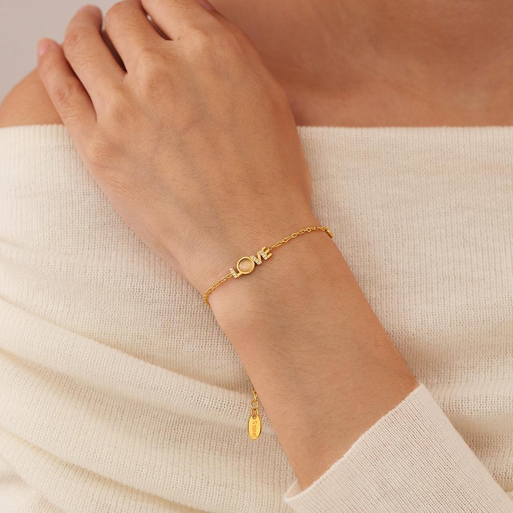 Accesorios al por mayor Pulsera con la palabra LOVE joyería para mujer moda diseño de nicho sentido de la moda incrustaciones de nácar circonio acero inoxidable