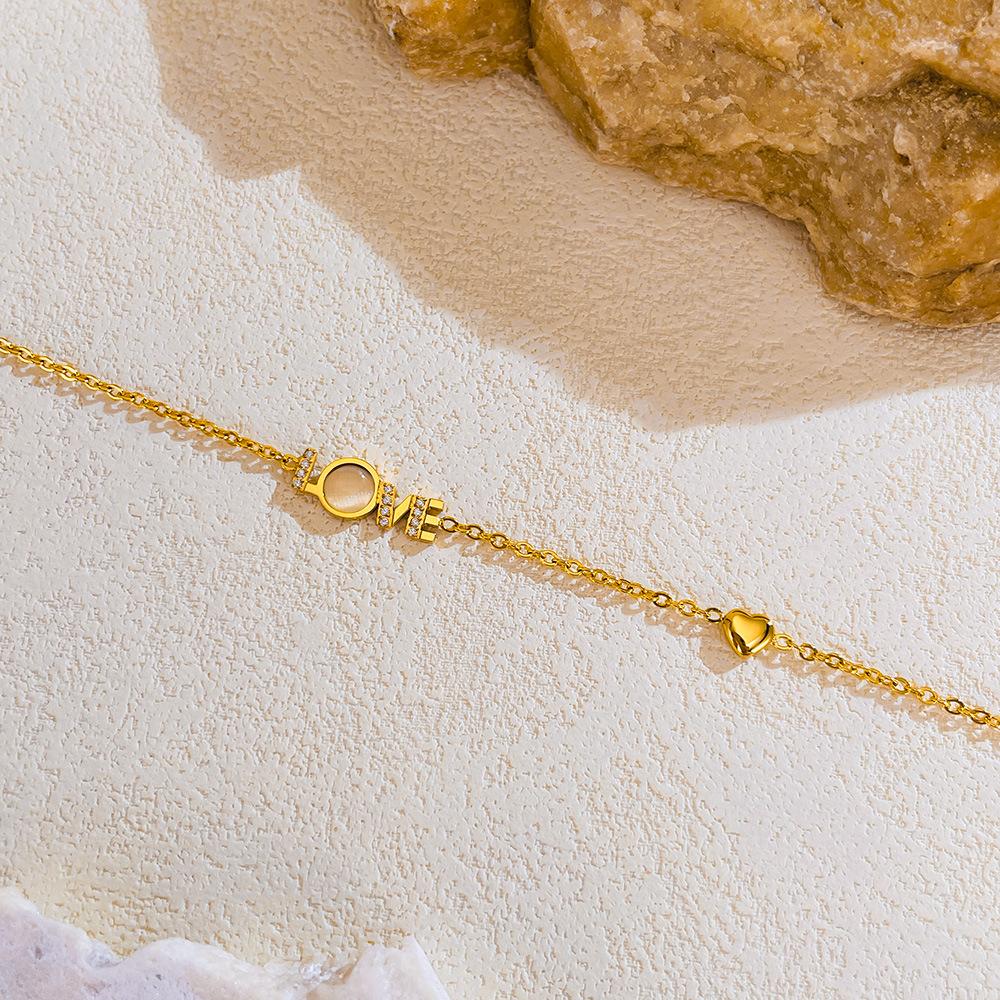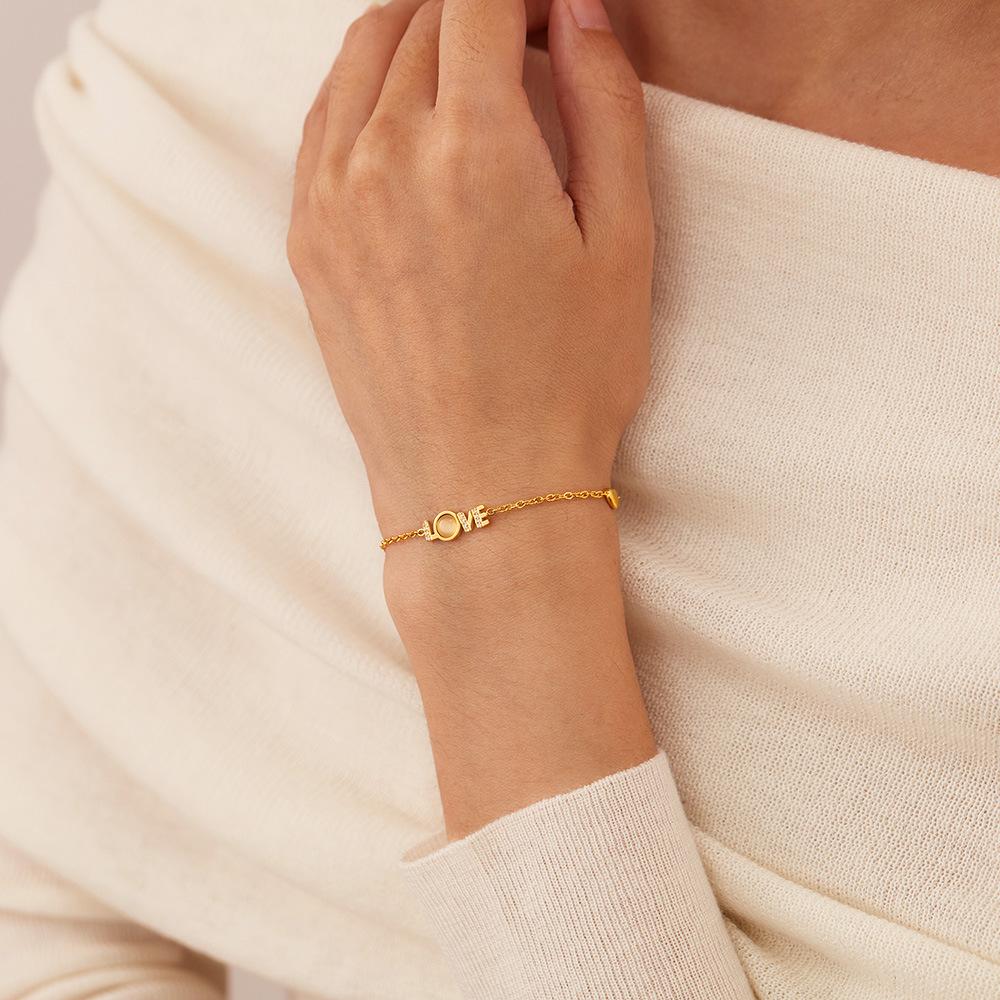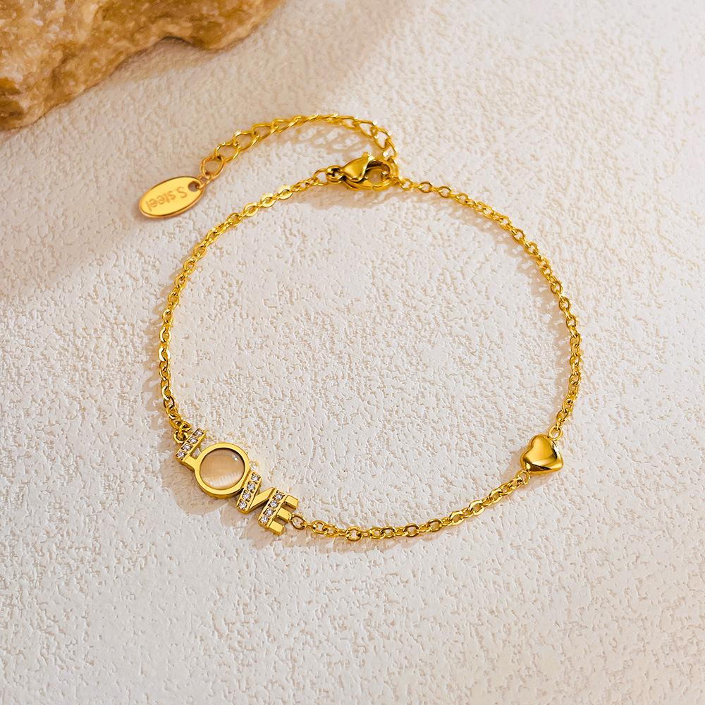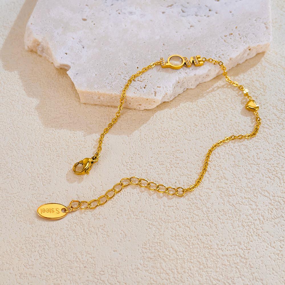 Accesorios al por mayor Pulsera con la palabra LOVE joyería para mujer moda diseño de nicho sentido de la moda incrustaciones de nácar circonio acero inoxidable