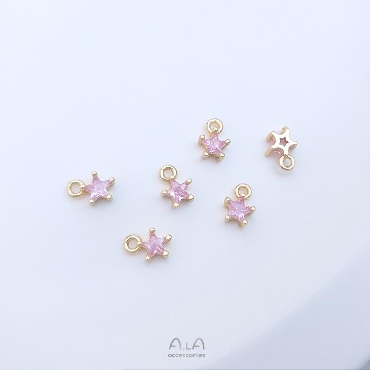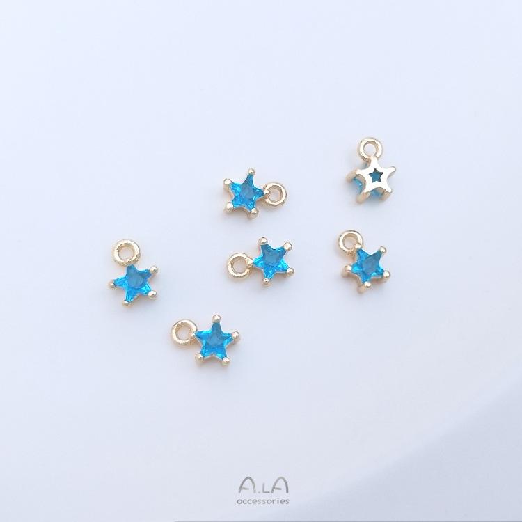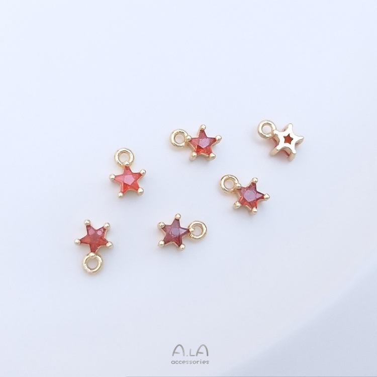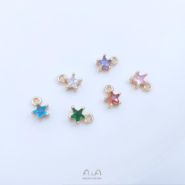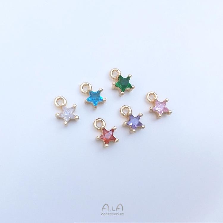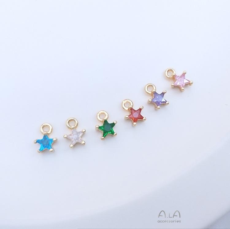 Colgante pequeño de estrella de cinco puntas de circonio de color con incrustaciones de oro de 14 quilates que conserva el color, hecho a mano para pulsera de joyería DIY