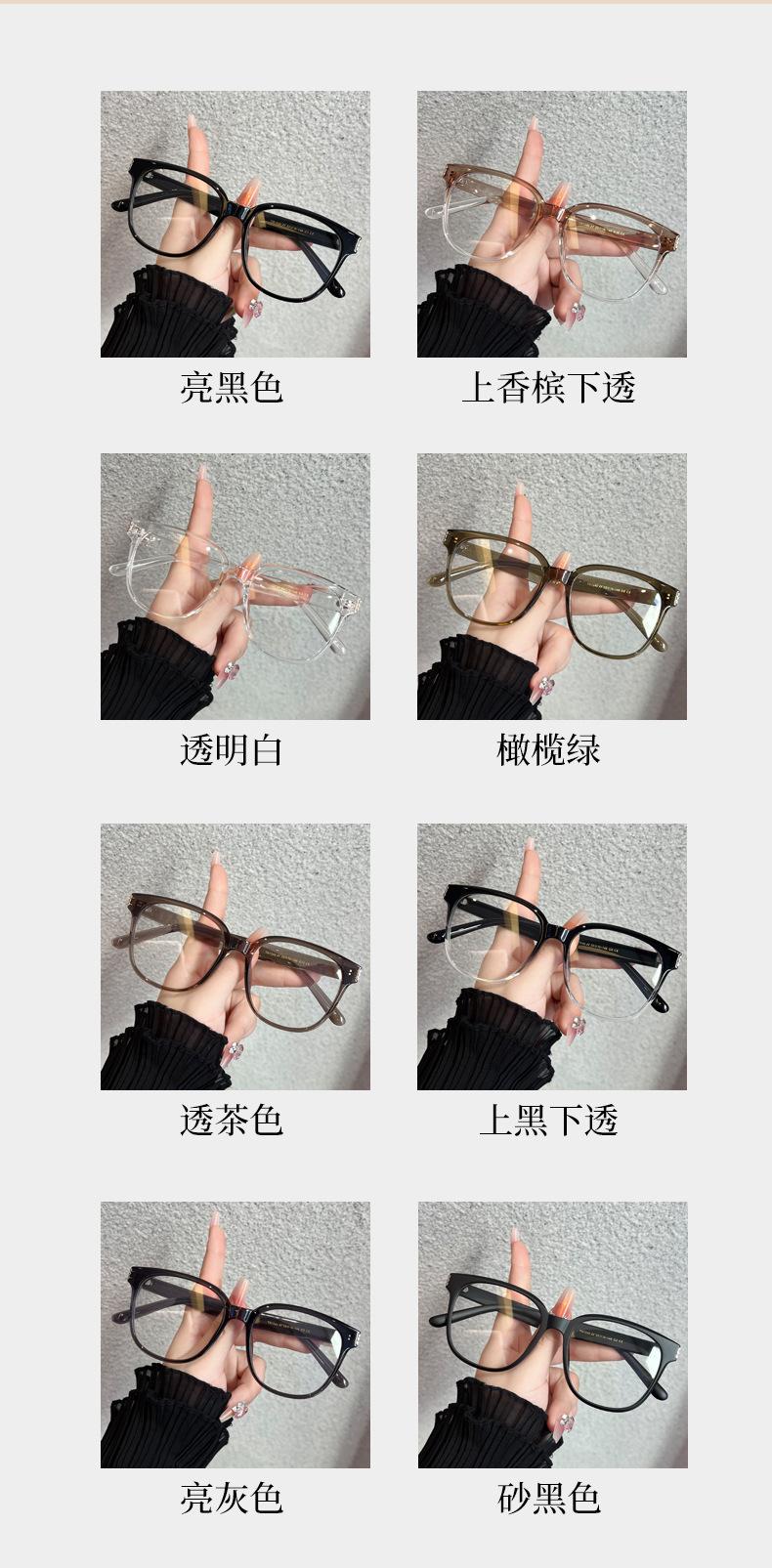 Glossy black, Transparent brown, Olive green, Sand black, Transparent white, Black on top and transparent on b...