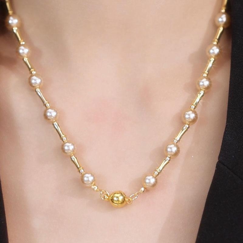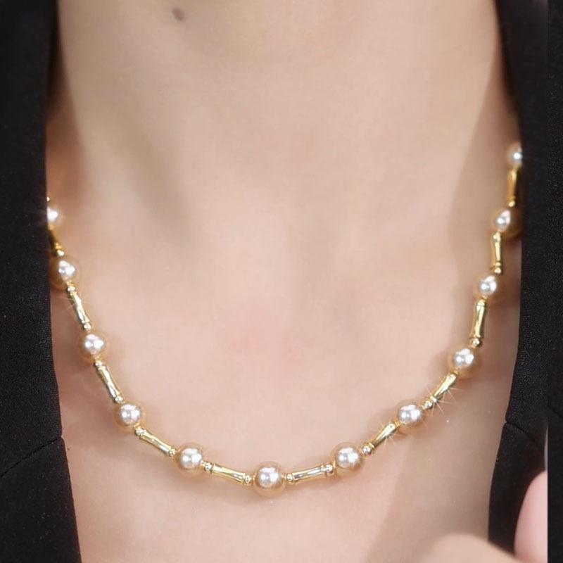 Collar de cuentas de alta calidad hecho a mano con elegante cadena de clavícula de perlas, cadena de suéter de invierno con perlas