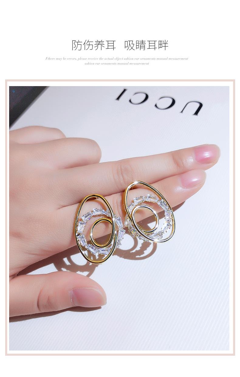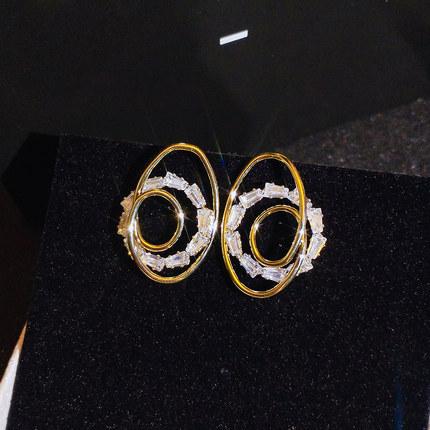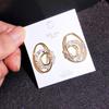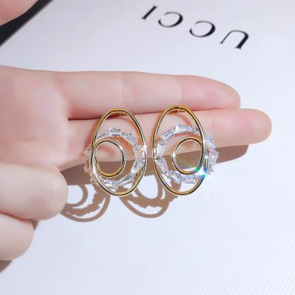 Aretes de Aro Doble Calado de Diseño Simple Europeo y Americano para Mujer 2025 Nuevos Versátiles Lujo Accesible Aretes y Pendientes de Zirconia
