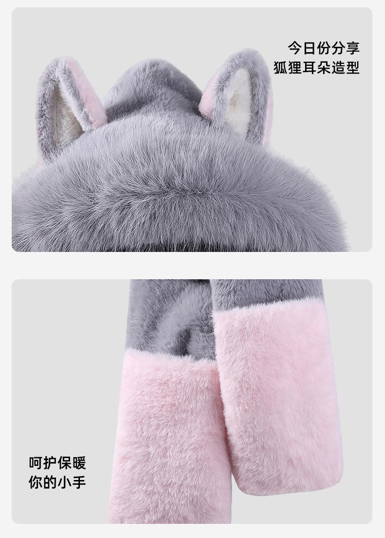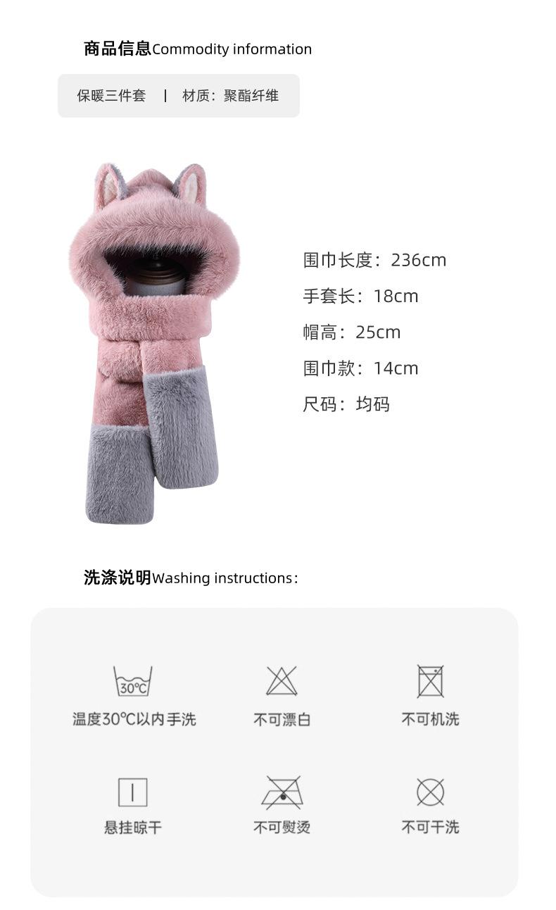 Grapefruit rice [fox ear three-piece set], Warm apricot [fox ear three-piece set], Leather pink [fox ear three...