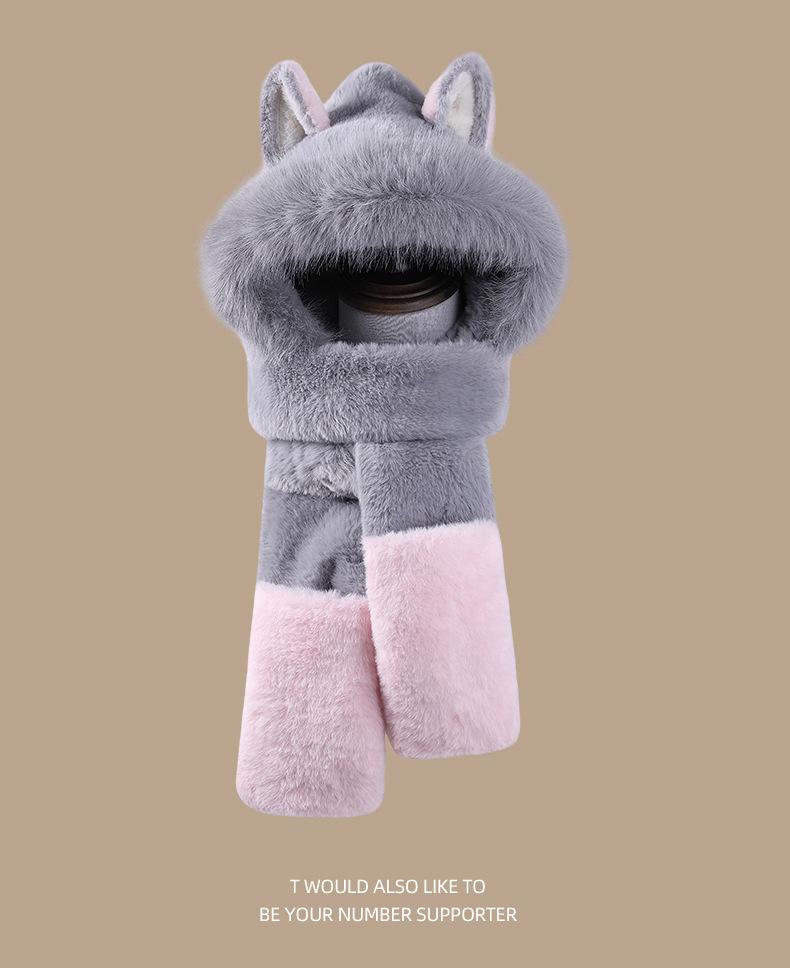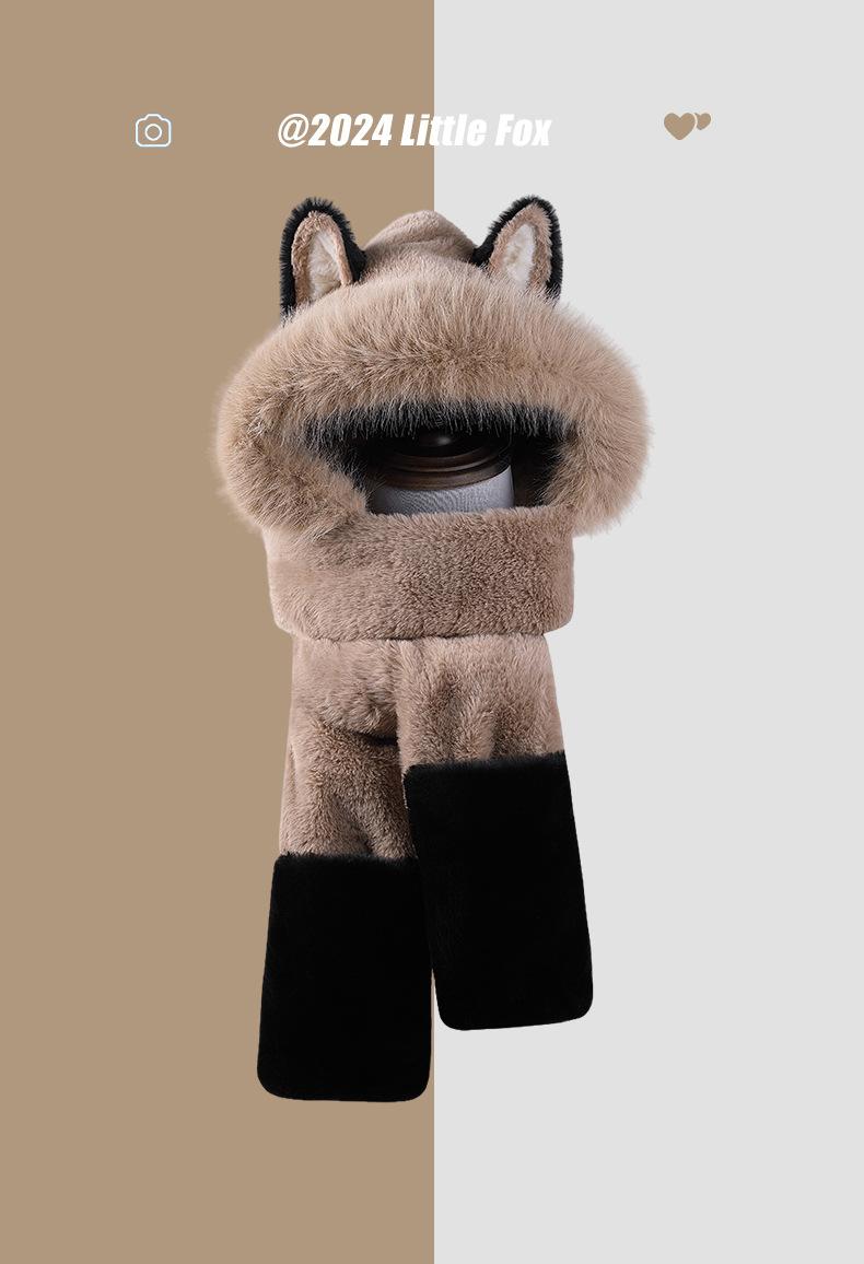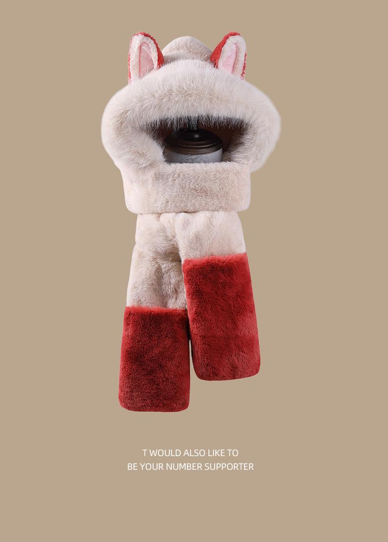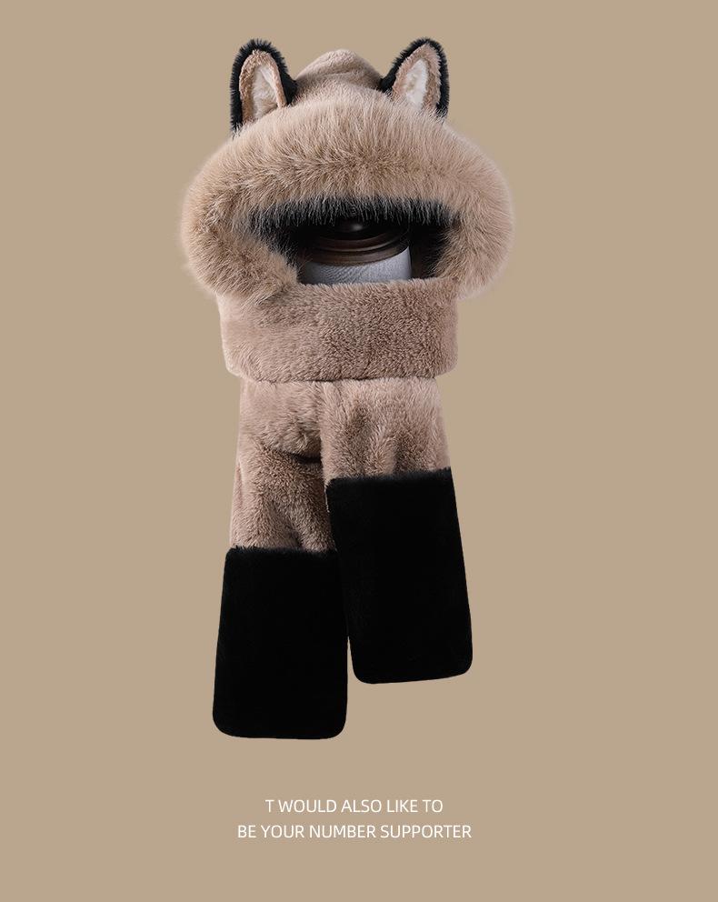 Gorro Bufanda Guantes Color Contraste Zorro de Fuego para Mujer Invierno Bufanda Lindo Cálido Gorro Felpa Set de Tres Piezas