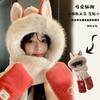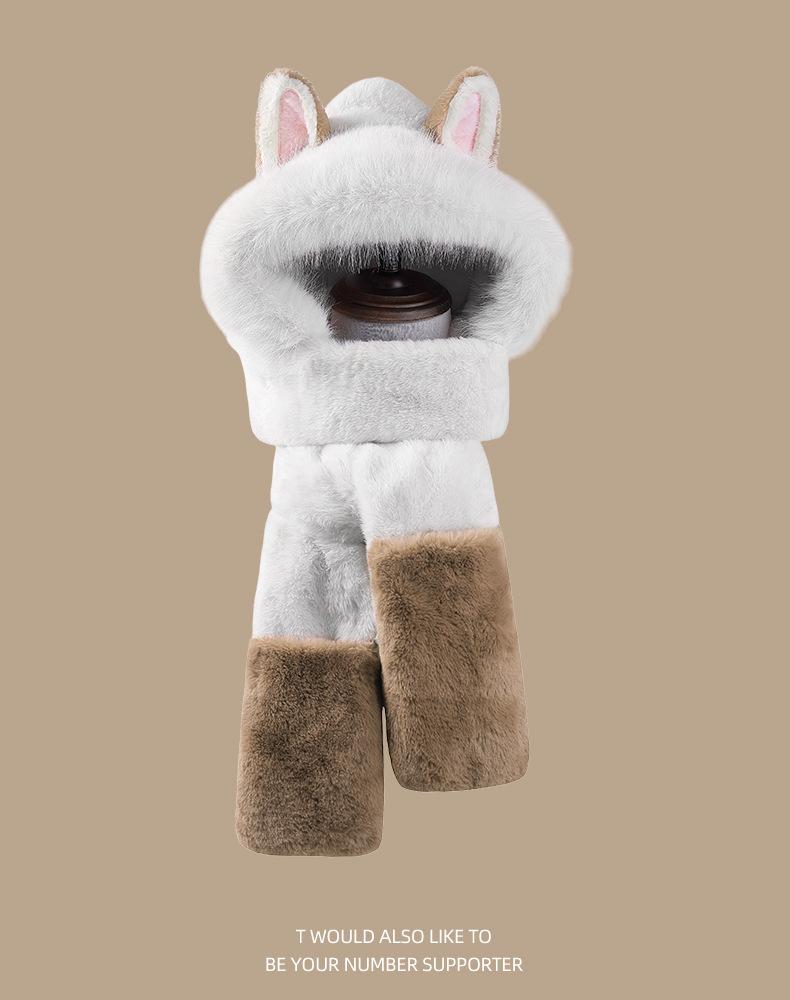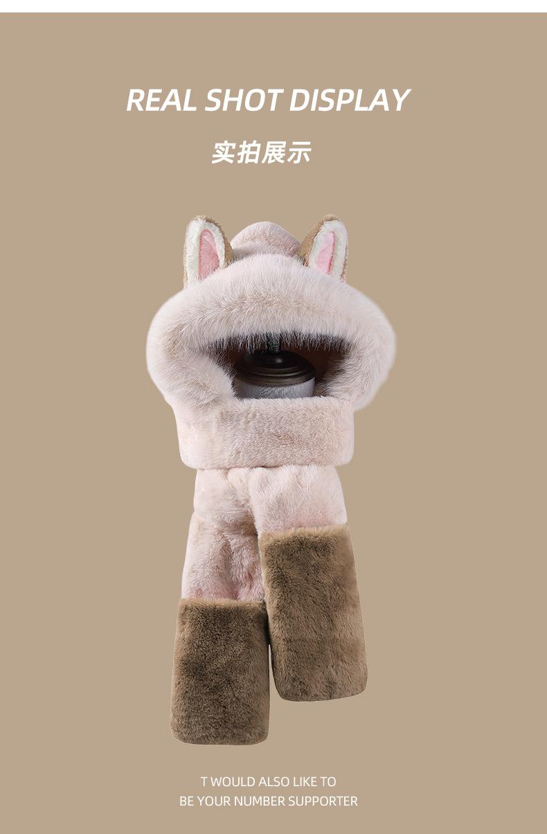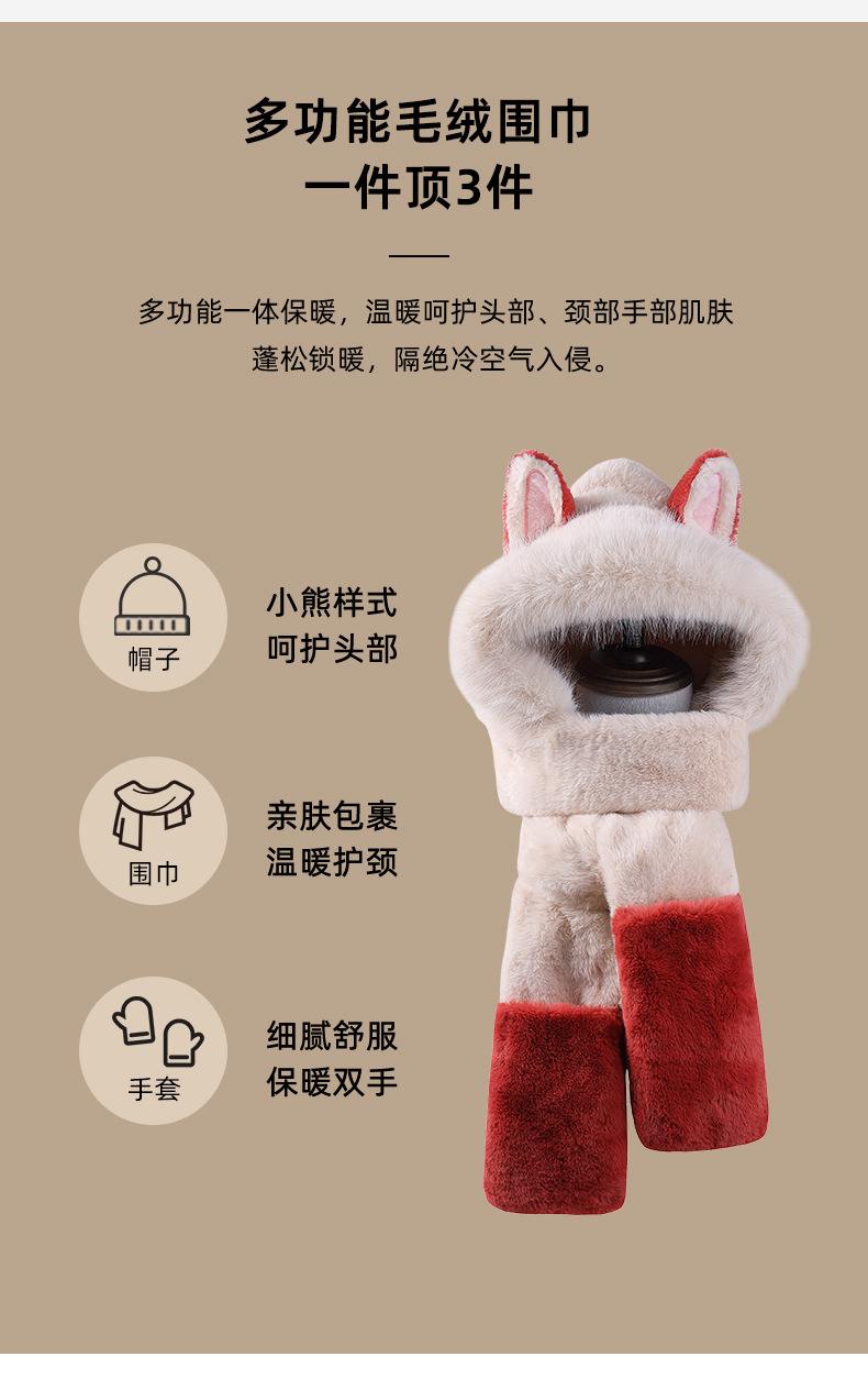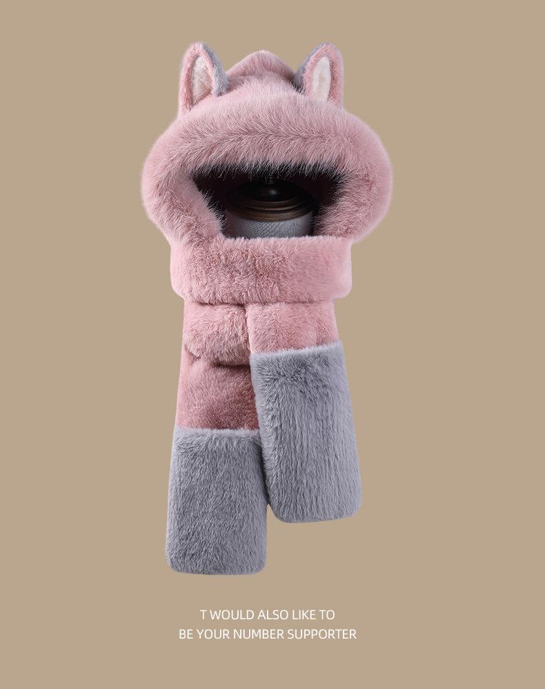 Gorro Bufanda Guantes Color Contraste Zorro de Fuego para Mujer Invierno Bufanda Lindo Cálido Gorro Felpa Set de Tres Piezas