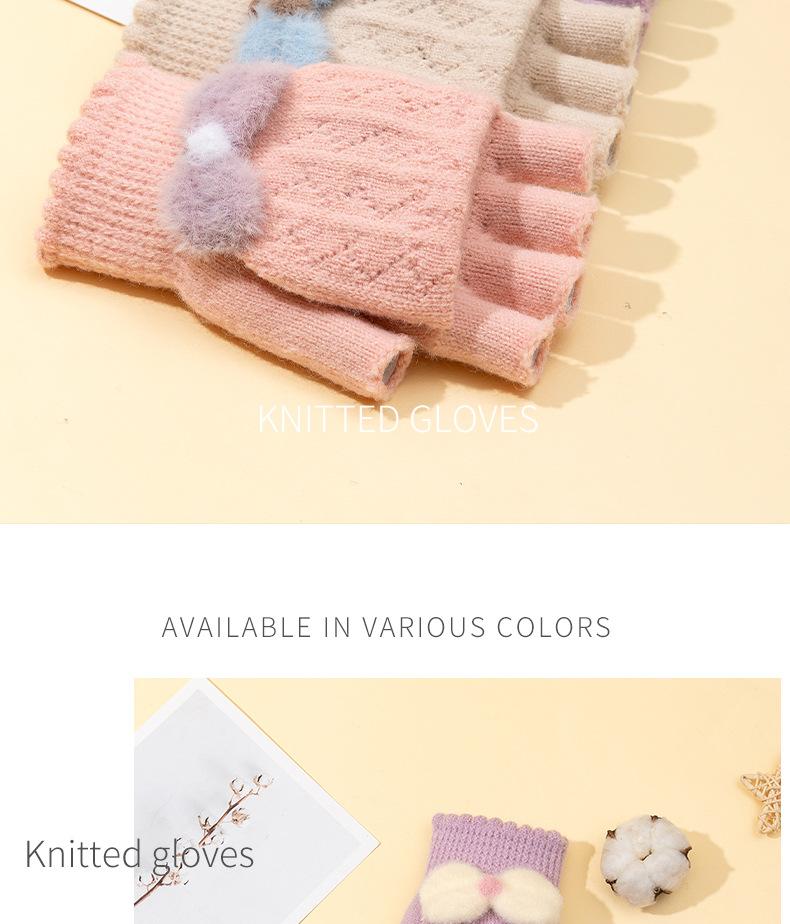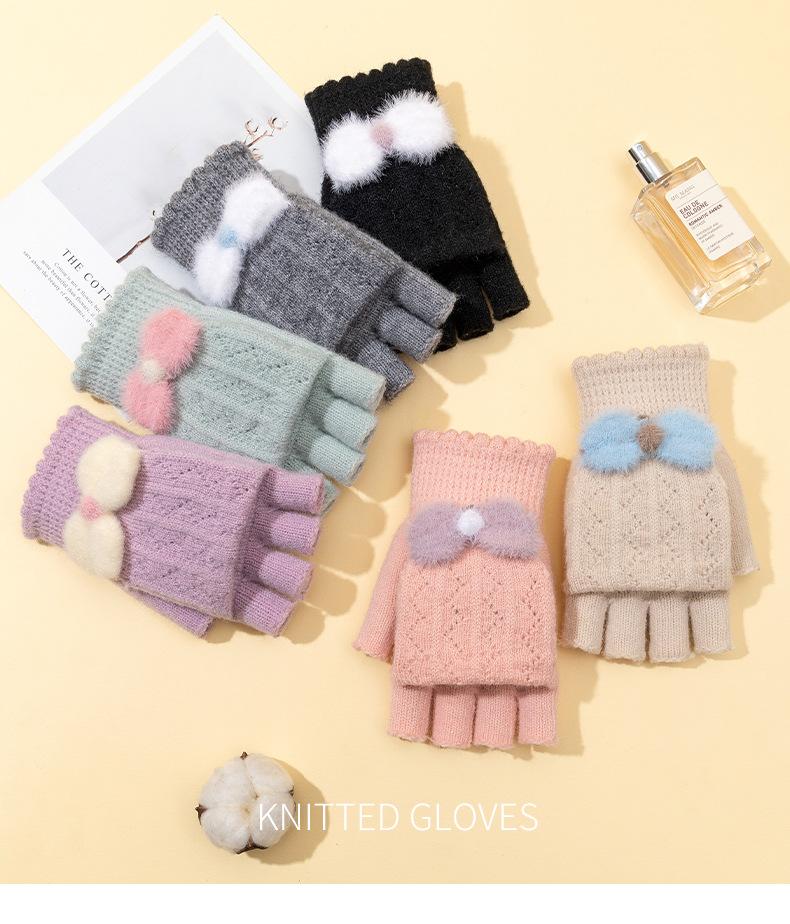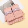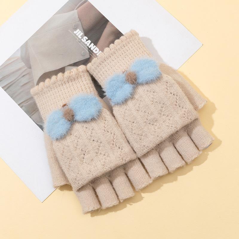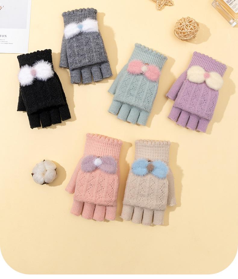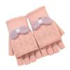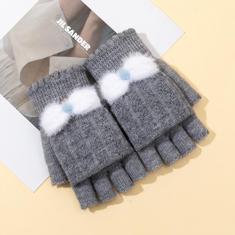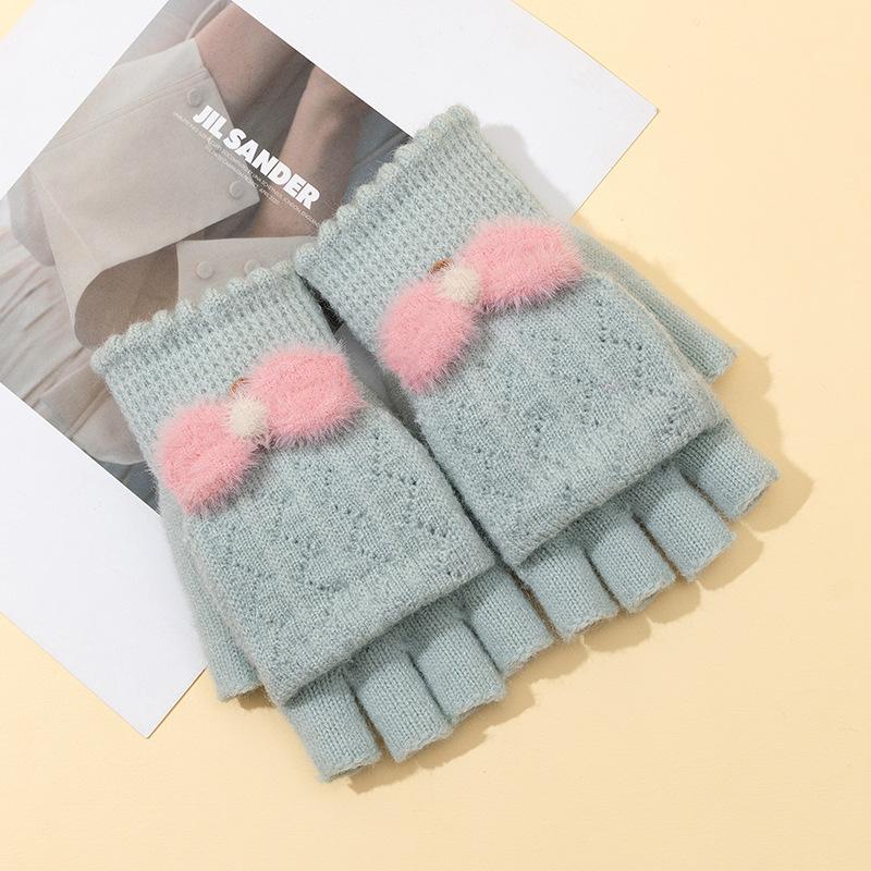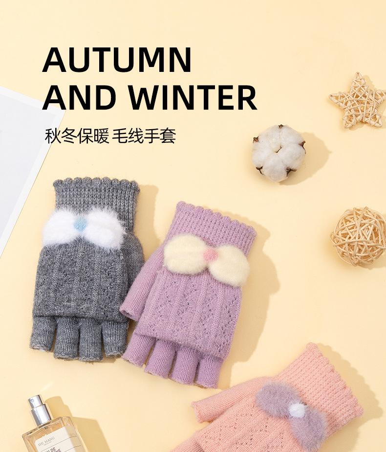Otoño e Invierno Tejido Estudiante Cálido Lindo Montar Estudiante Chica Adulto Lazo Escritura Medio Dedo Cubierta Abatible Guantes