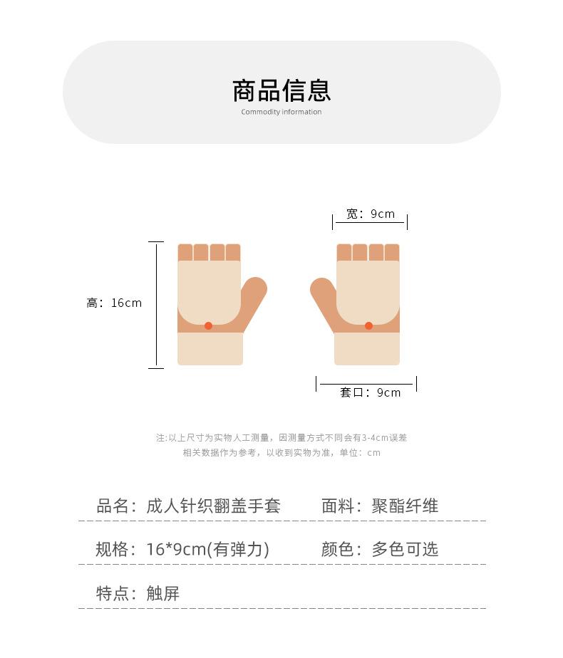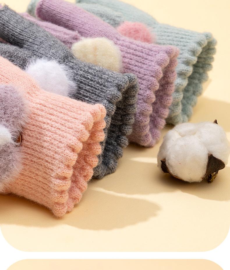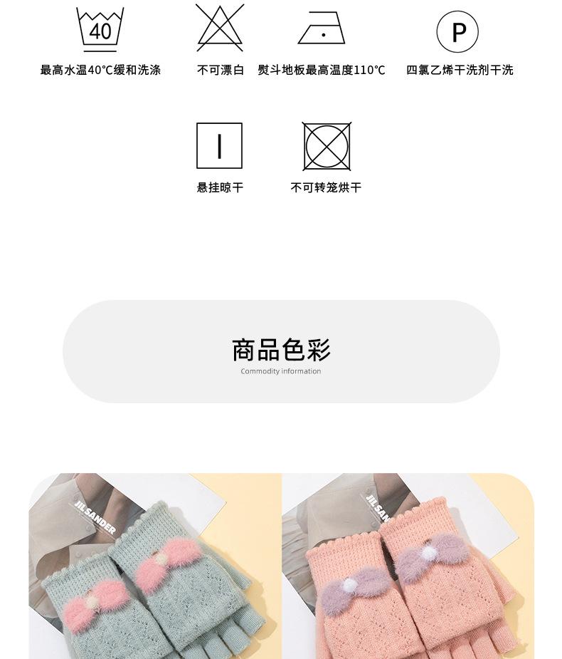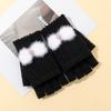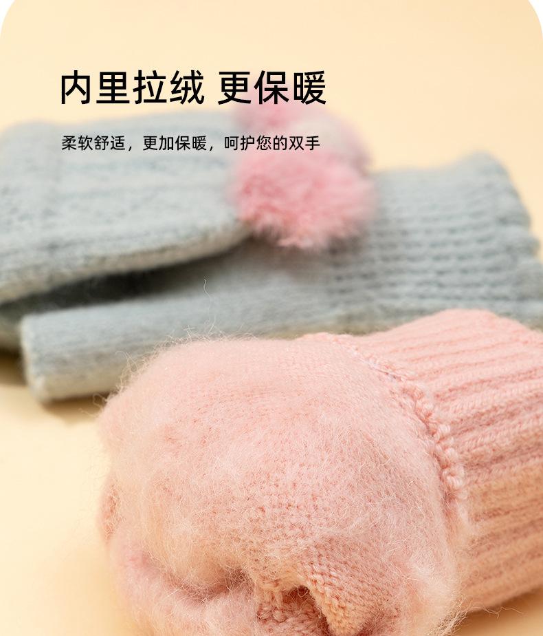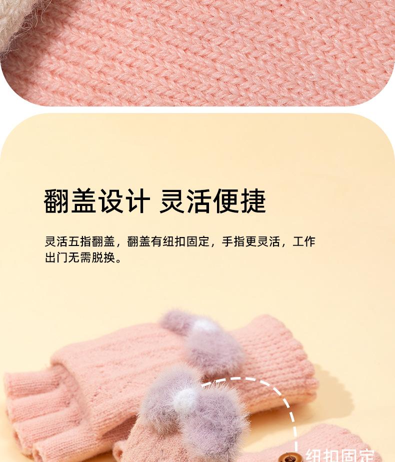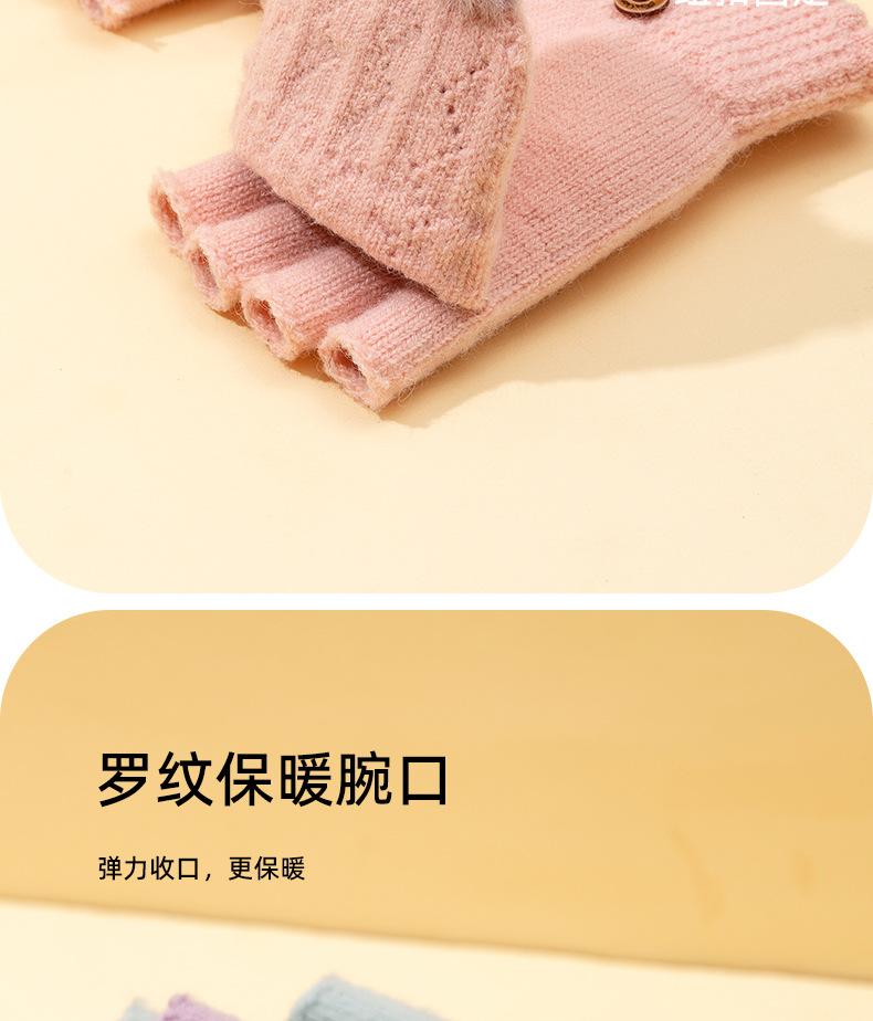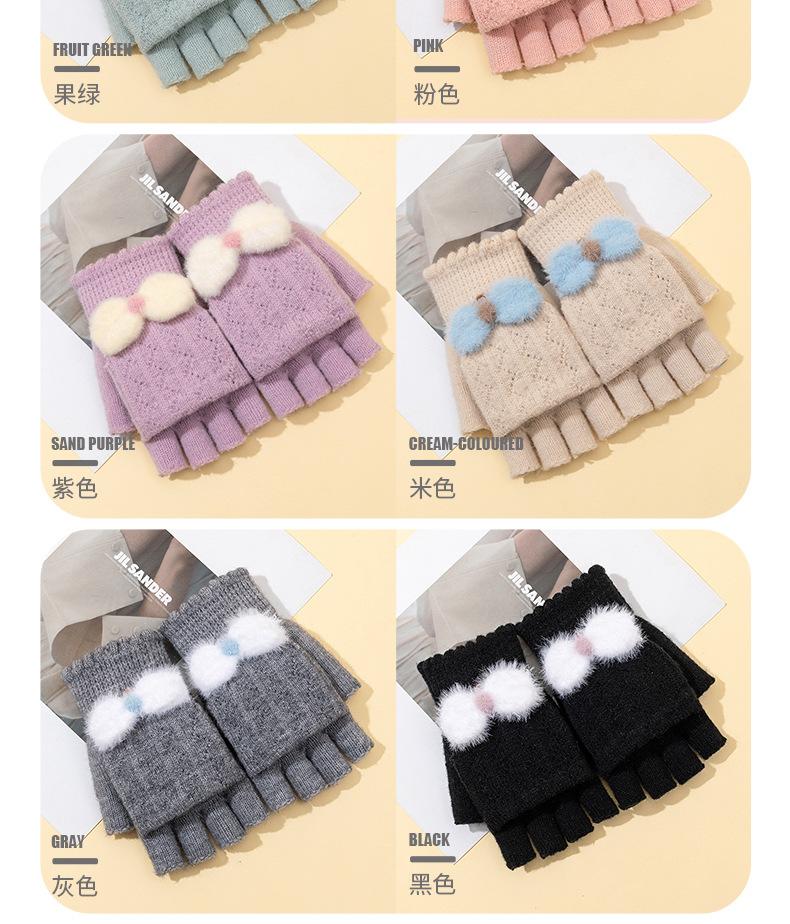 Otoño e Invierno Tejido Estudiante Cálido Lindo Montar Estudiante Chica Adulto Lazo Escritura Medio Dedo Cubierta Abatible Guantes
