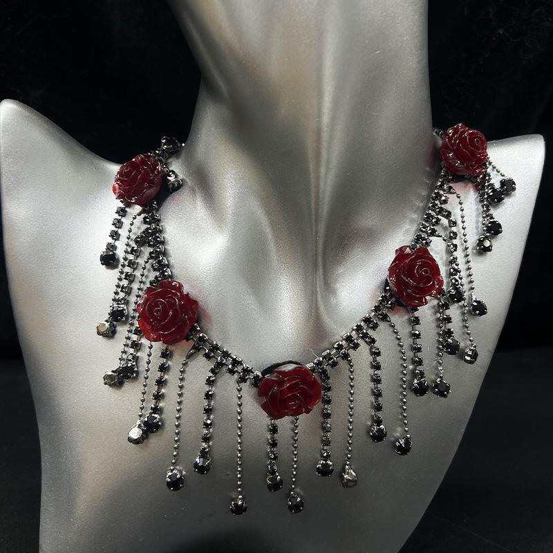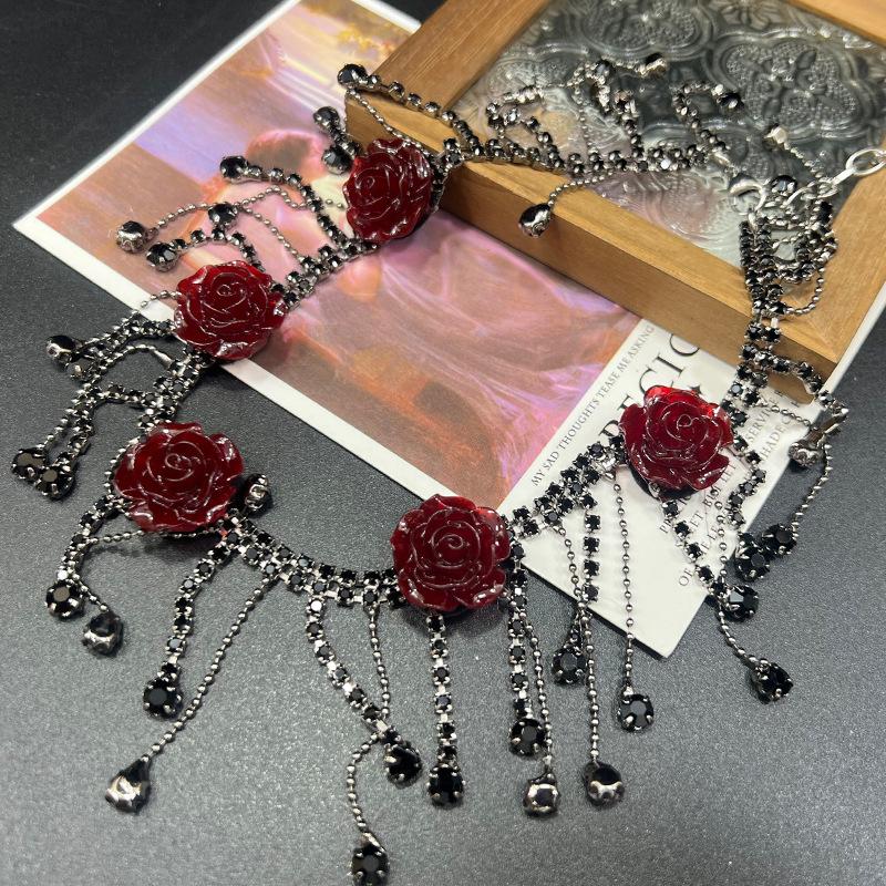 Cadena de clavícula original Diablo Five Roses, diseño de nicho de alta calidad, collar chapado en oro negro resistente.
