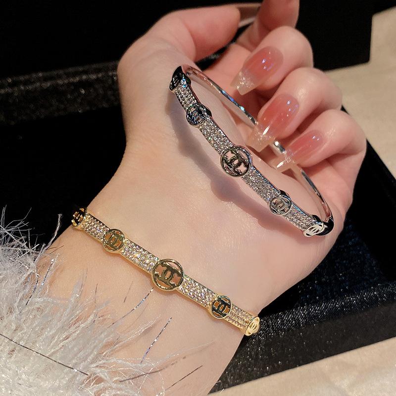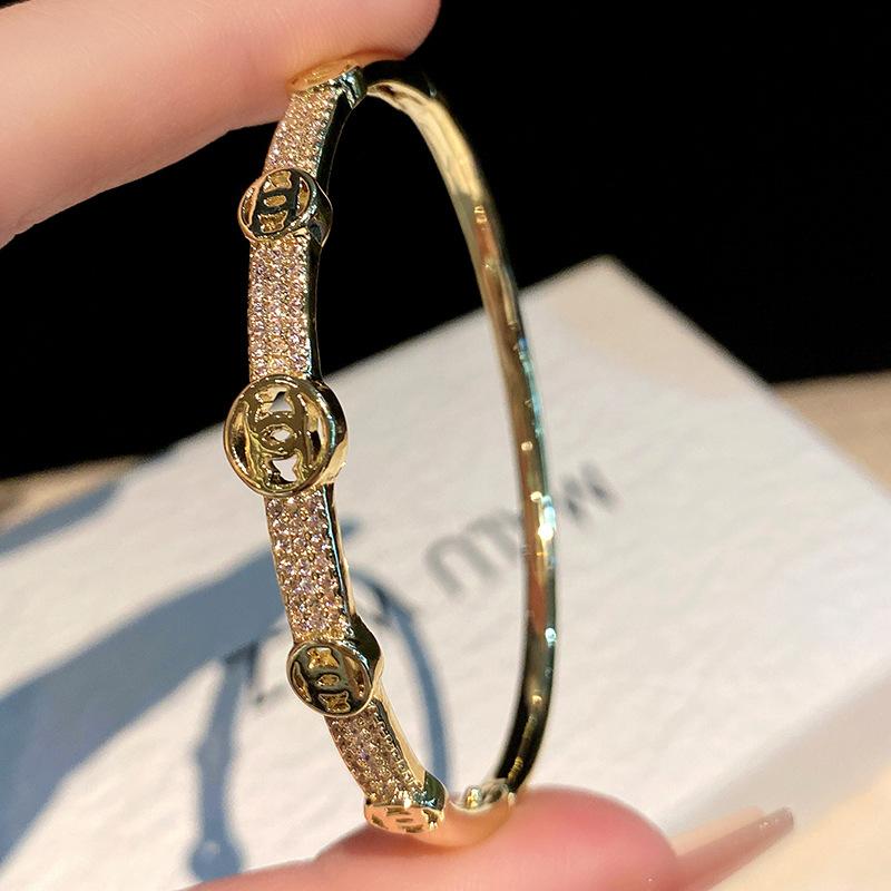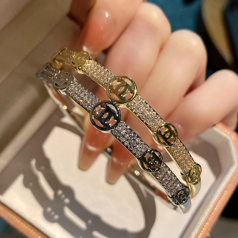 Pulsera H de alta versión con incrustaciones de circonitas, pulsera de paniculata de moda europea y americana, pulsera chapada en oro real de 18 quilates para comercio exterior para mujer