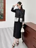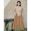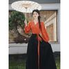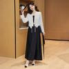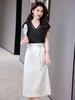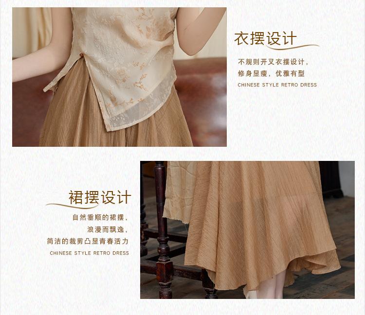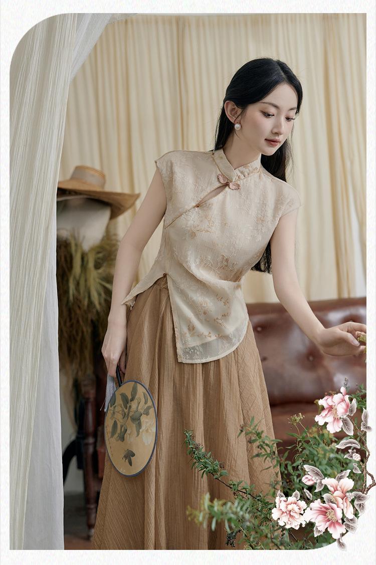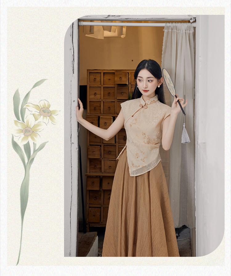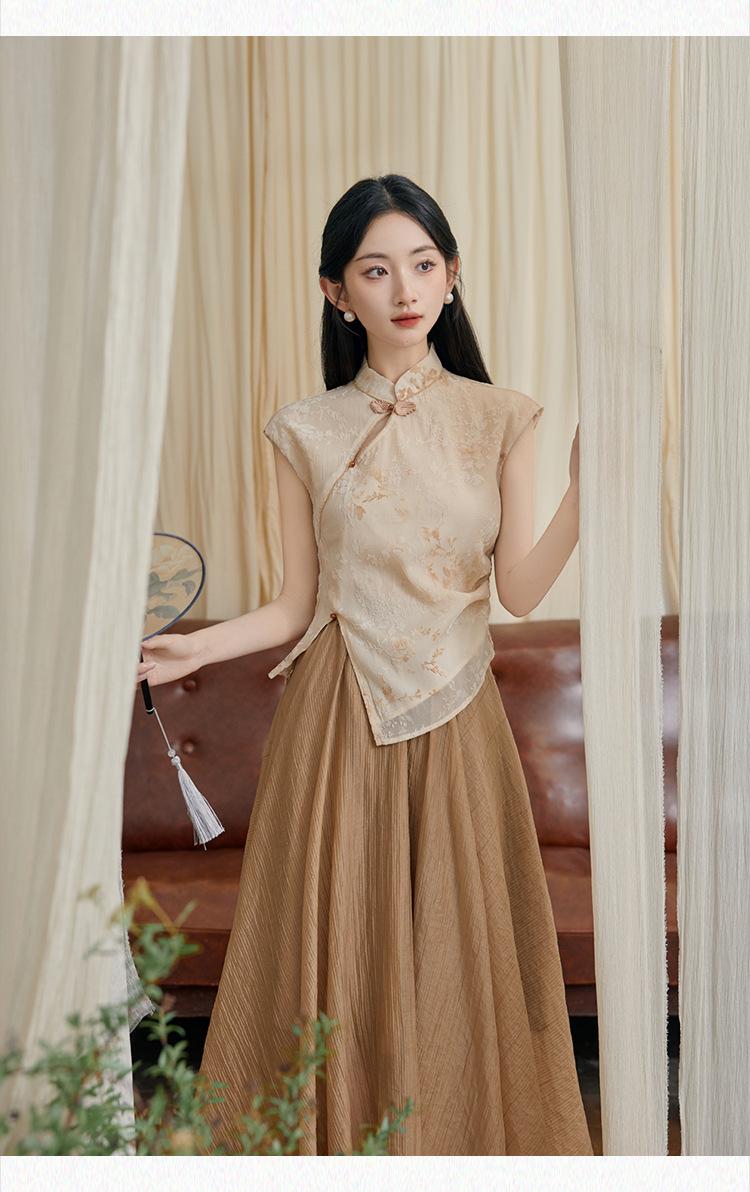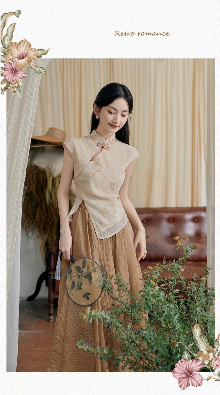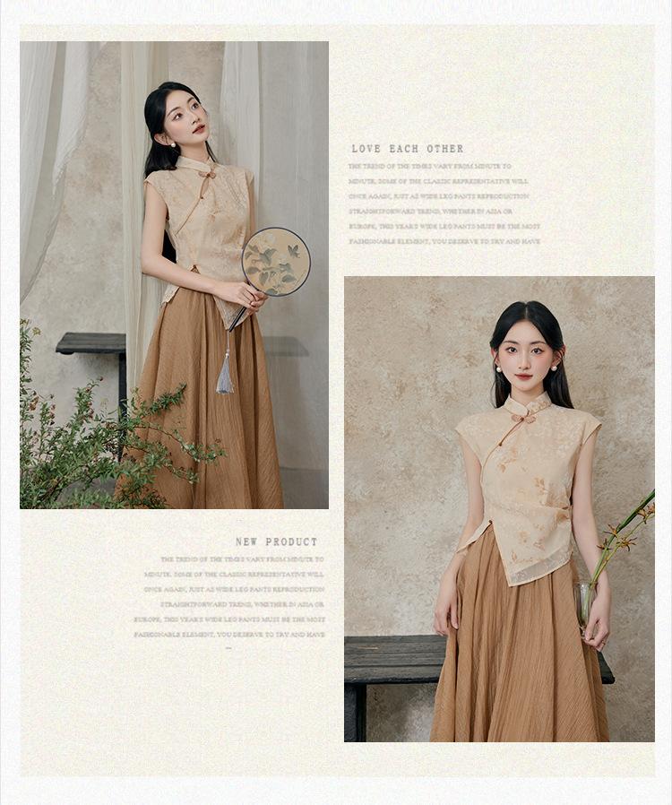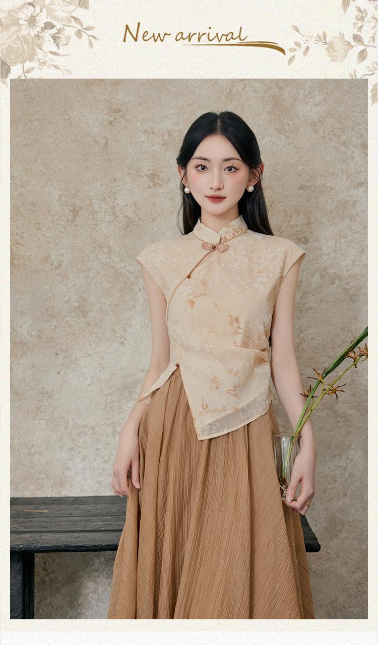 Foto Real de Tops de Manga Corta Flocados de Nueva Chinoiserie + Falda de Cintura Alta Conjunto de Ropa de Dos Piezas para Mujer Primavera y Verano 2O25