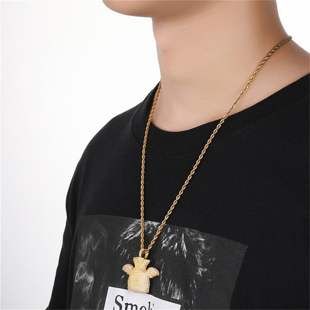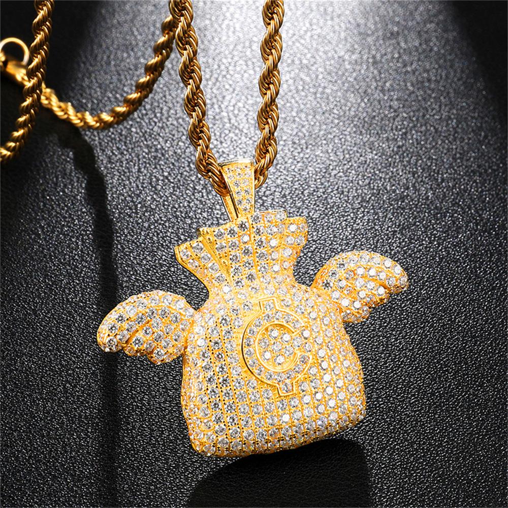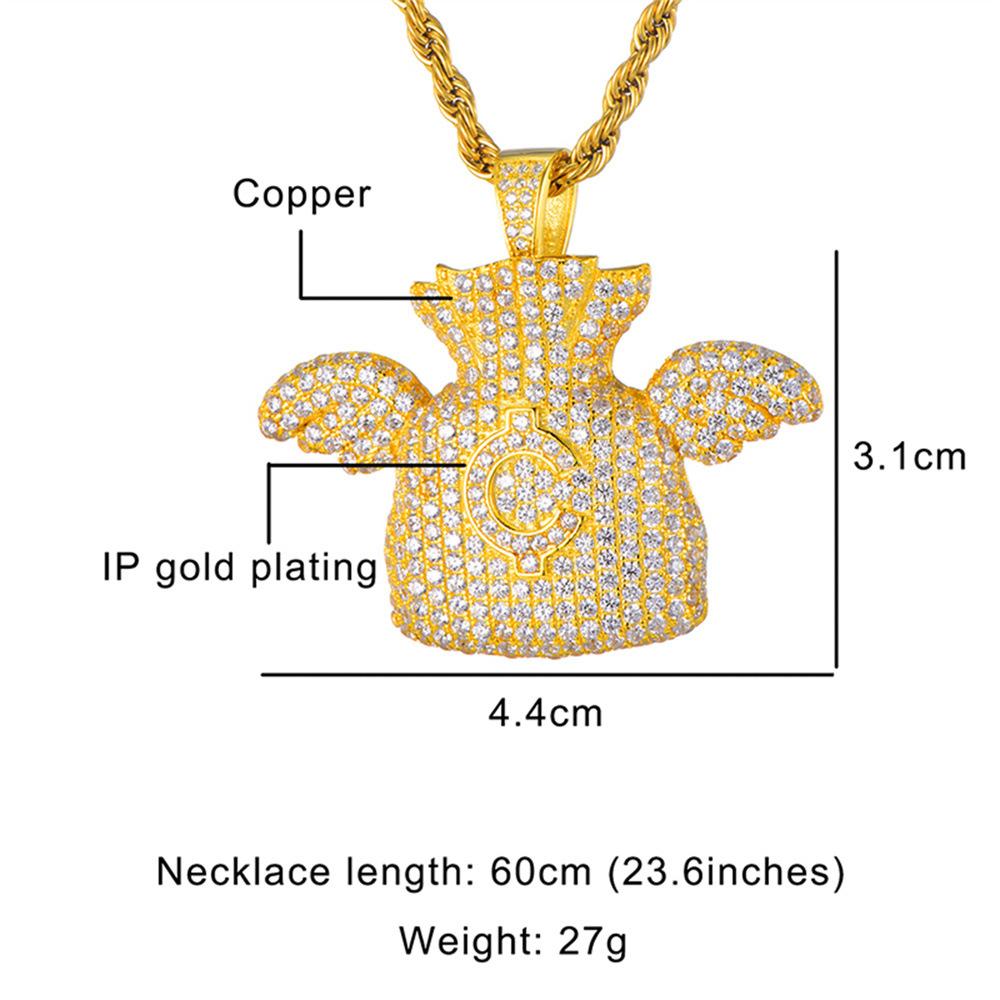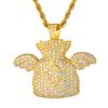 Collar con colgante de circonita con incrustaciones de cobre y alas doradas de hip-hop transfronterizo europeo y americano al por mayor