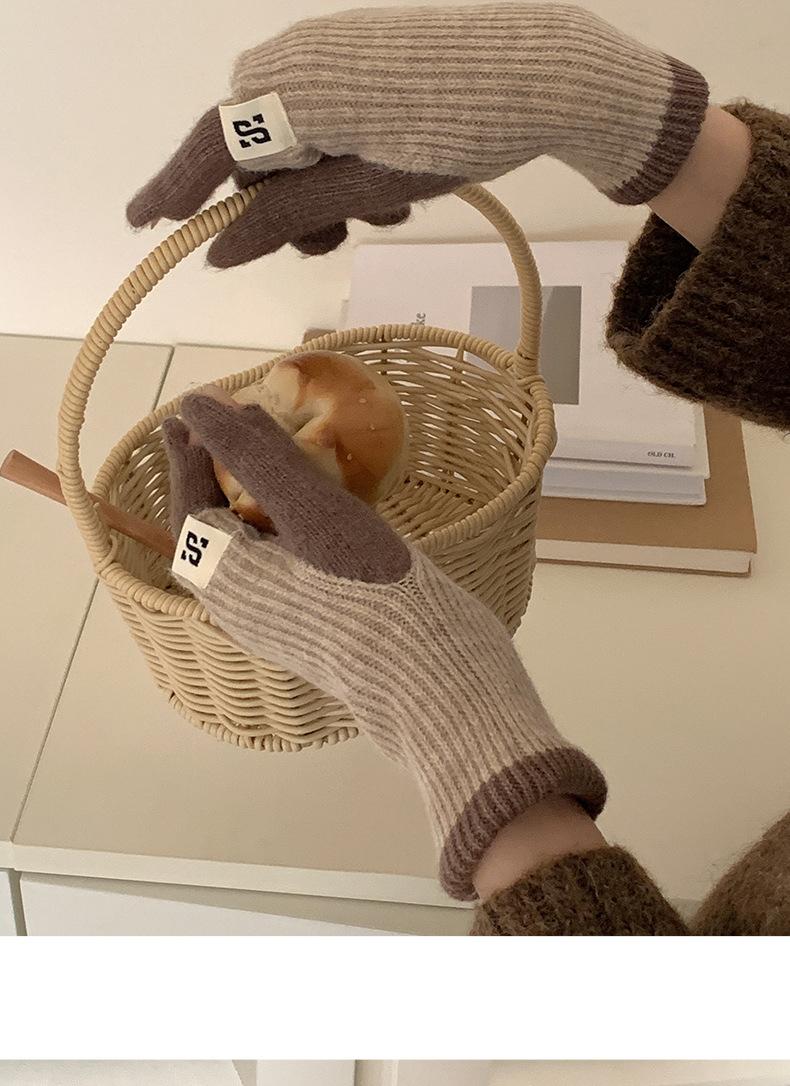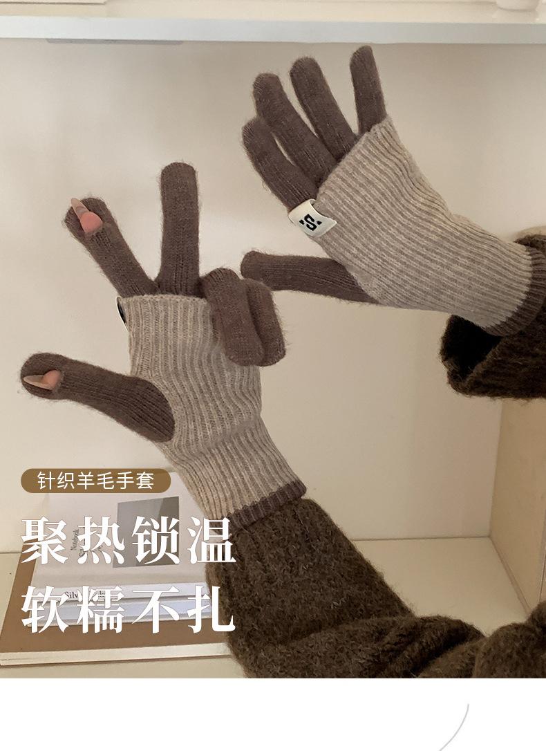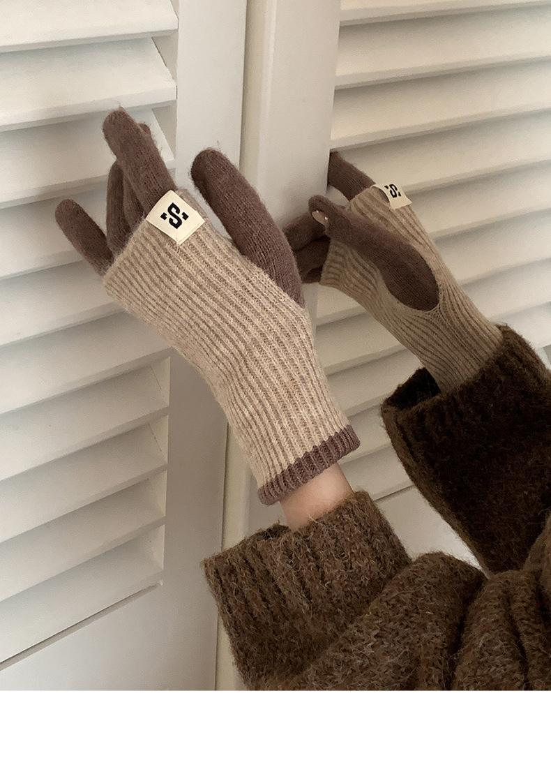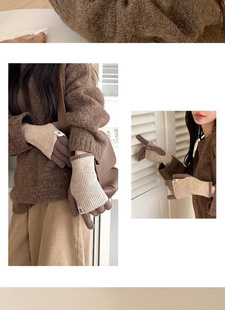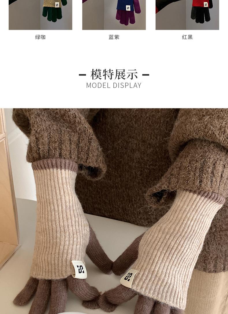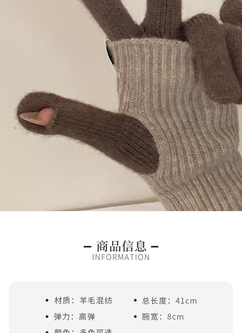 Manga de brazo Manga Manga falsa Guantes de lana de punto grueso para otoño e invierno para mujer Guantes largos de medio dedo Lana cálida engrosada para brazo