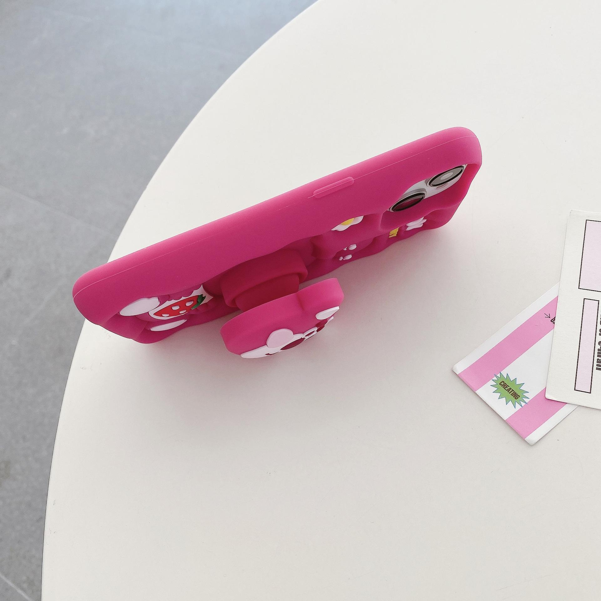 Silicone-strawberry bear telescopic bracket iPhone11PRO MAX