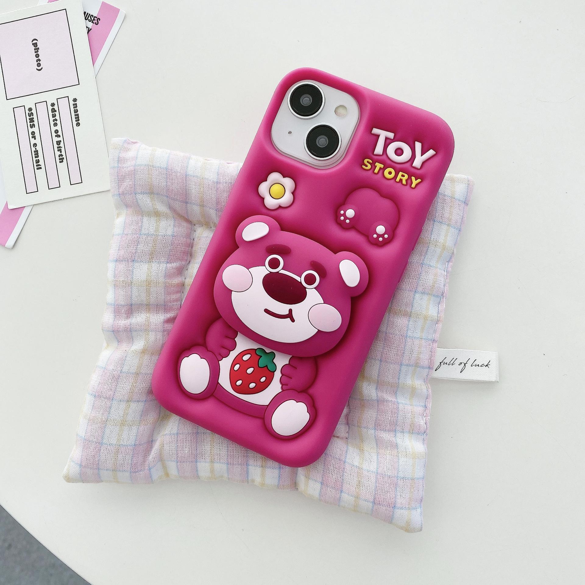Lindo Soporte de Oso Fresa Iphone15 Apple 12 Adecuado para 13/14Pro Max Juego de Funda para Teléfono Móvil 11