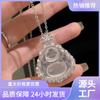 Collar con colgante de calabaza con hebilla de paz de Buda abrazando mineral crudo natural, joyería de alto contenido de oro púrpura y arena, cadena de suéter al por mayor