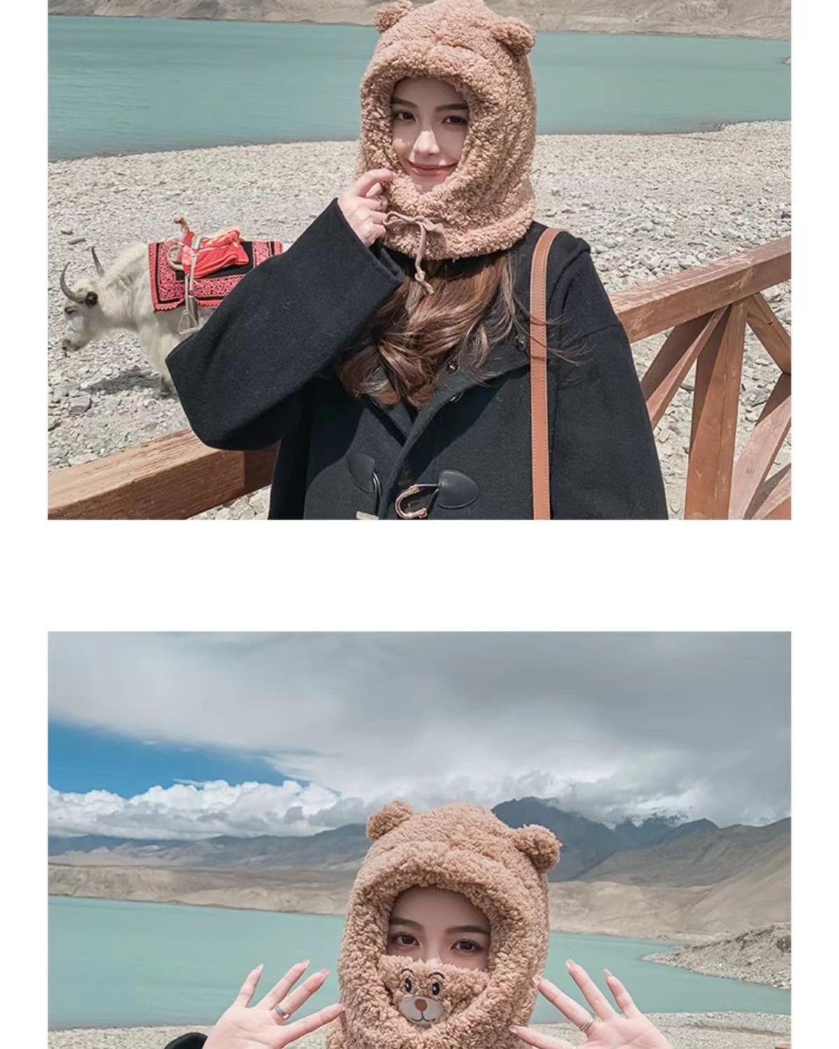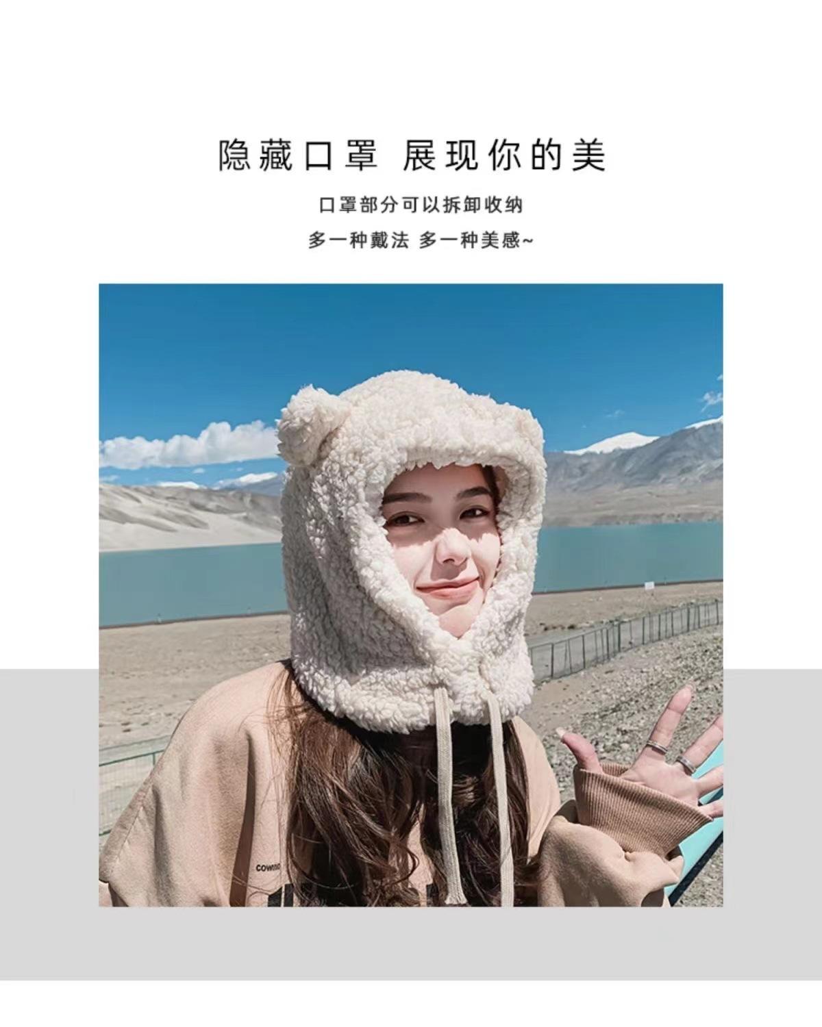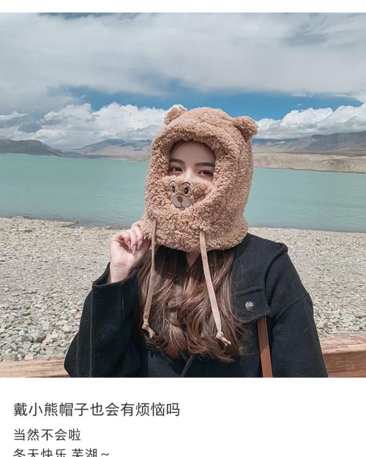 Nuevo invierno cálido bufanda de tres piezas sombrero todo en uno sombrero de oso lindo para mujer ciclismo forro polar sombrero de terciopelo grueso