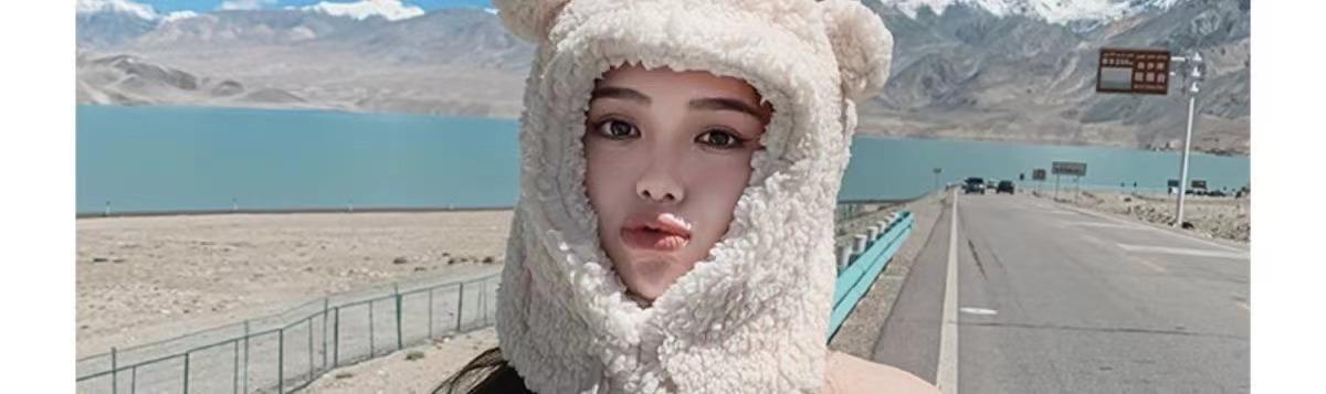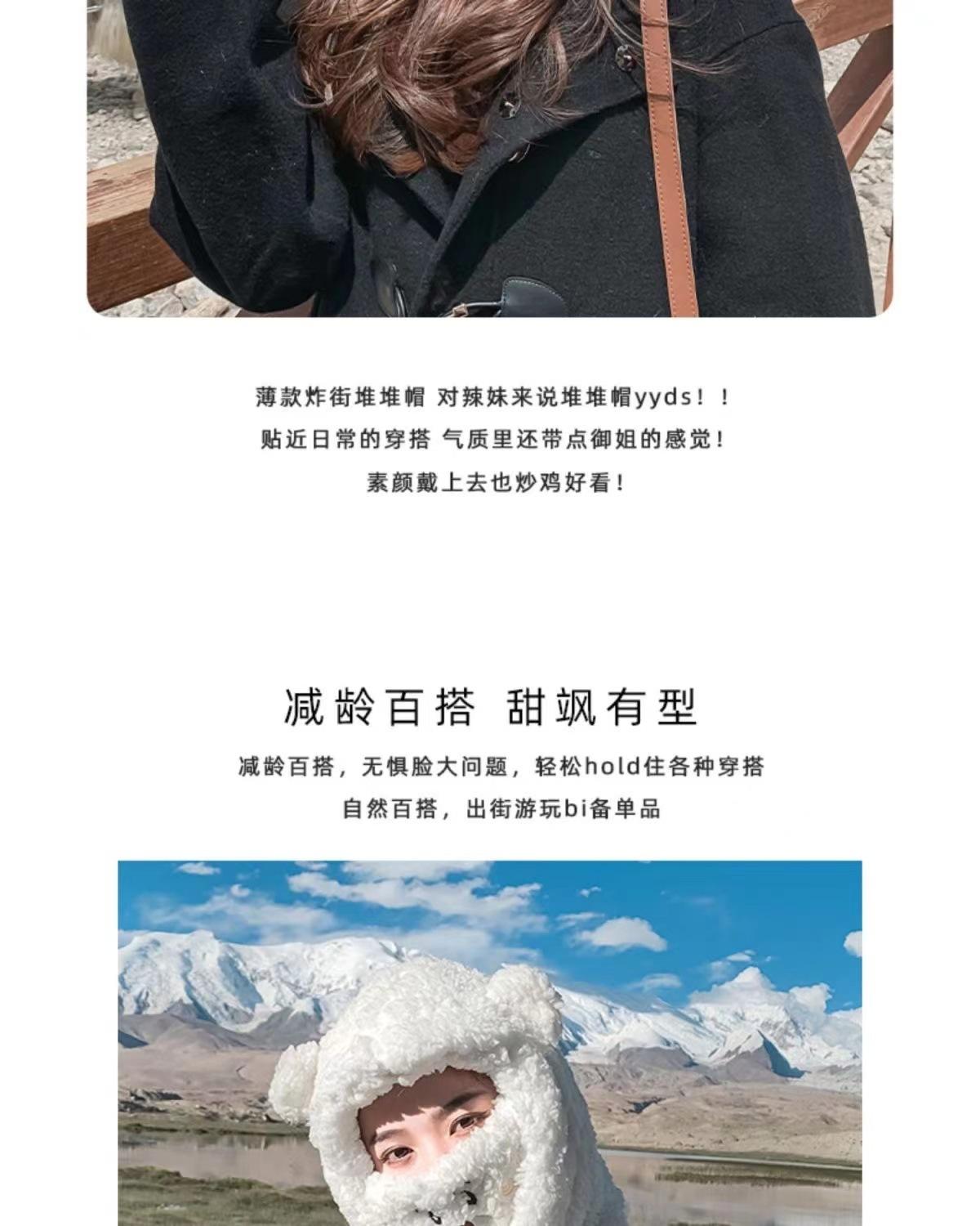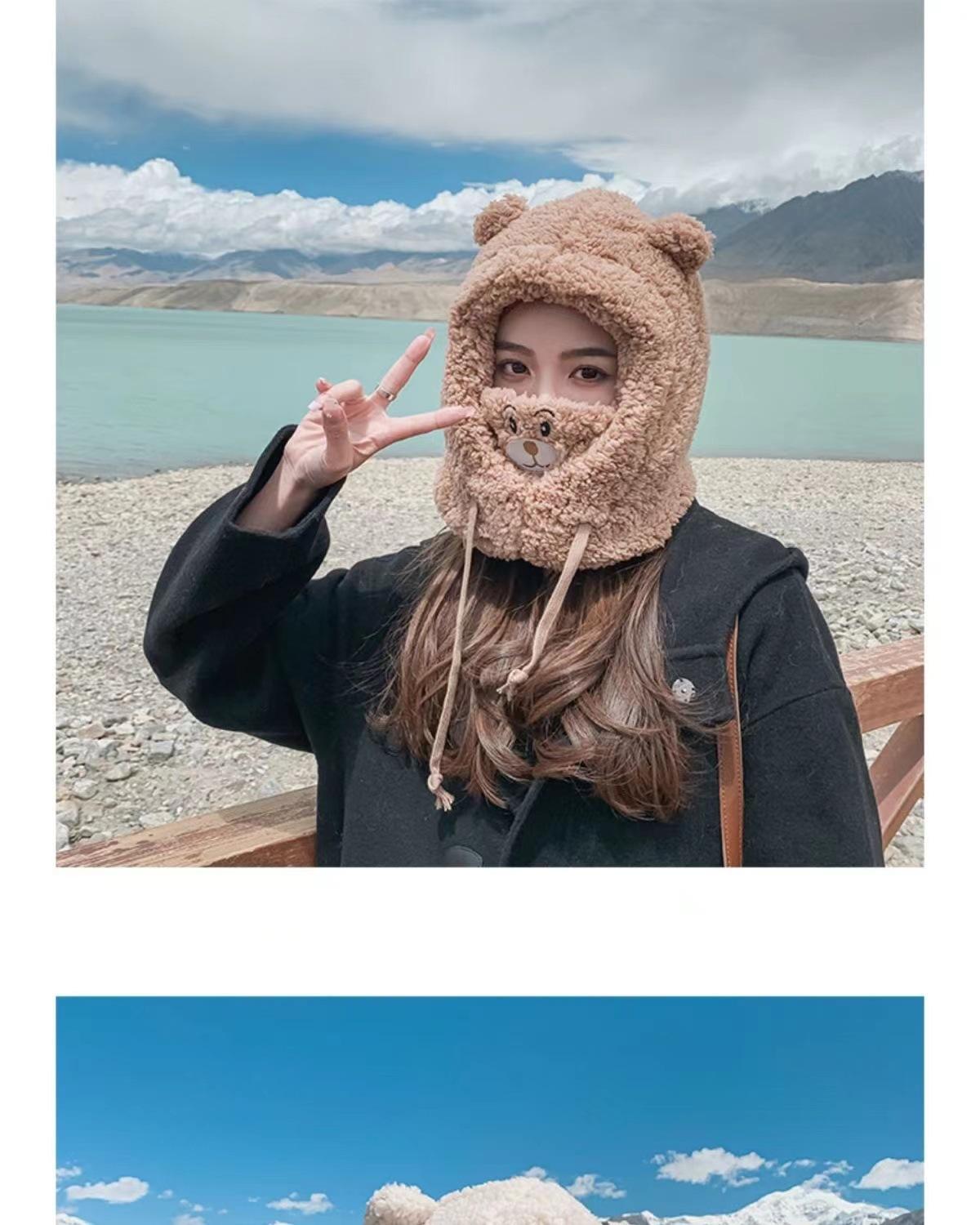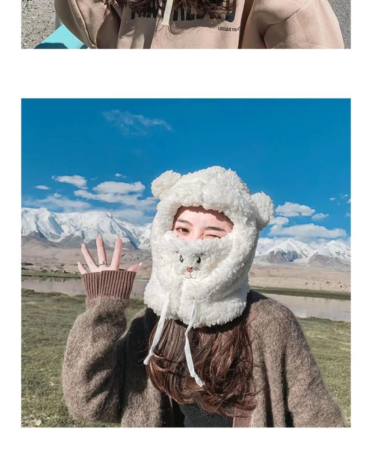 Nuevo invierno cálido bufanda de tres piezas sombrero todo en uno sombrero de oso lindo para mujer ciclismo forro polar sombrero de terciopelo grueso