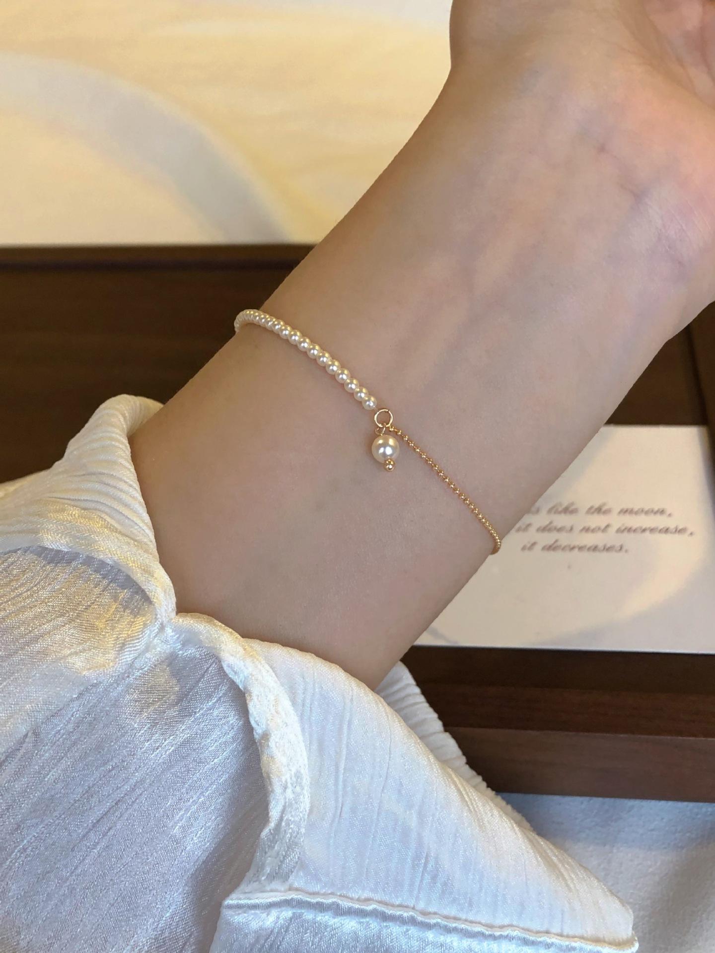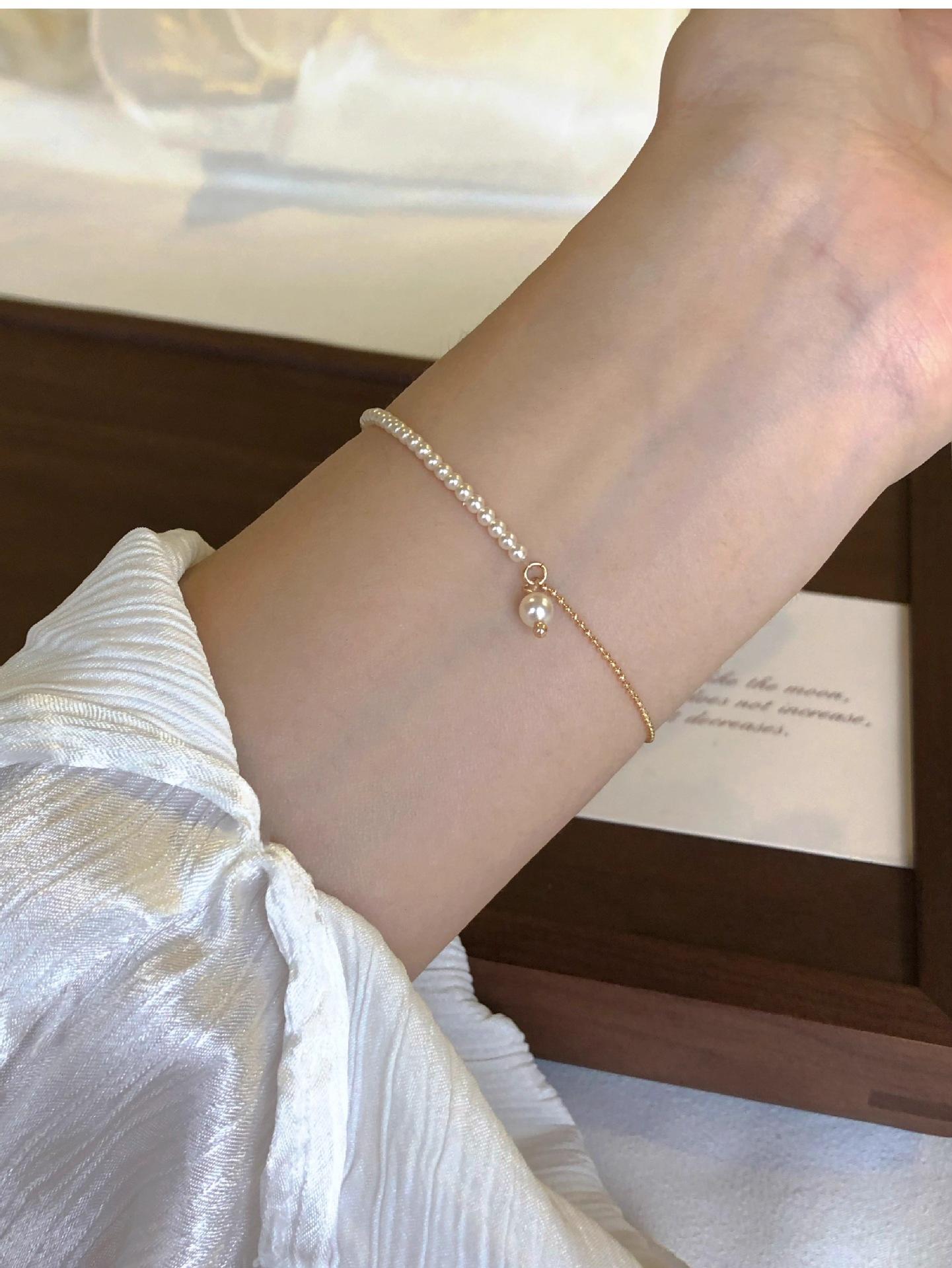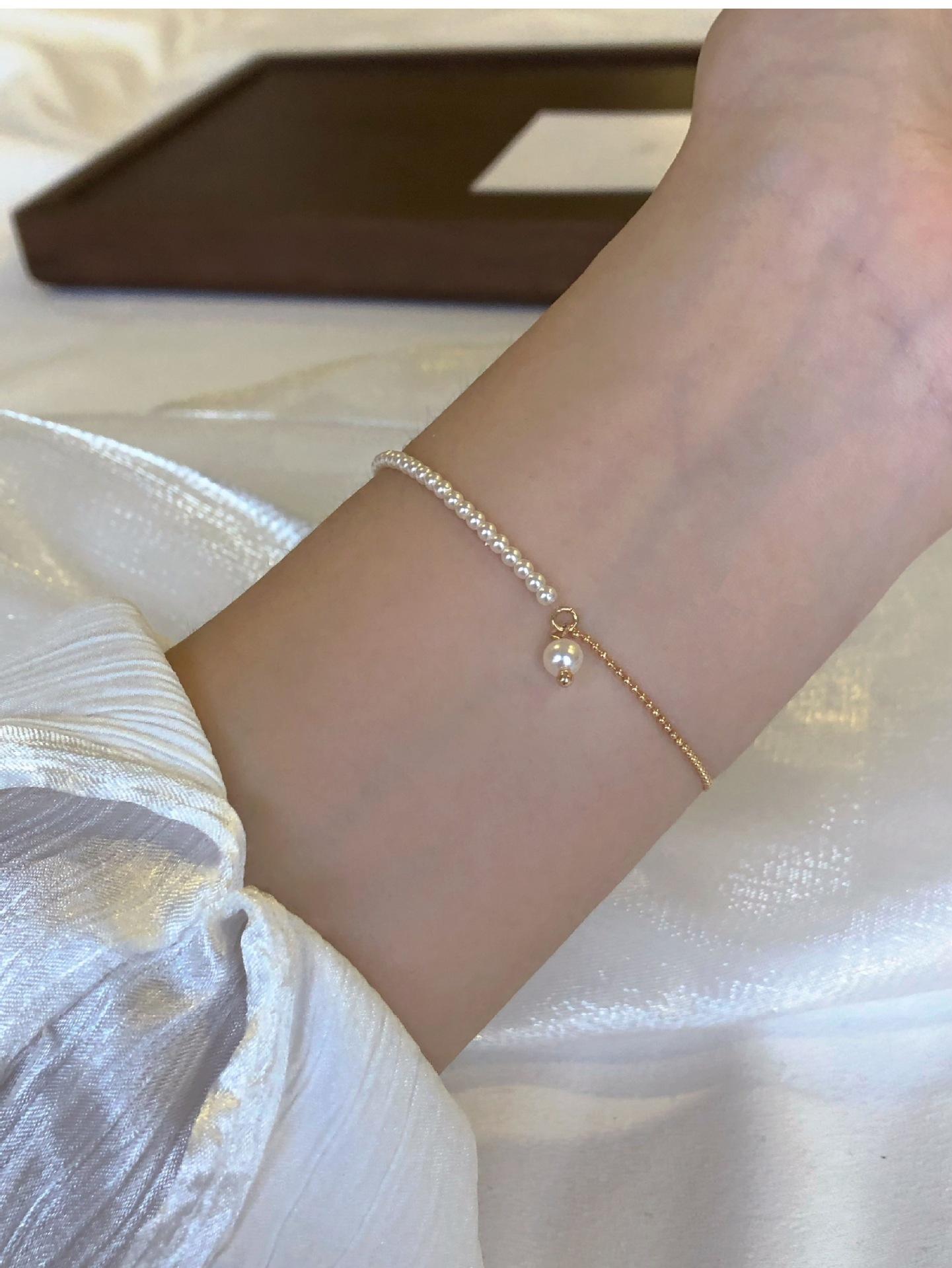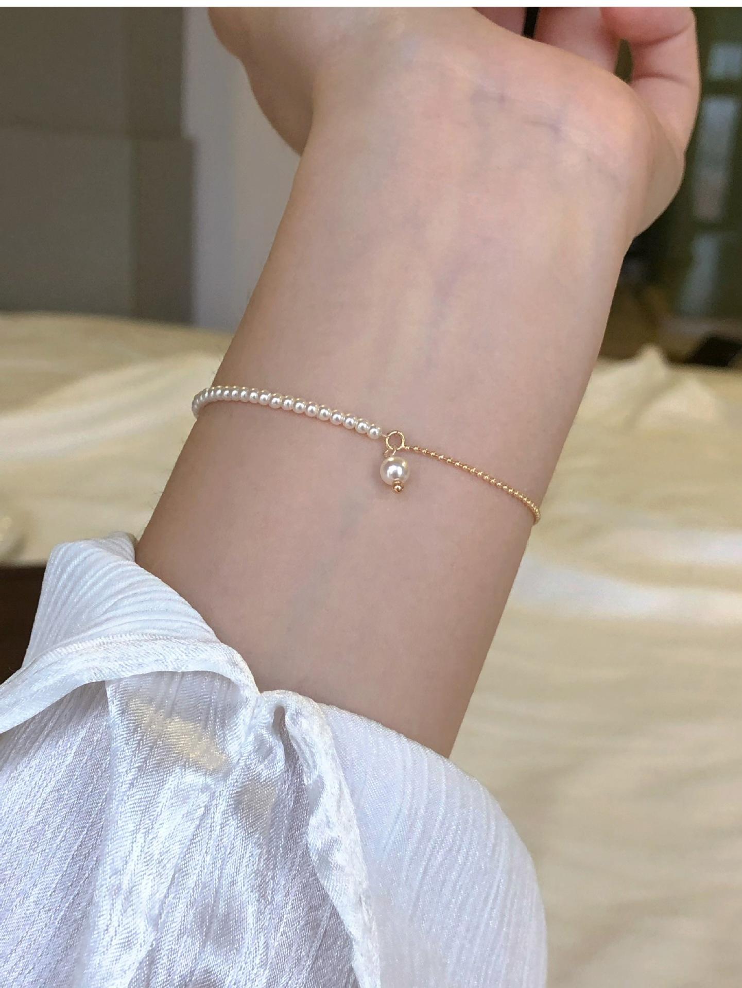 Small gold bead imitation pearl bracelet with exquisite gift box