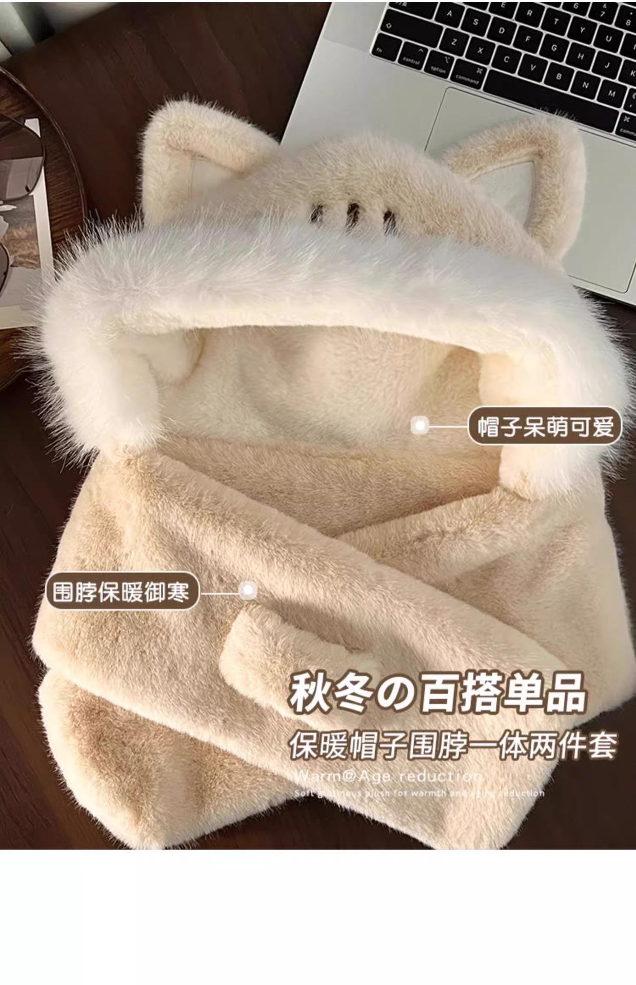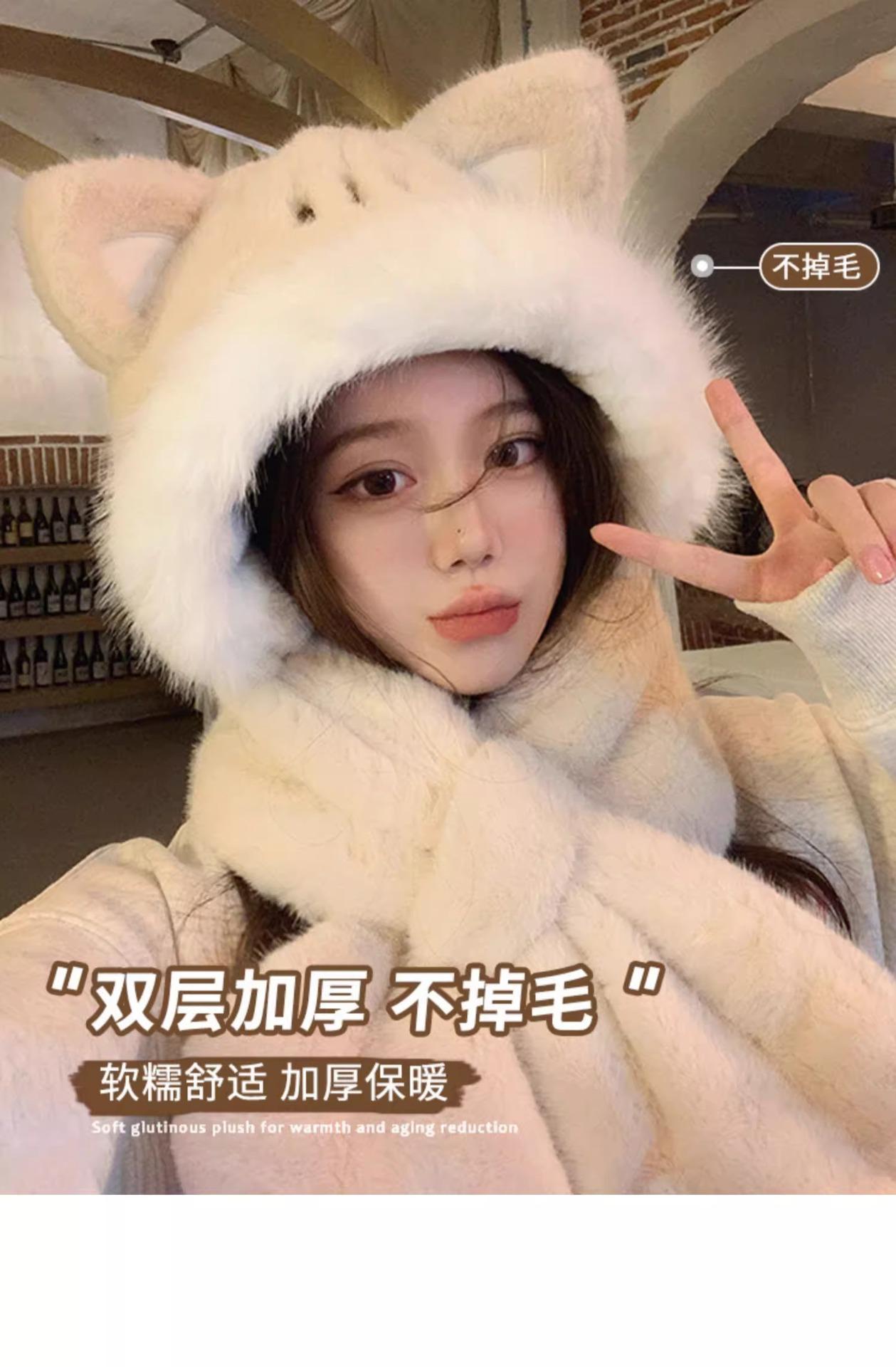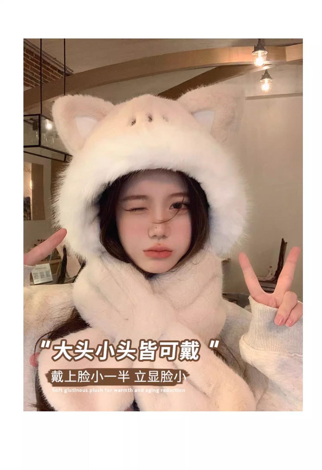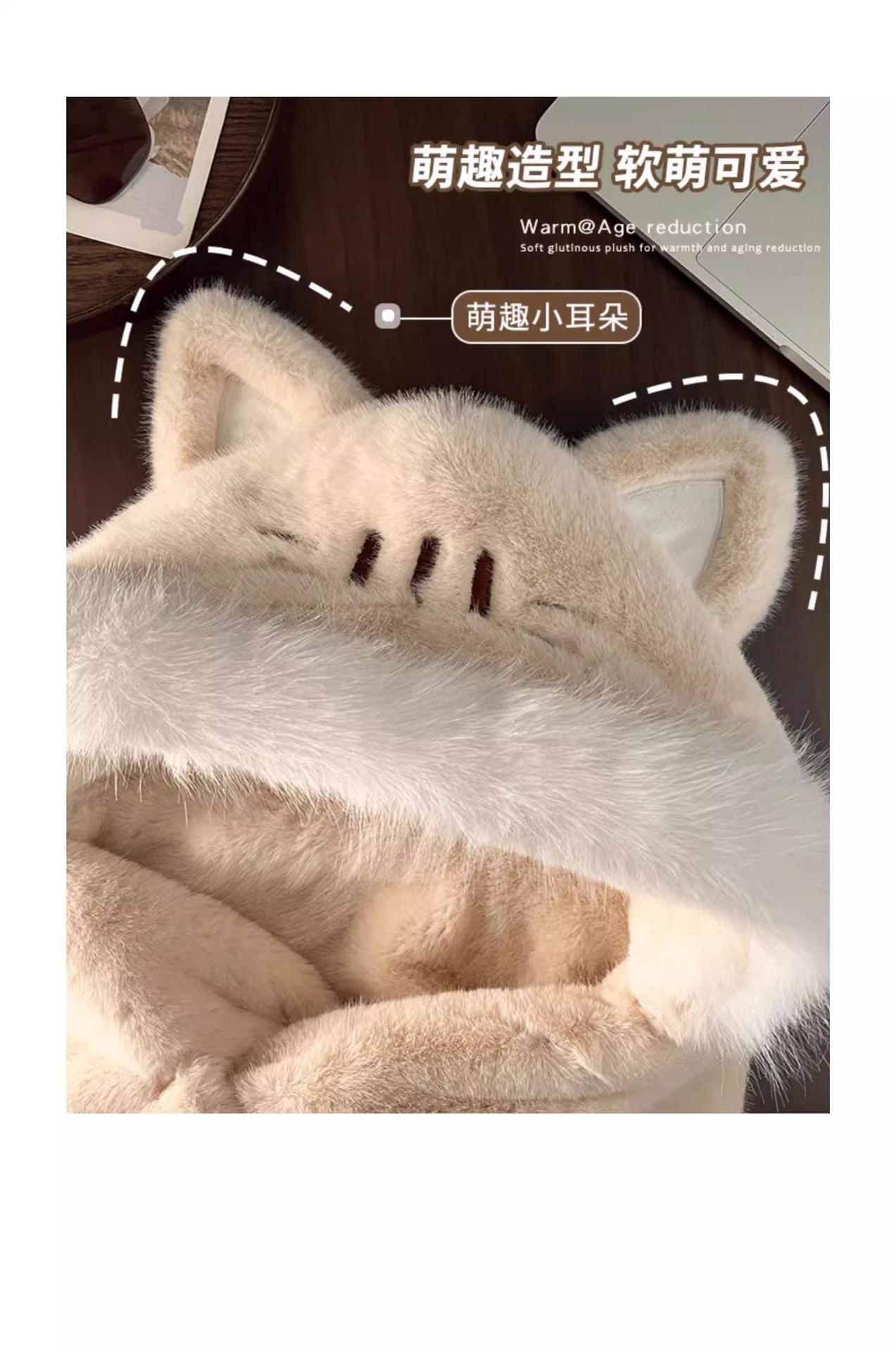 Lindo Gorro de Felpa con Orejas de Zorro para Mujer Bufanda de Invierno Gorro Todo en Uno Engrosado y Cálido Gorro Lei Feng del Noreste Gorro Baotou