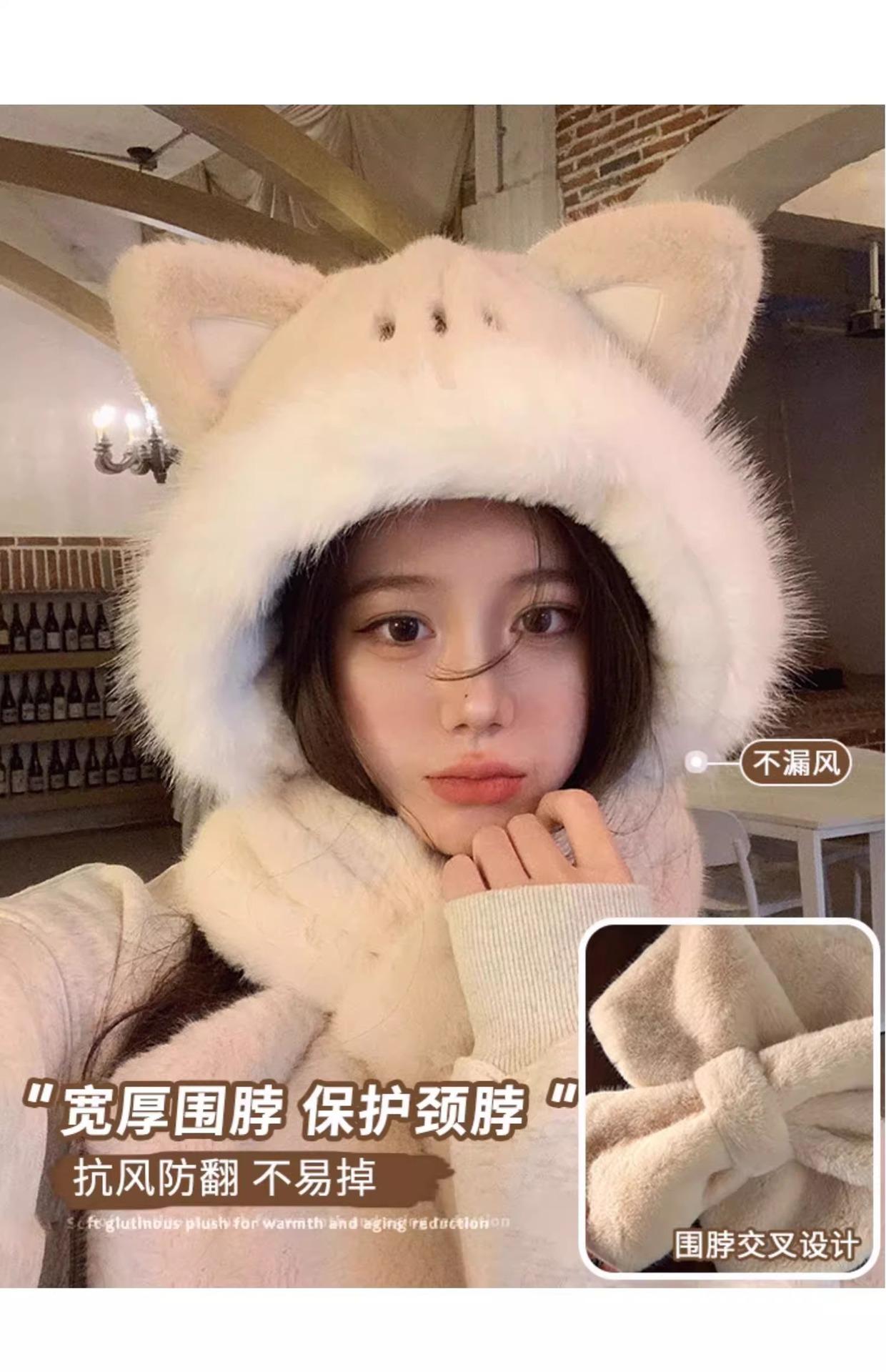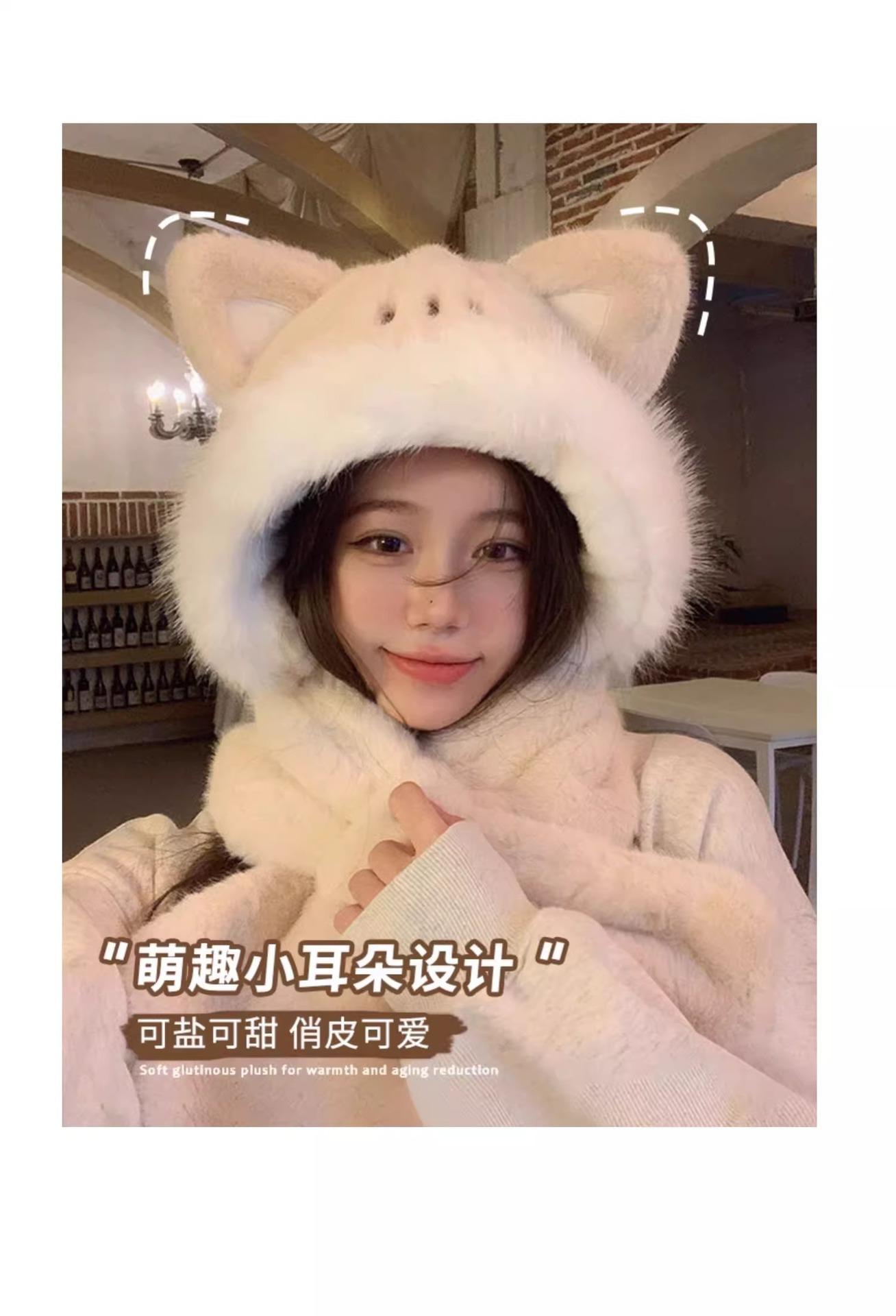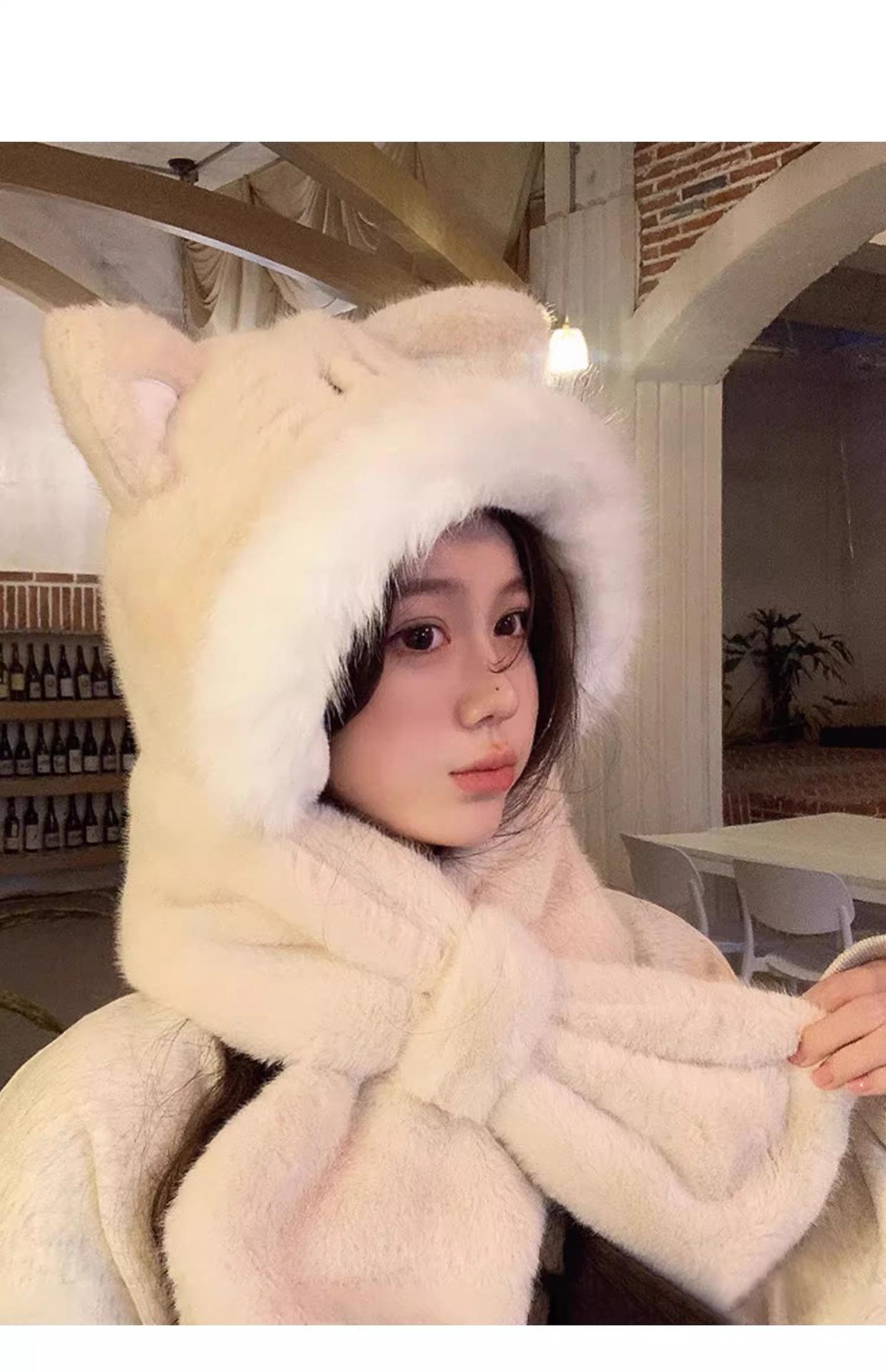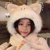 Lindo Gorro de Felpa con Orejas de Zorro para Mujer Bufanda de Invierno Gorro Todo en Uno Engrosado y Cálido Gorro Lei Feng del Noreste Gorro Baotou