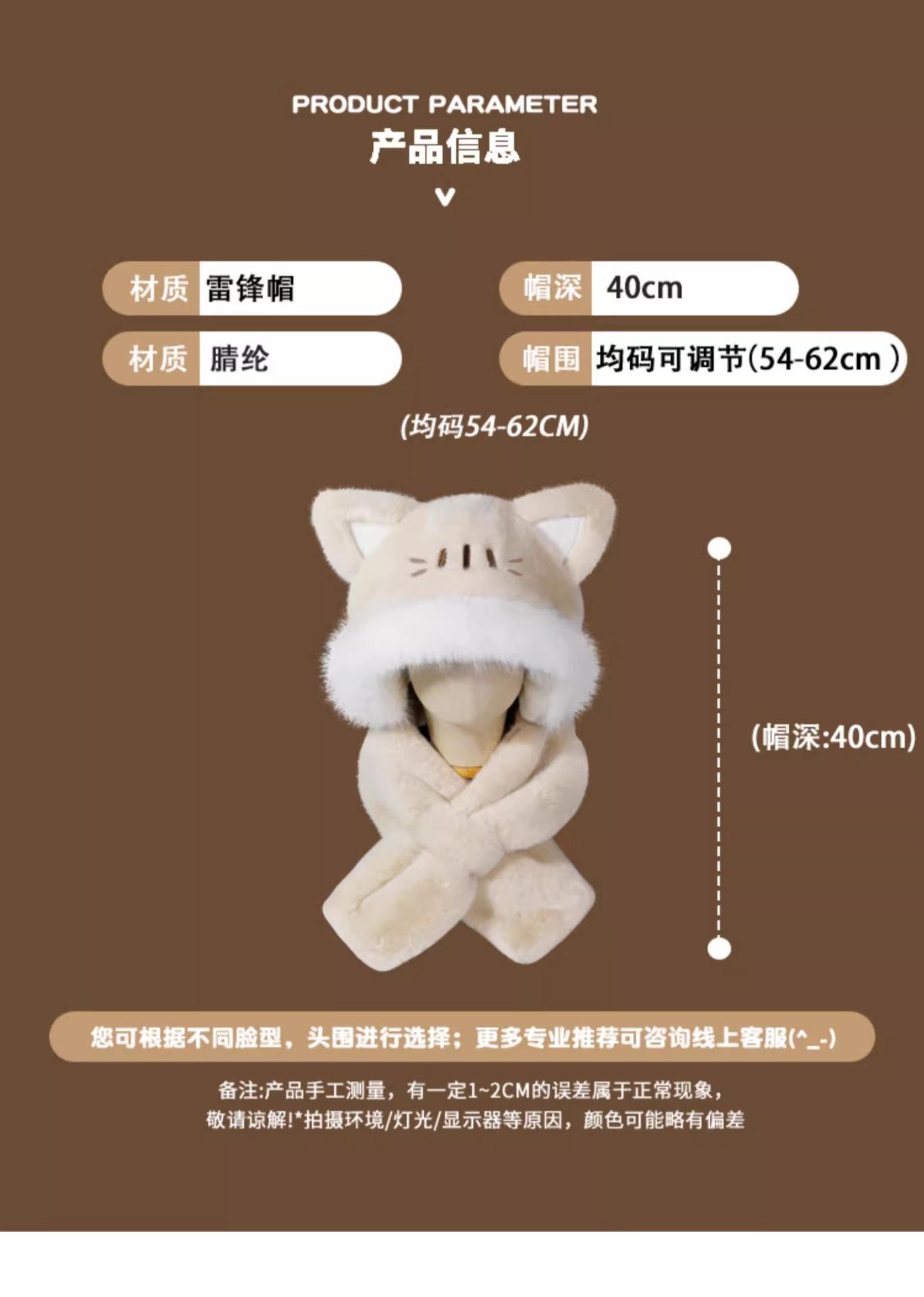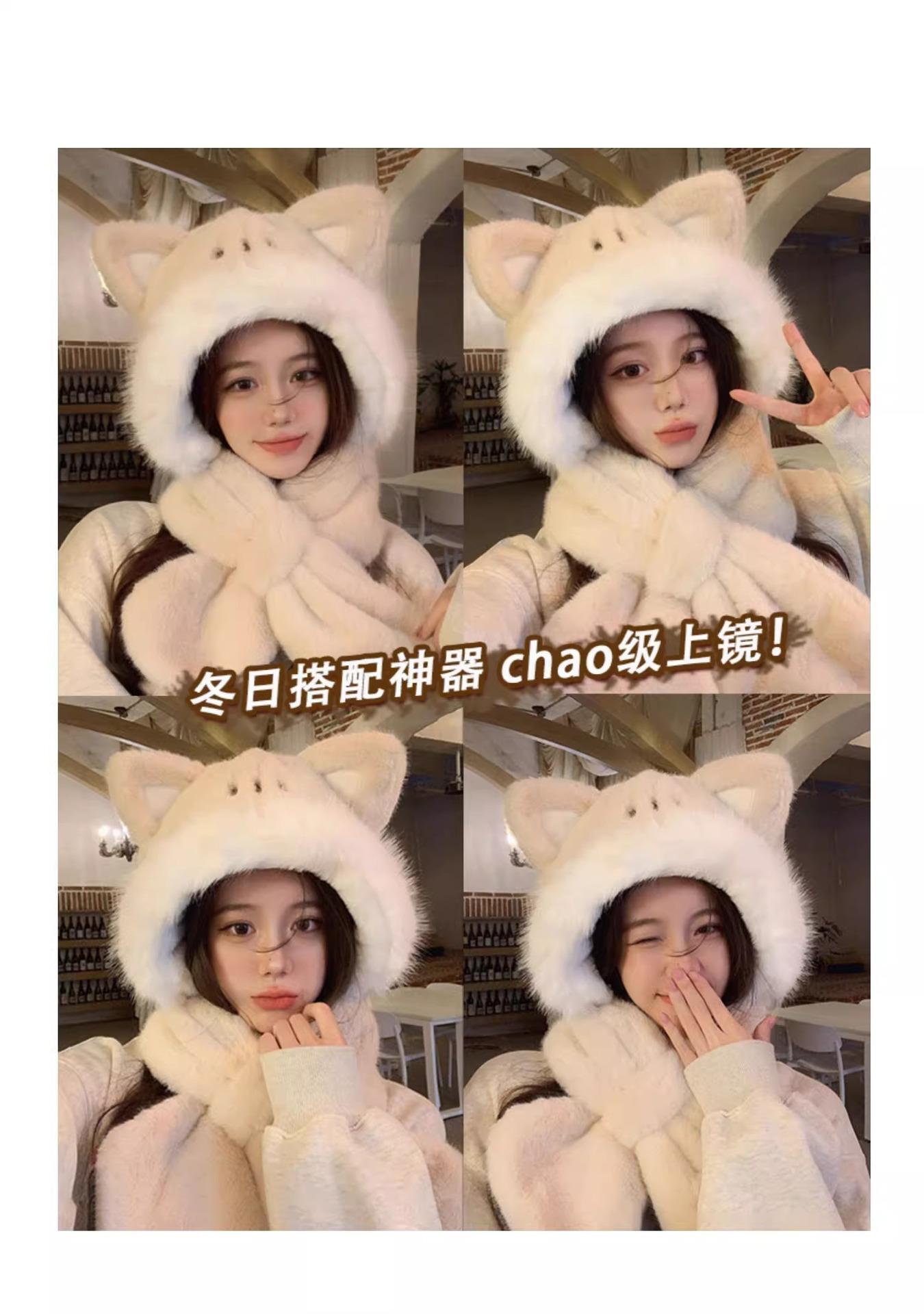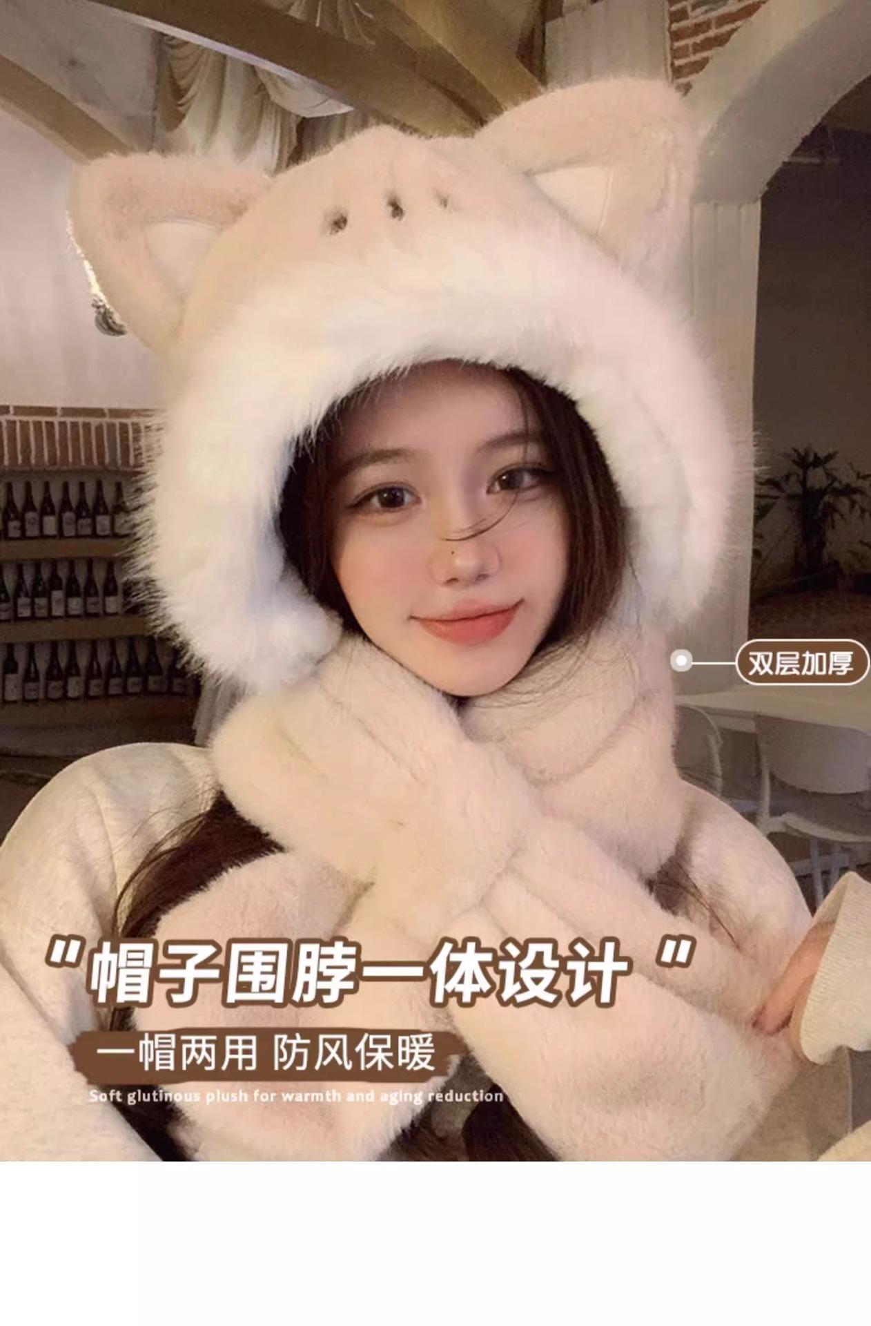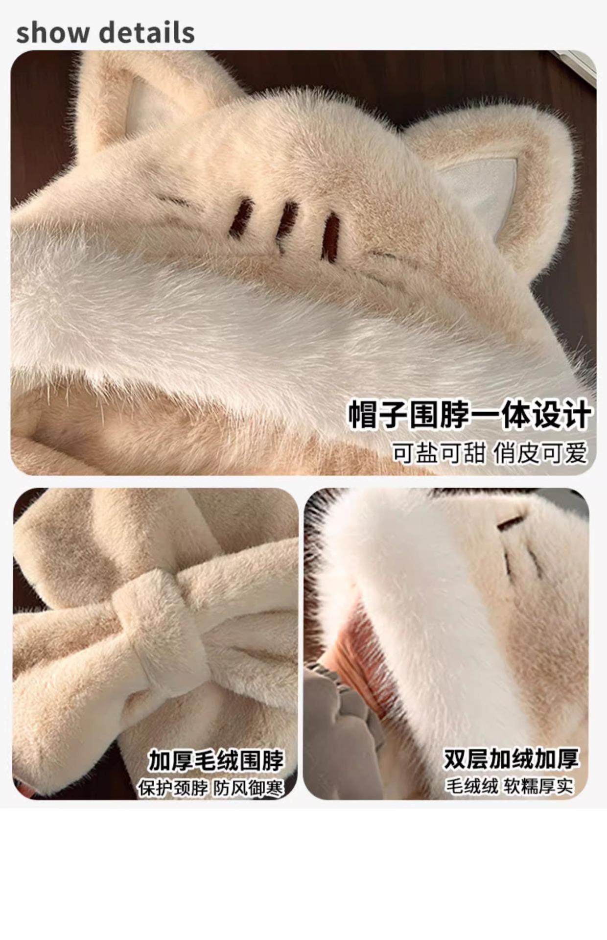 Lindo Gorro de Felpa con Orejas de Zorro para Mujer Bufanda de Invierno Gorro Todo en Uno Engrosado y Cálido Gorro Lei Feng del Noreste Gorro Baotou
