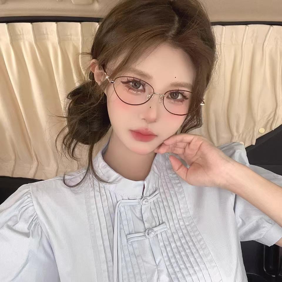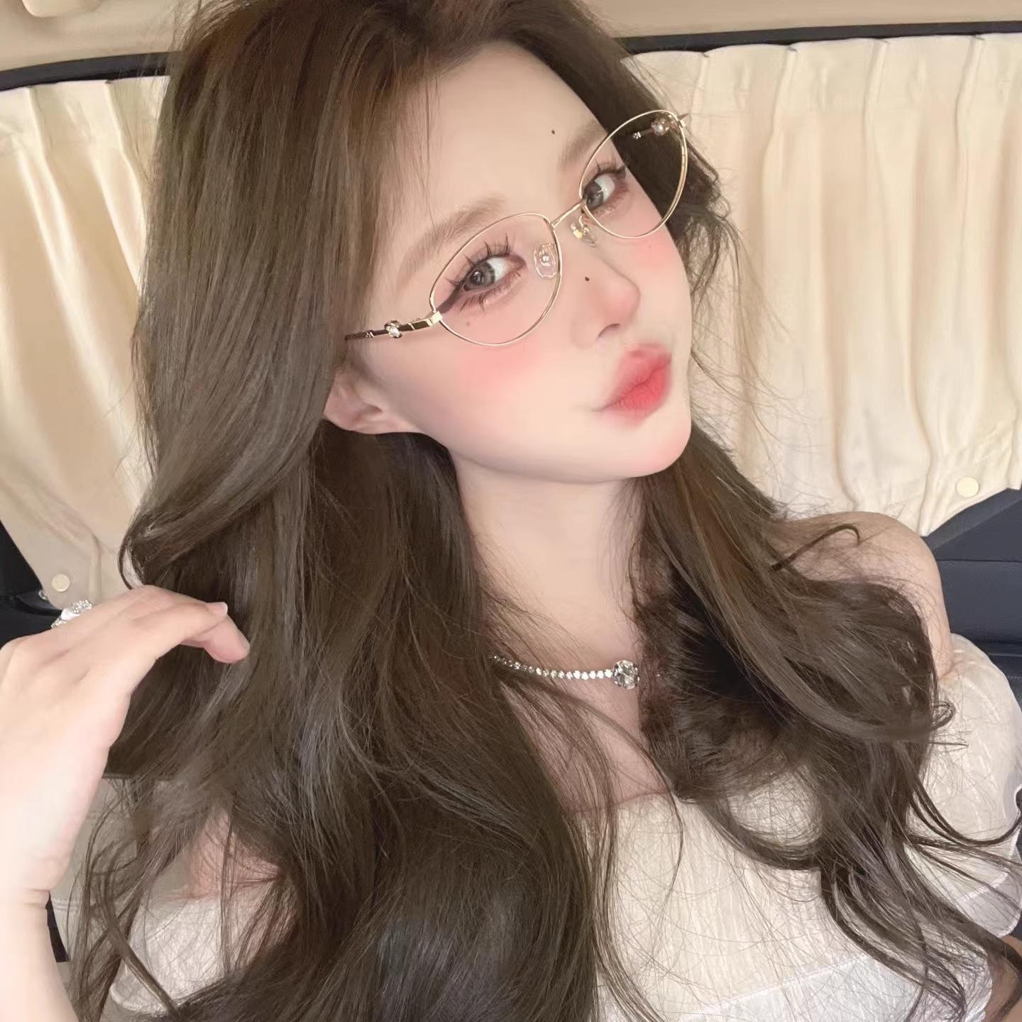 Armazón de Lentes Ojo de Gato Dorado Anke para Mujer Miopía Se Puede Equipar Armazón Ovalado de Alto Sentido Lentes Planas 58166