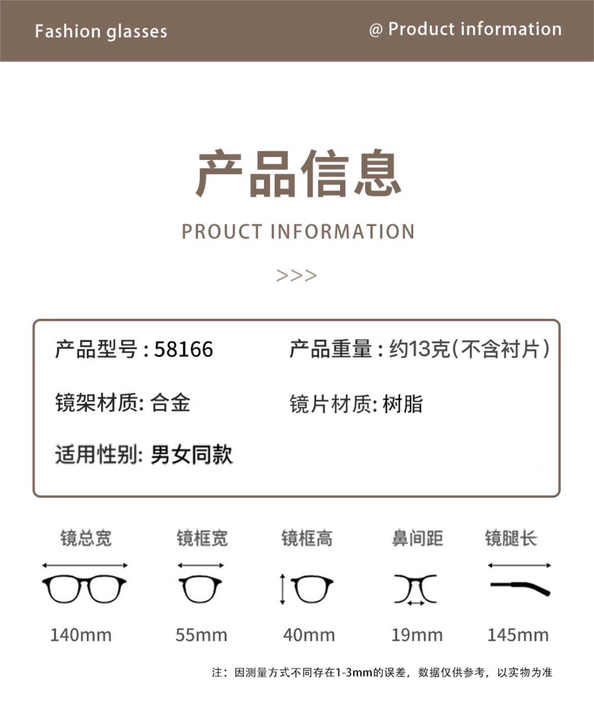 Black, Silver, Orange gold, Red gold, Rose gold, Milk coffee gold, [please contact customer service for the prescription]