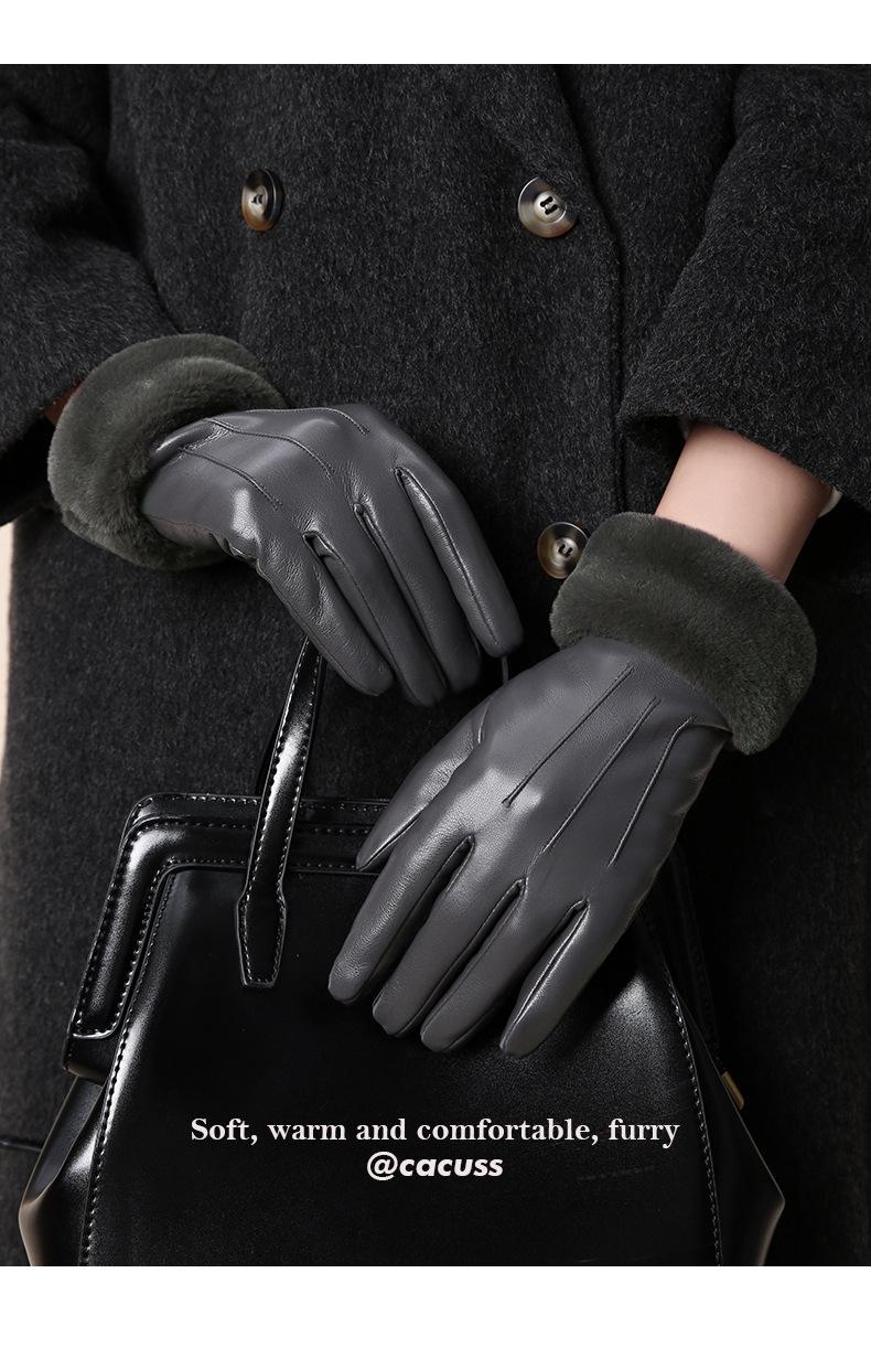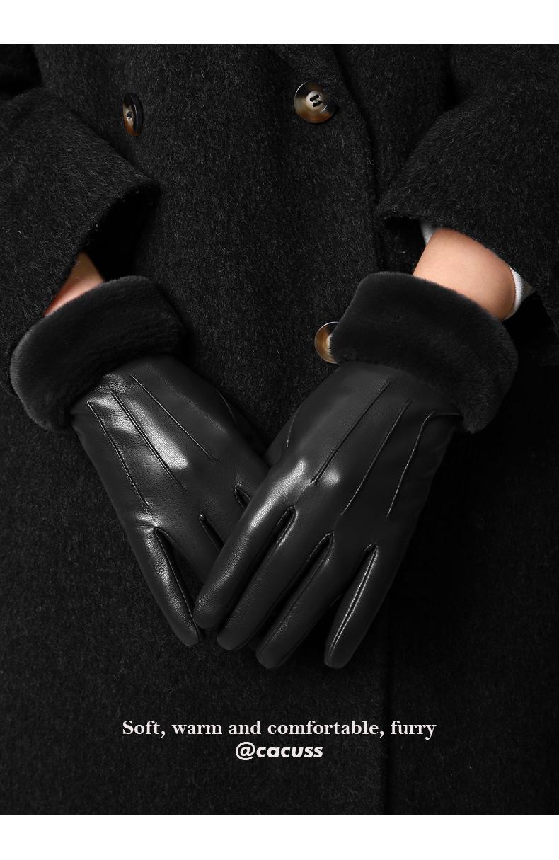 Guantes de terciopelo cálidos de otoño e invierno para mujer, para exteriores, resistentes al viento y al frío, guantes de cuero artificial impermeables con pantalla táctil.