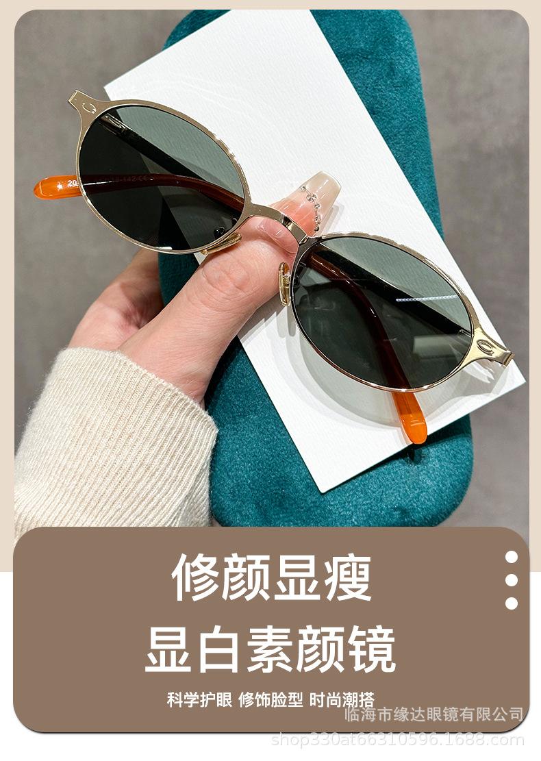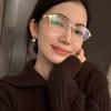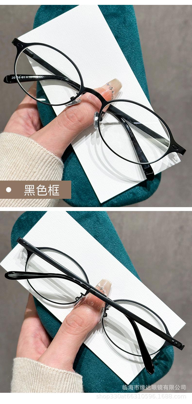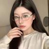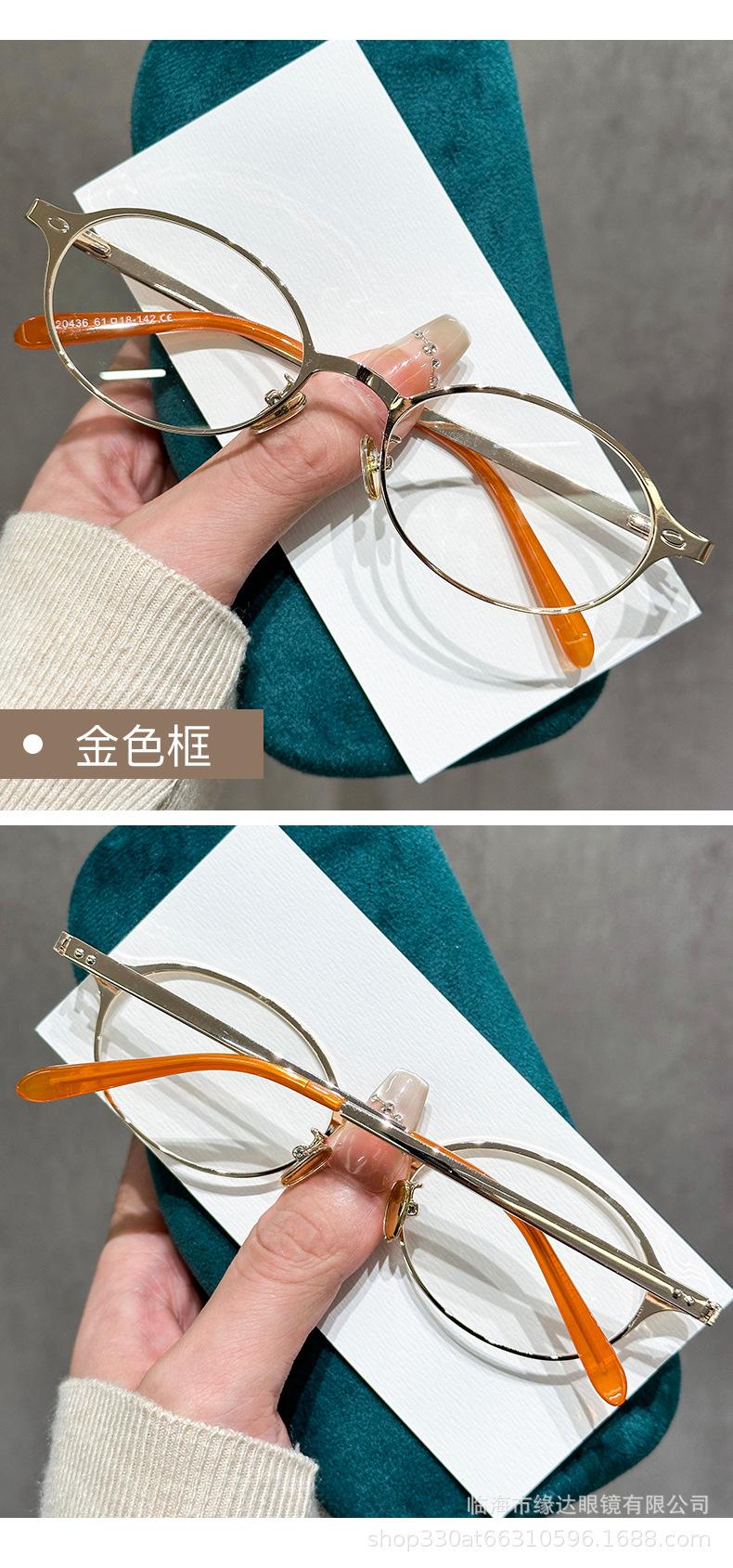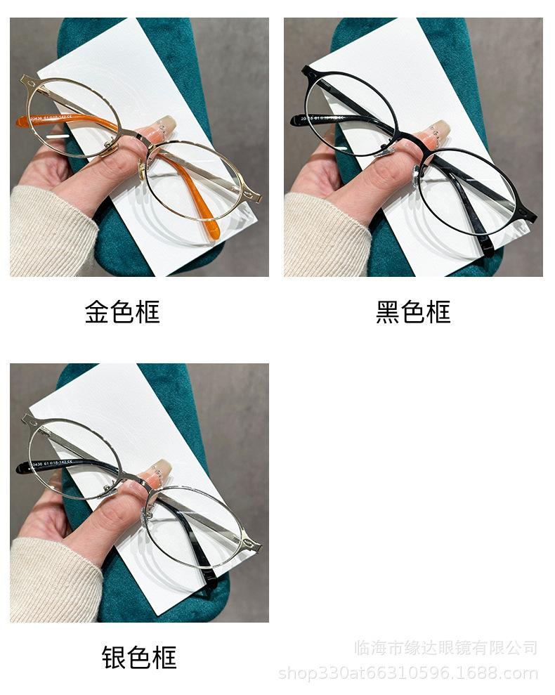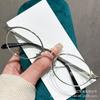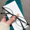 Gafas lisas ovaladas nerd retro de estilo coreano con montura dorada metálica de borde completo y miopía de grado ajustable para mujer