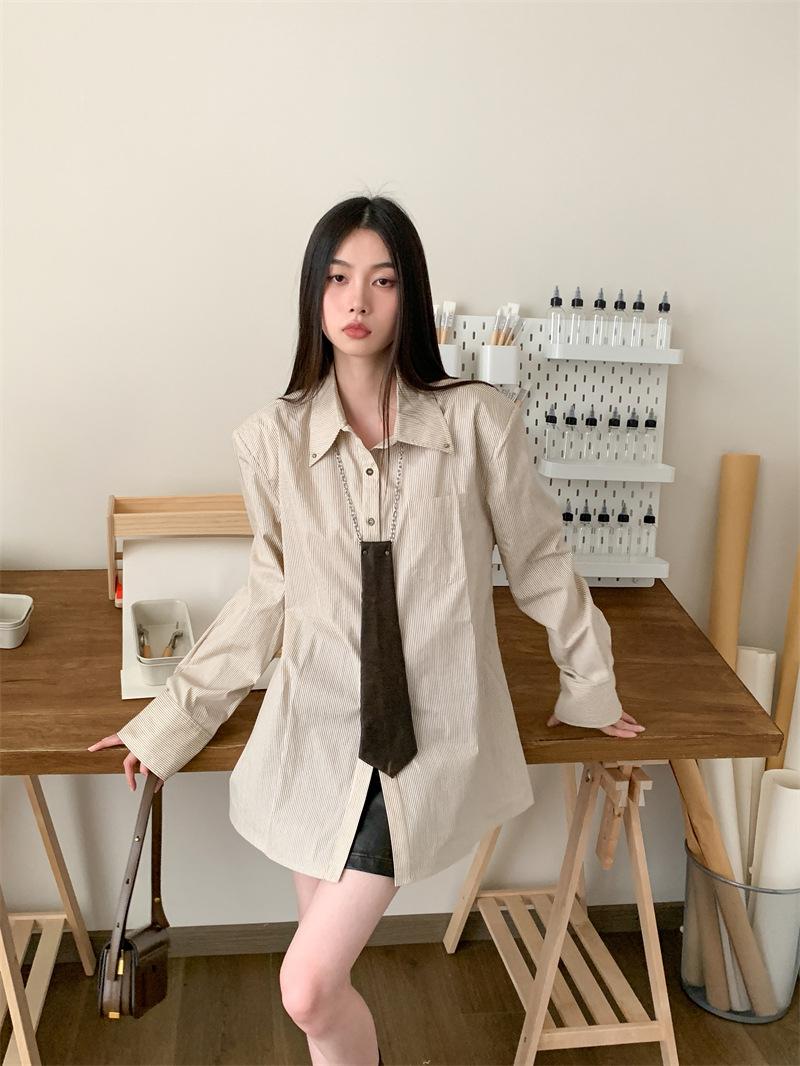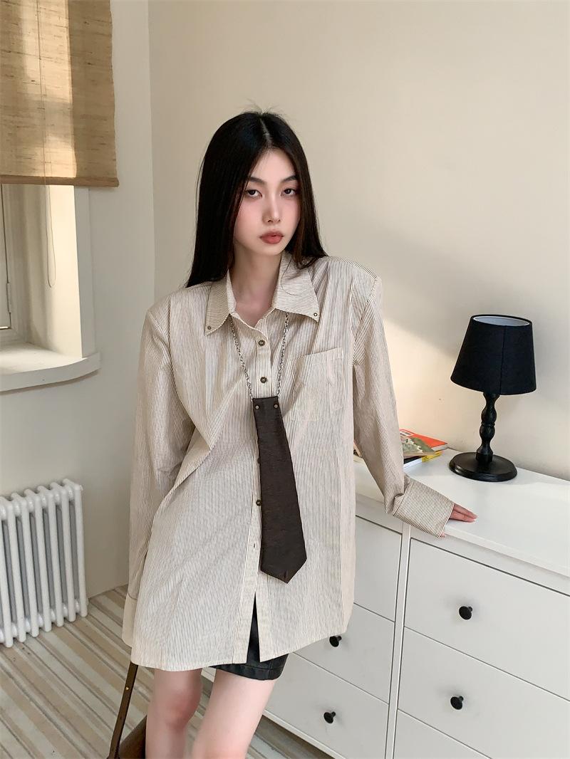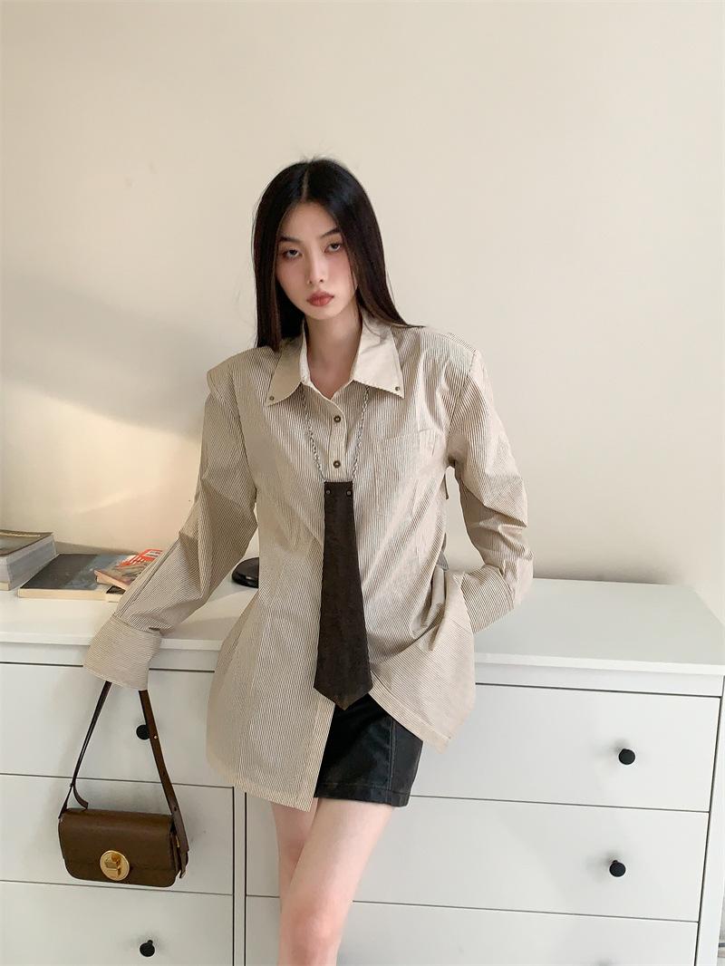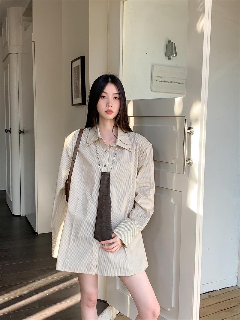 Camisa a rayas con perfil de hombros, foto real en stock