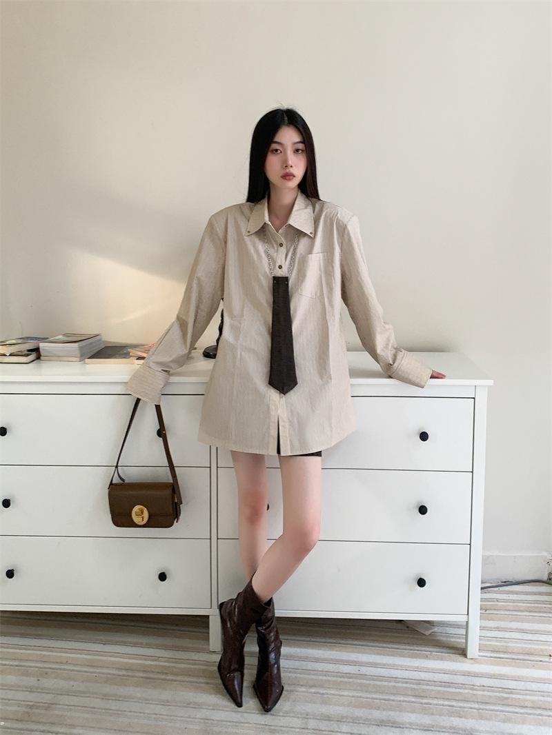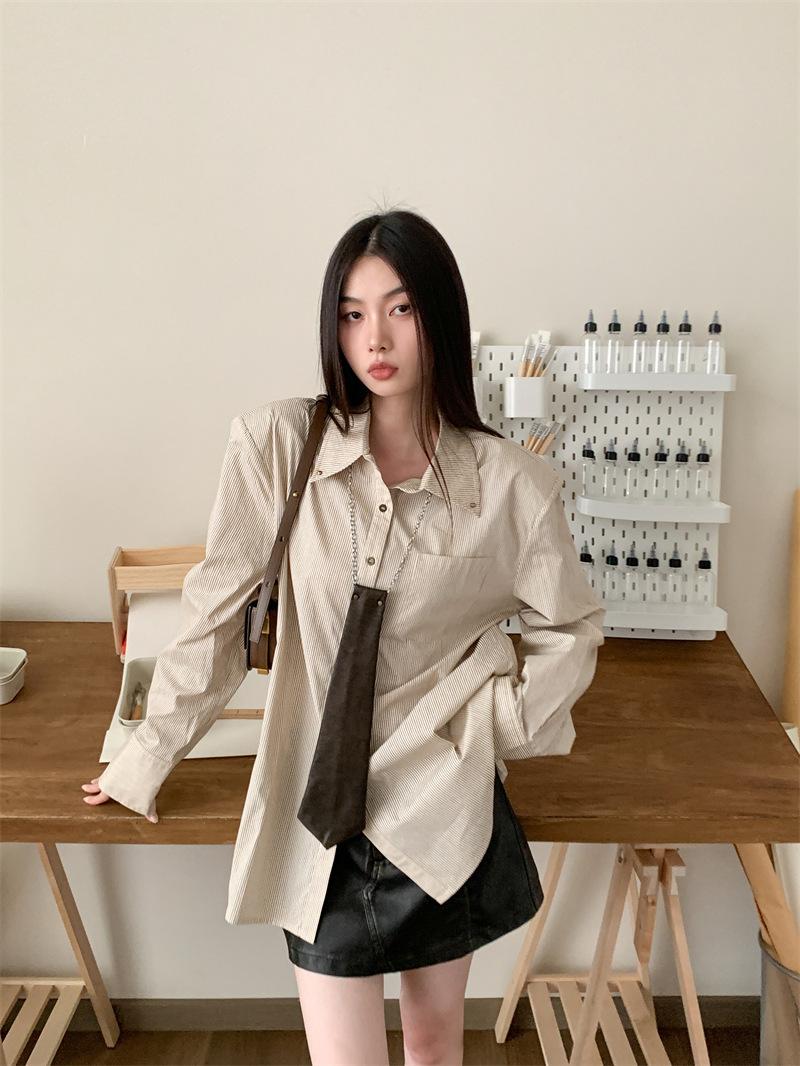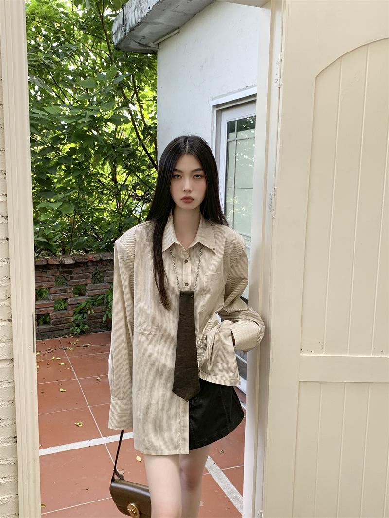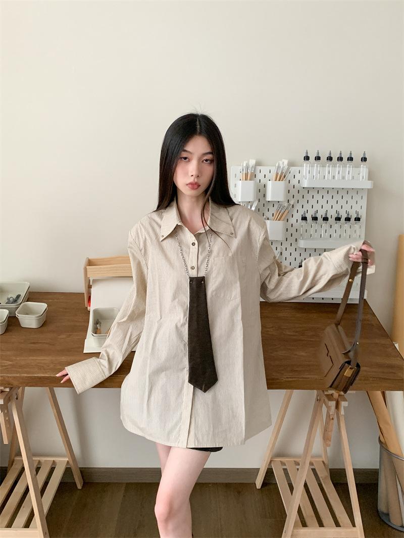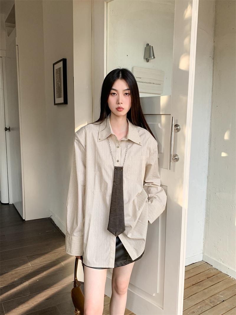 Camisa a rayas con perfil de hombros, foto real en stock