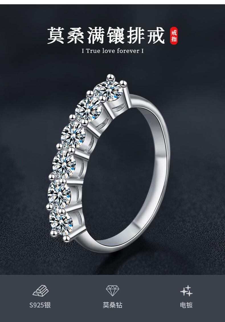 Anillo de plata esterlina S925 de joyería transfronteriza para mujer, serie de anillos de diamantes Mosan de alta gama, anillo de diamantes completo de Europa y América.