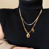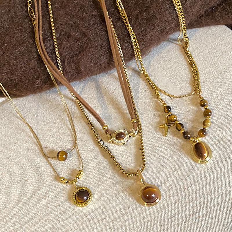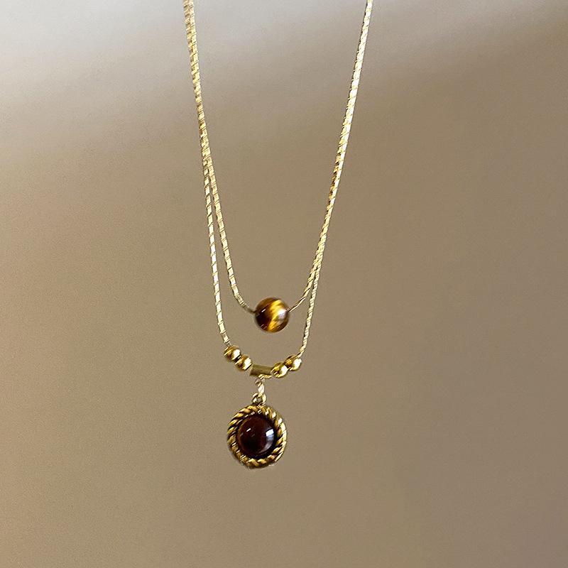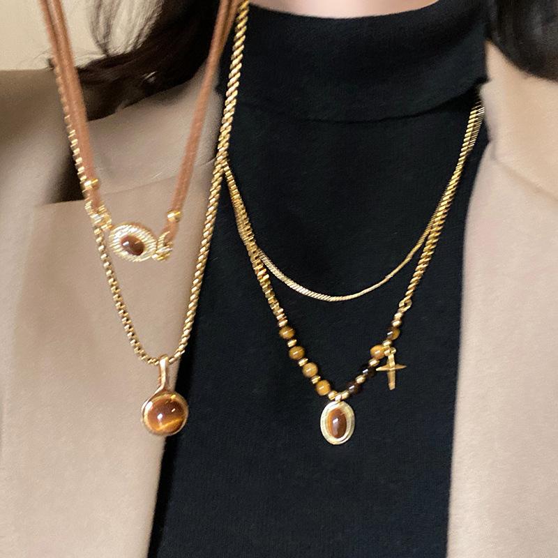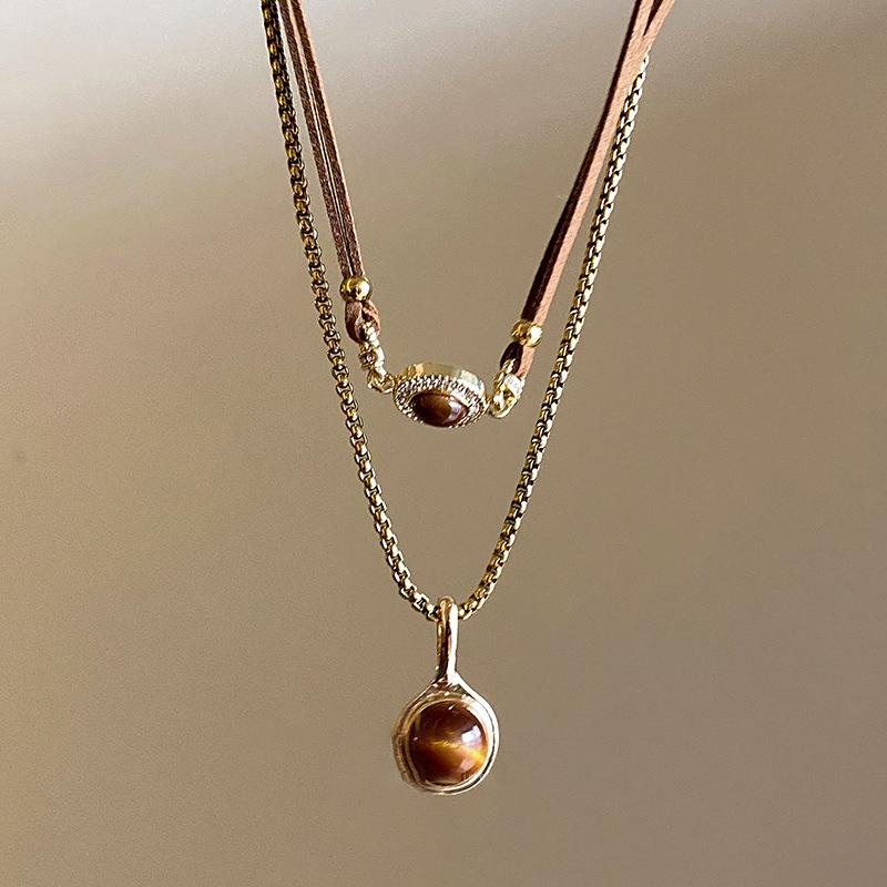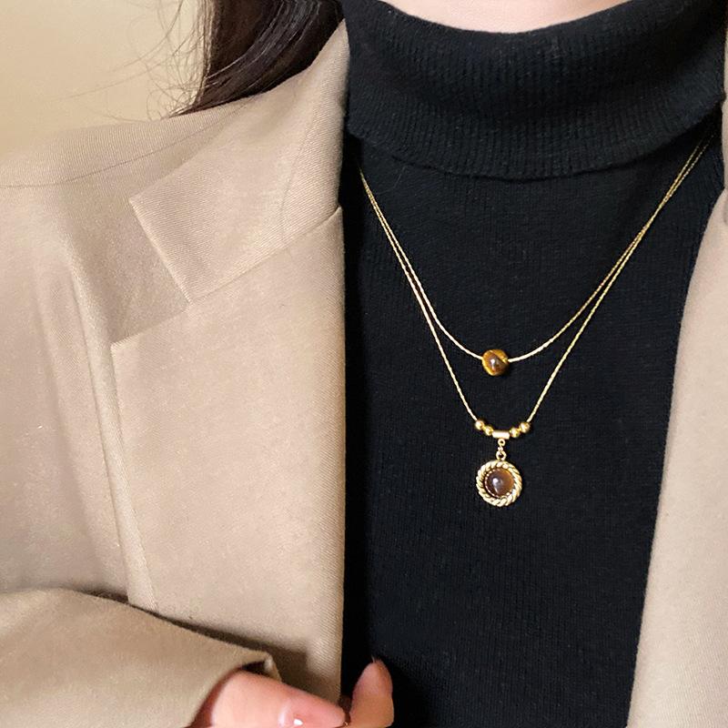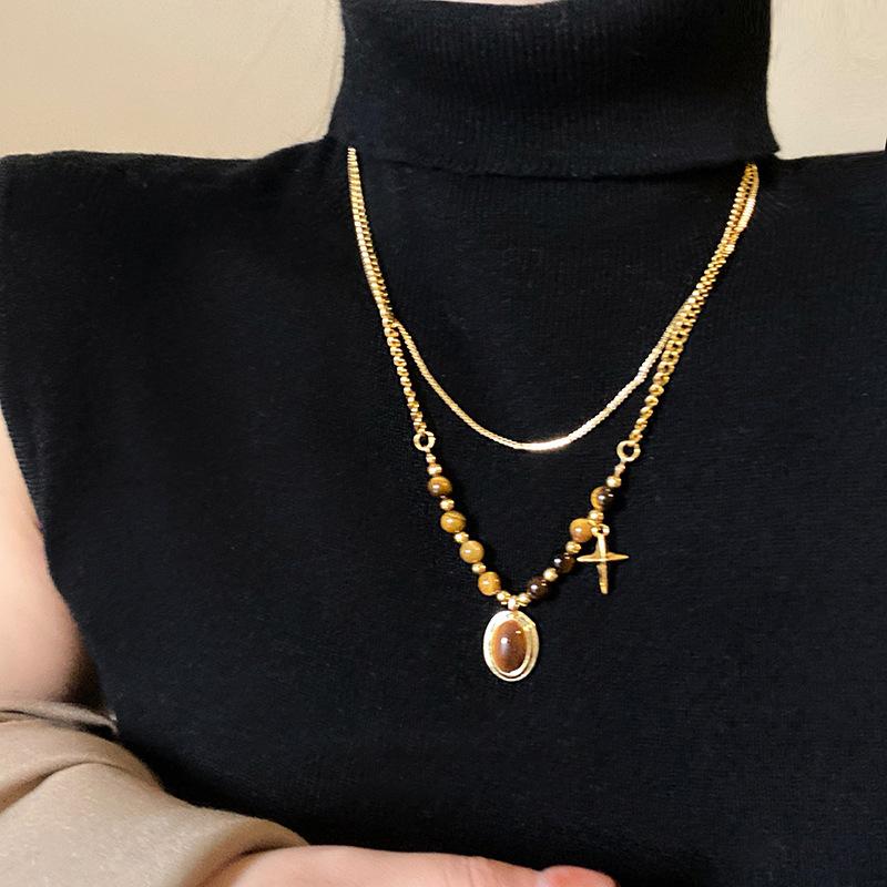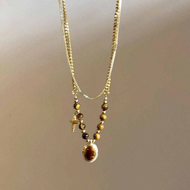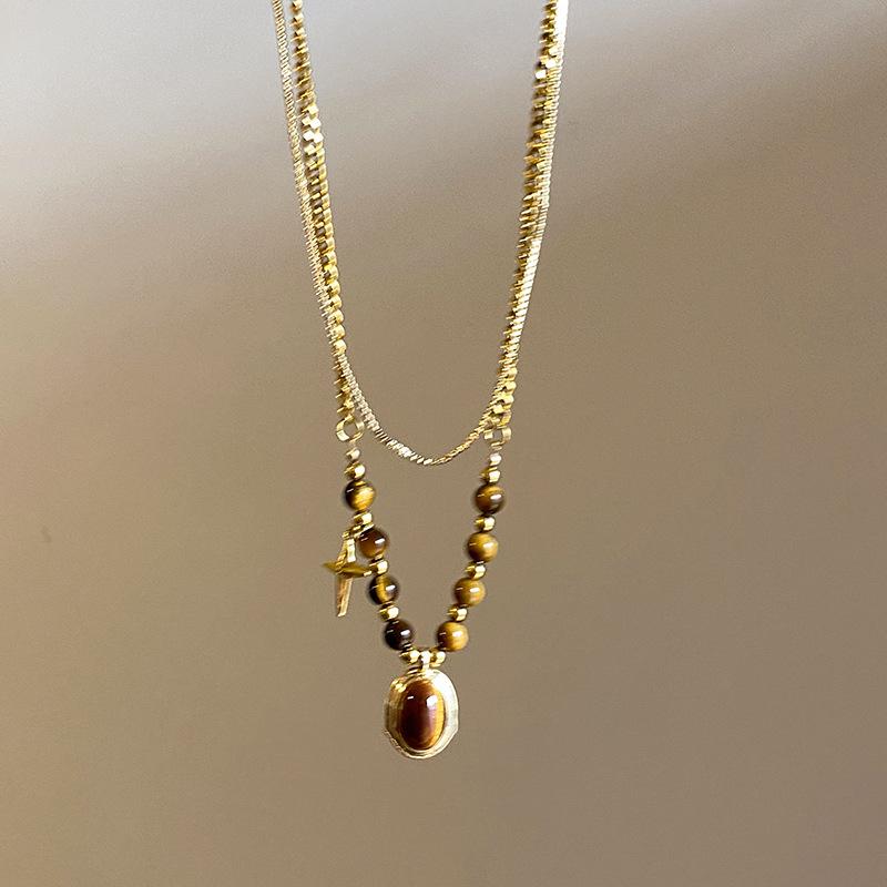 Collar con colgante de doble capa de piedra ojo de tigre artificial estrella, cadena de clavícula nicho europeo y americano versátil, collar de temperamento retro de lujo ligero