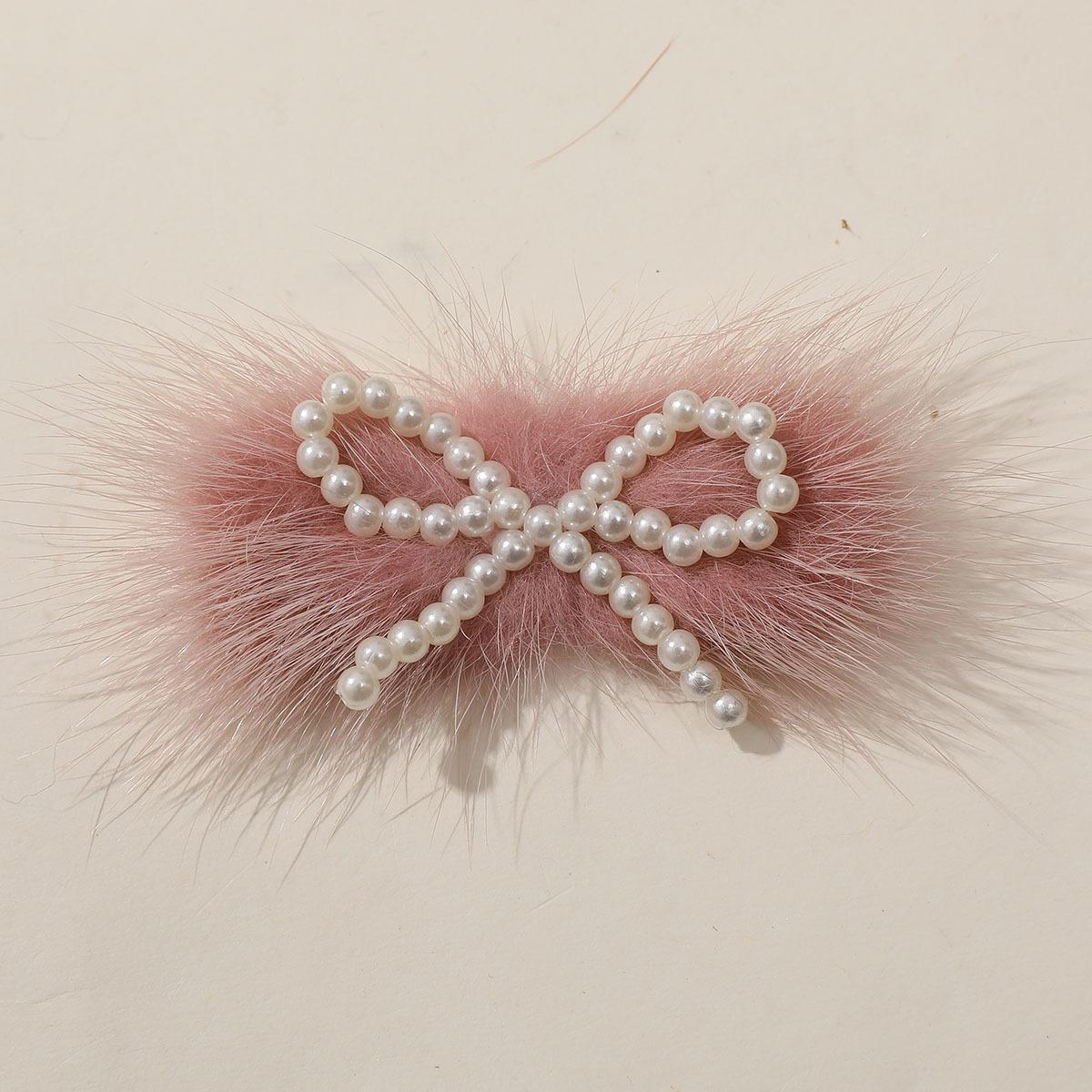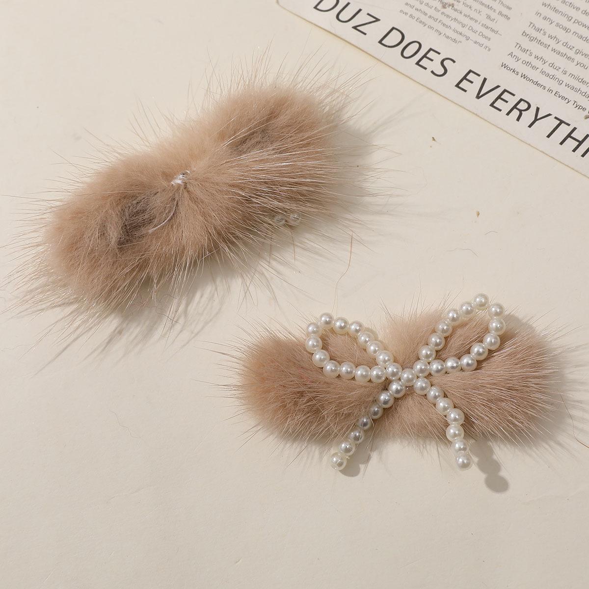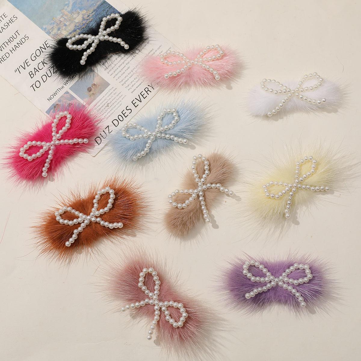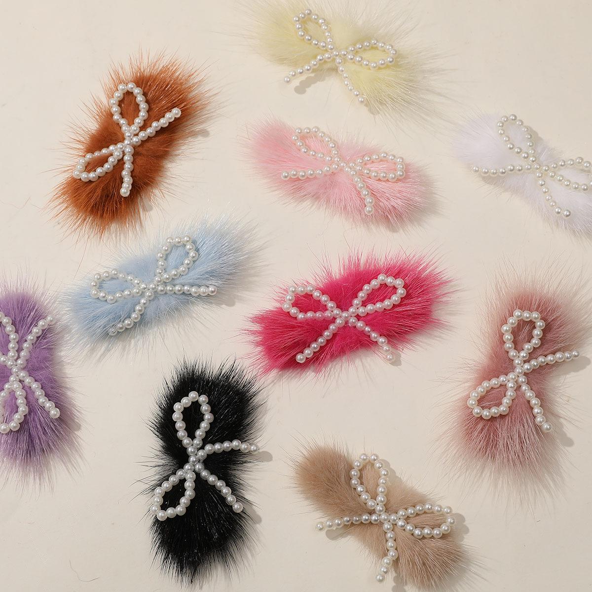 Parche de pelo de visón de principios de otoño para niña, lazo de perla de imitación, horquilla hecha a mano, accesorios para bolso y carcasa de teléfono móvil