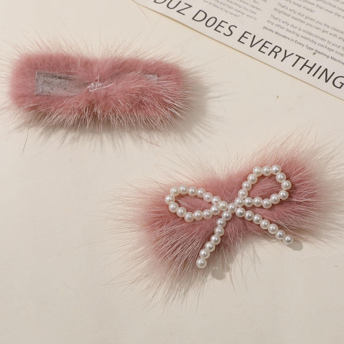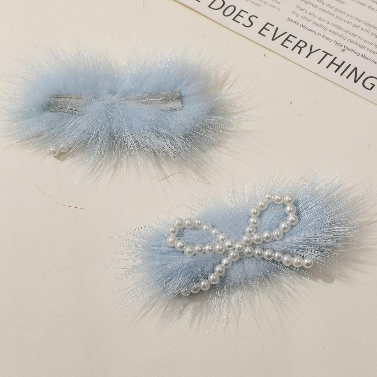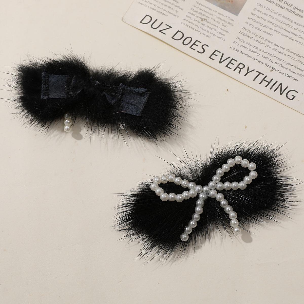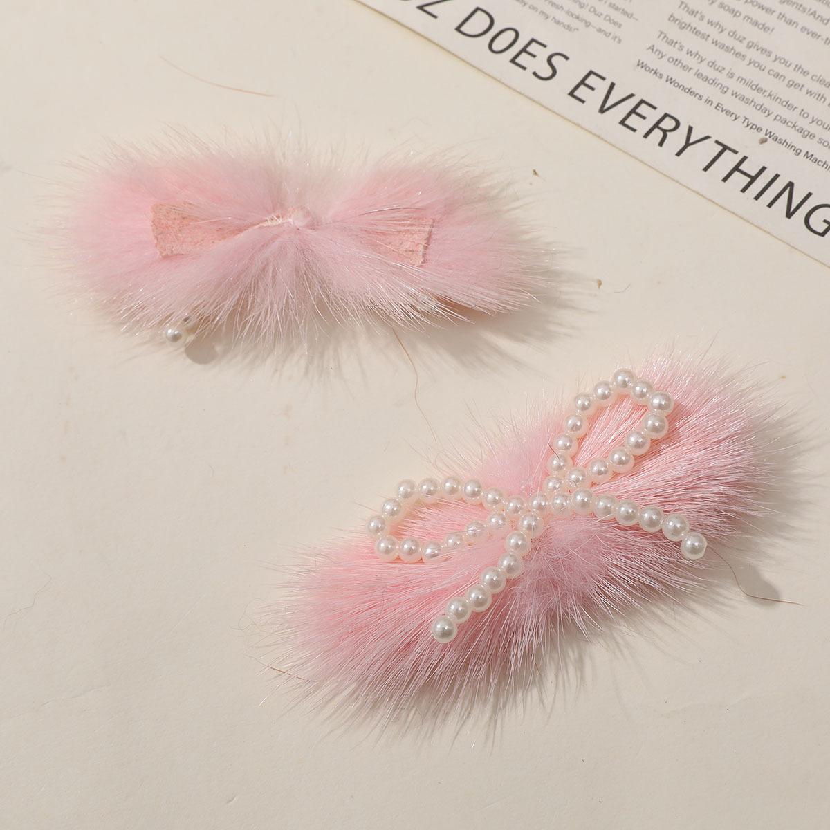 Parche de pelo de visón de principios de otoño para niña, lazo de perla de imitación, horquilla hecha a mano, accesorios para bolso y carcasa de teléfono móvil