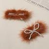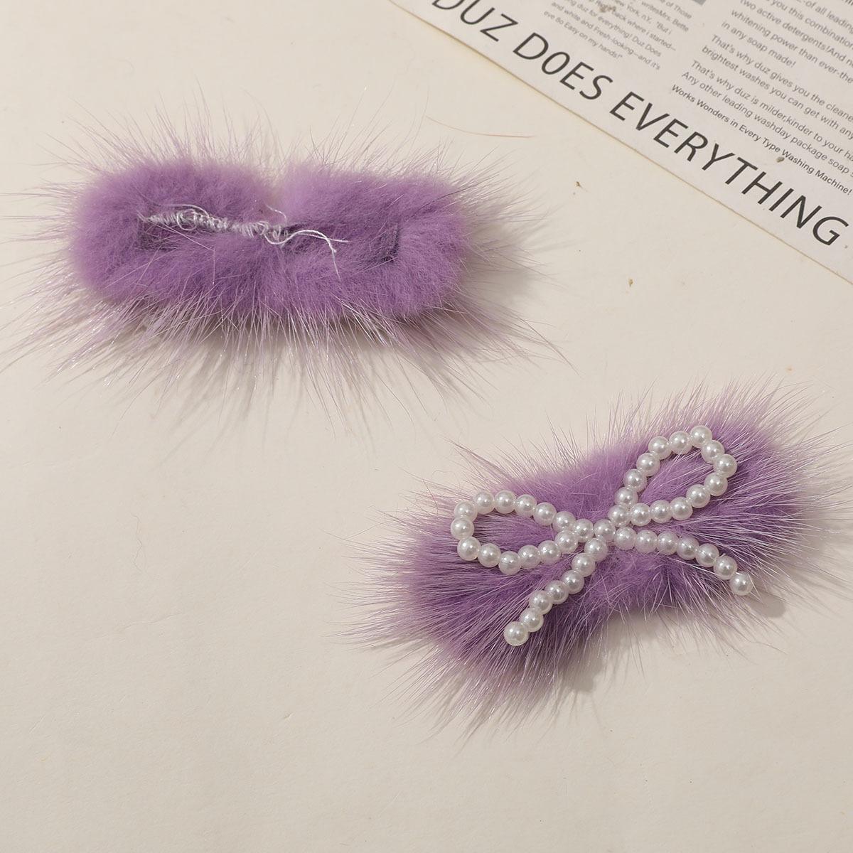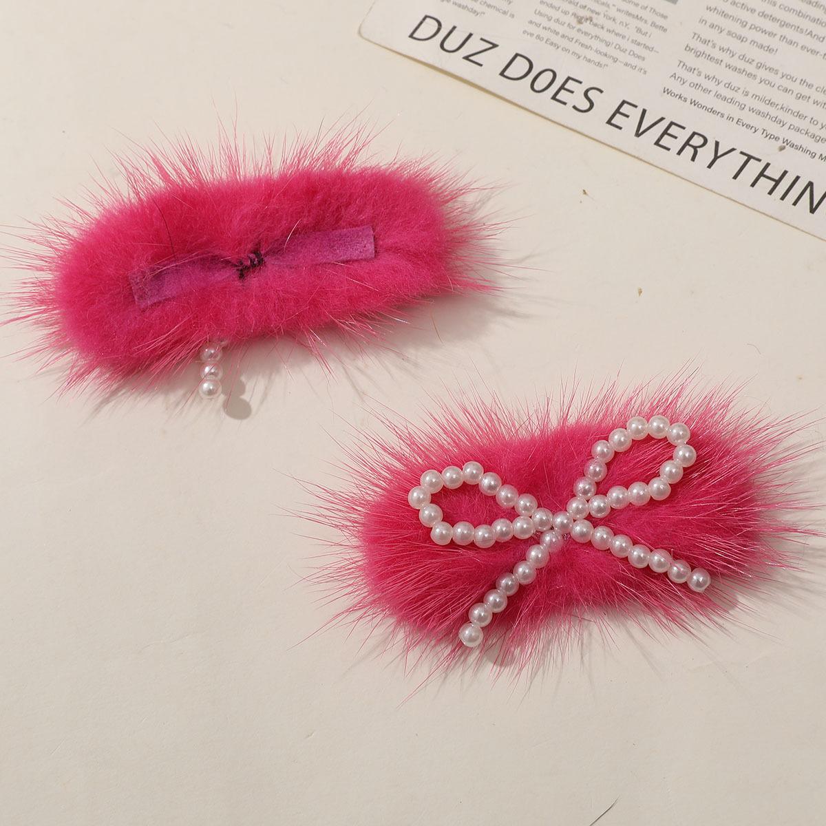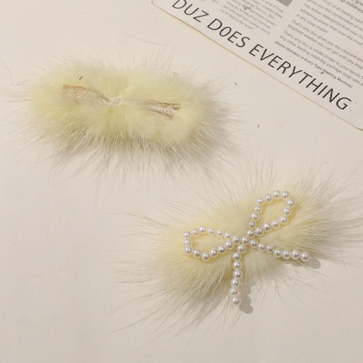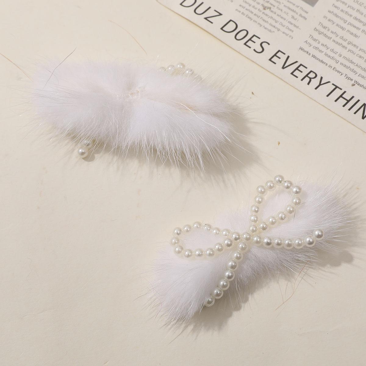 Parche de pelo de visón de principios de otoño para niña, lazo de perla de imitación, horquilla hecha a mano, accesorios para bolso y carcasa de teléfono móvil