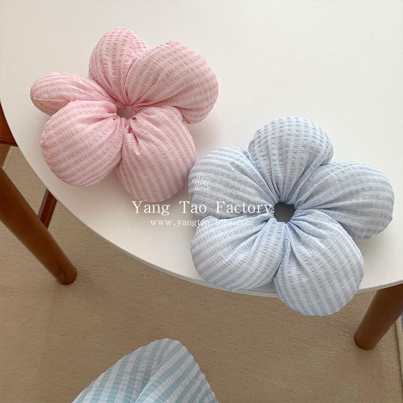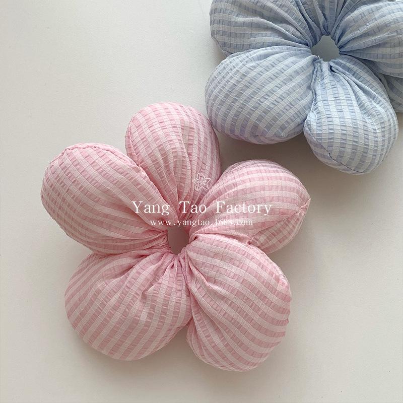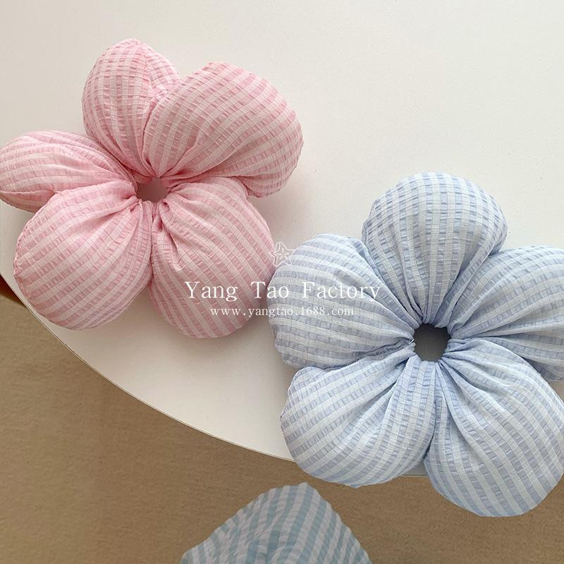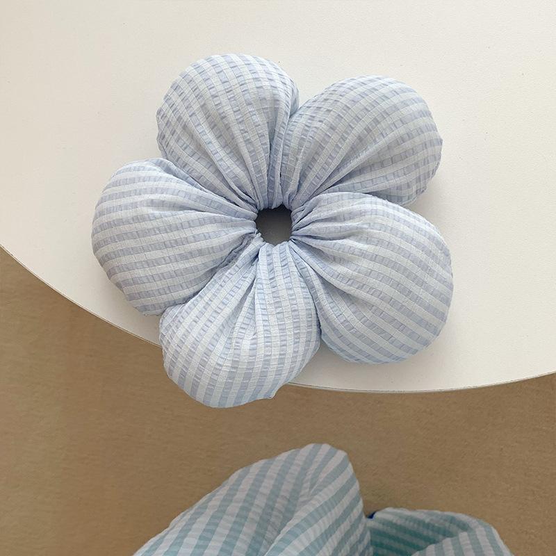 Anillo para el cabello con flor tridimensional extragrande a cuadros azul y rosa estilo coreano, cuerda para el cabello de tendón de goma para mujer, para moño, coleta, accesorios para el cabello
