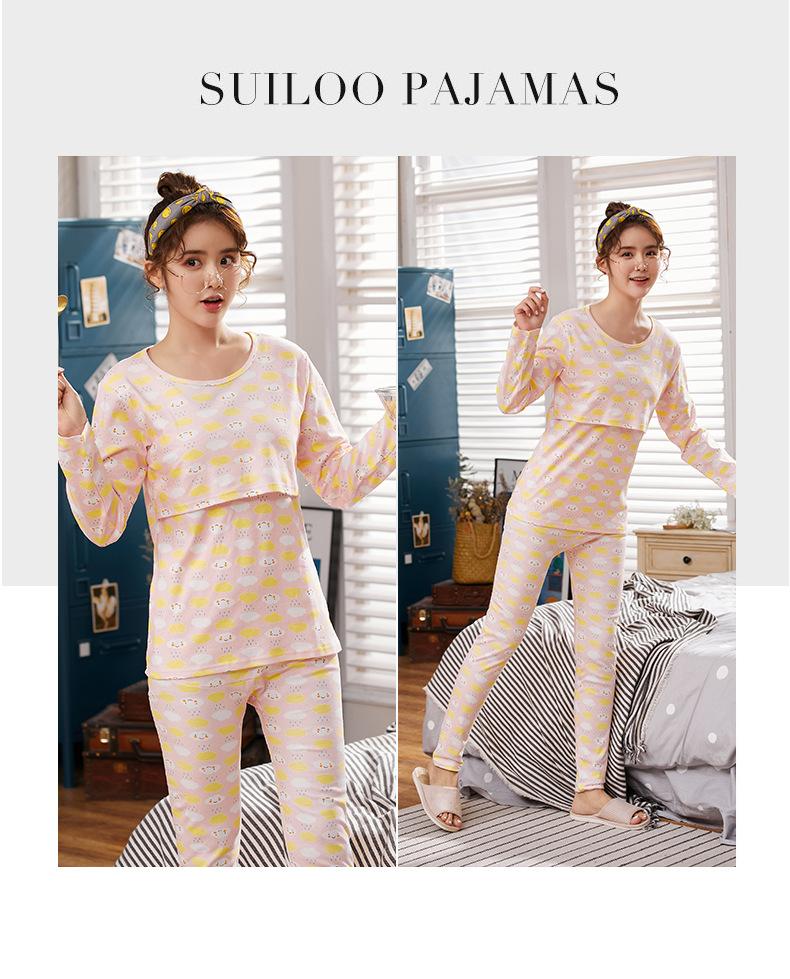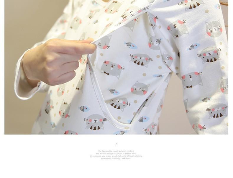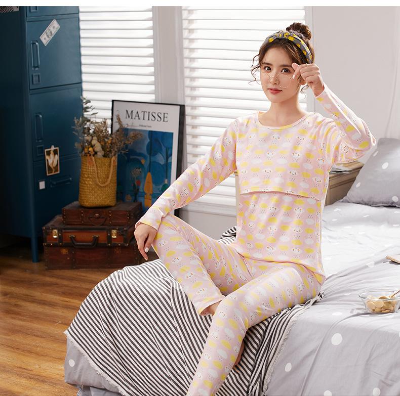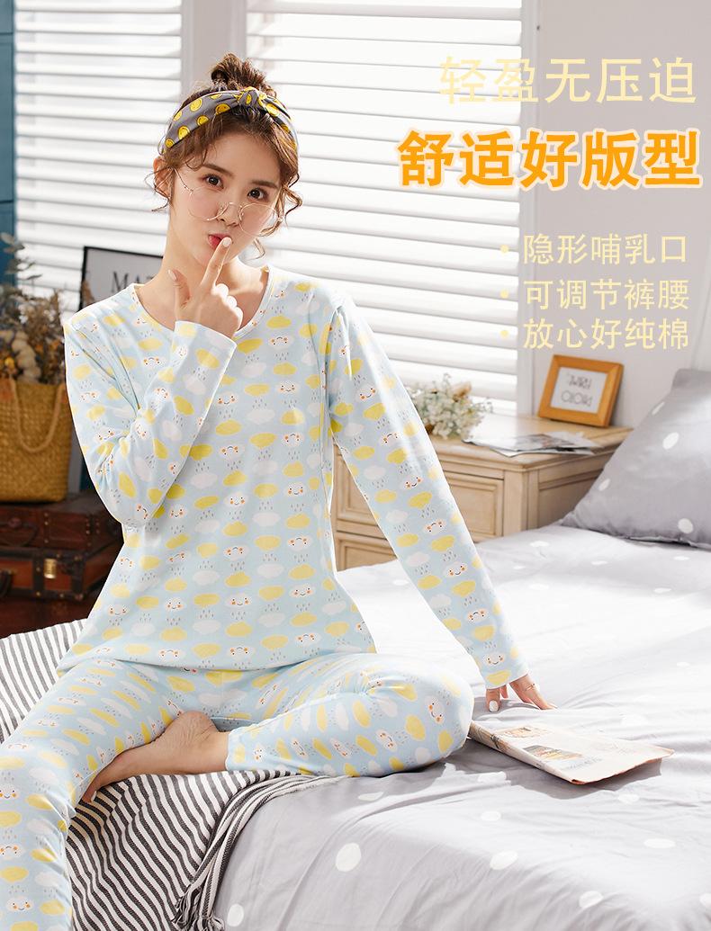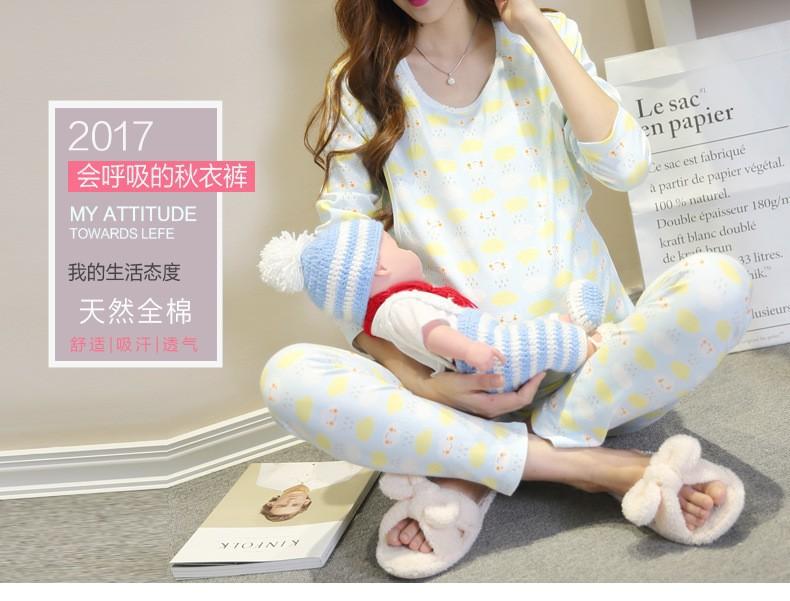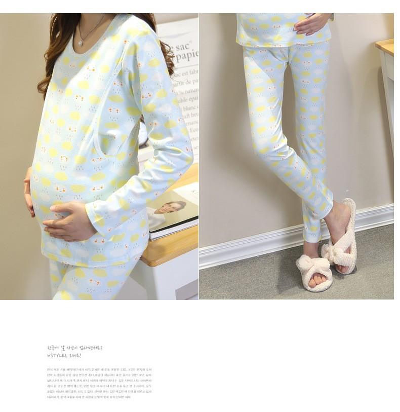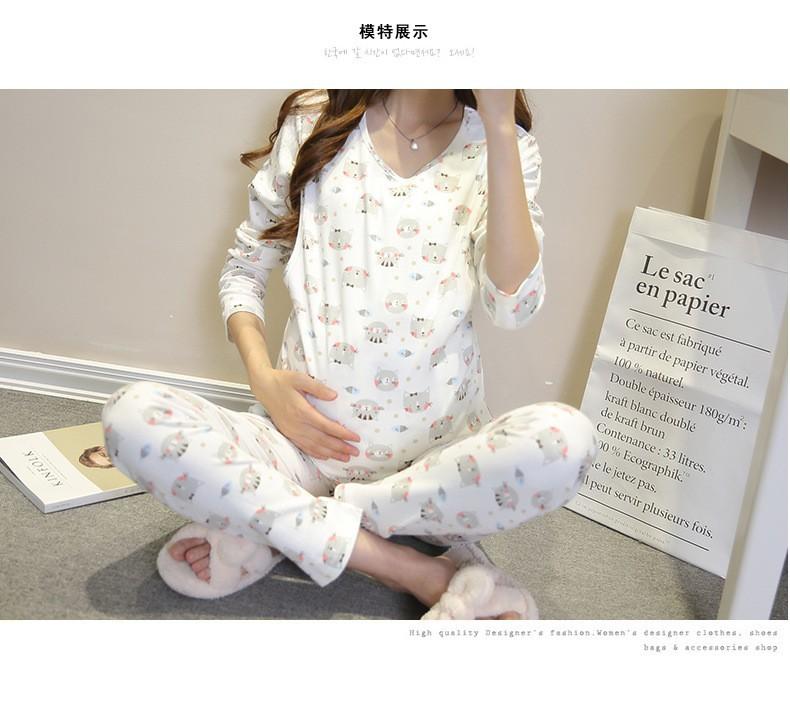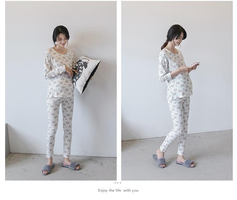Suéter de algodón para embarazadas, ropa de otoño y pantalones, ropa de lactancia, ropa de luna materna, pijamas de lactancia de primavera y otoño, conjunto de talla grande 1091