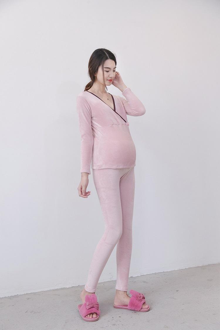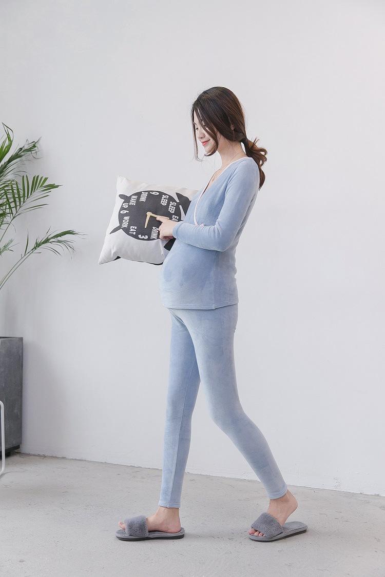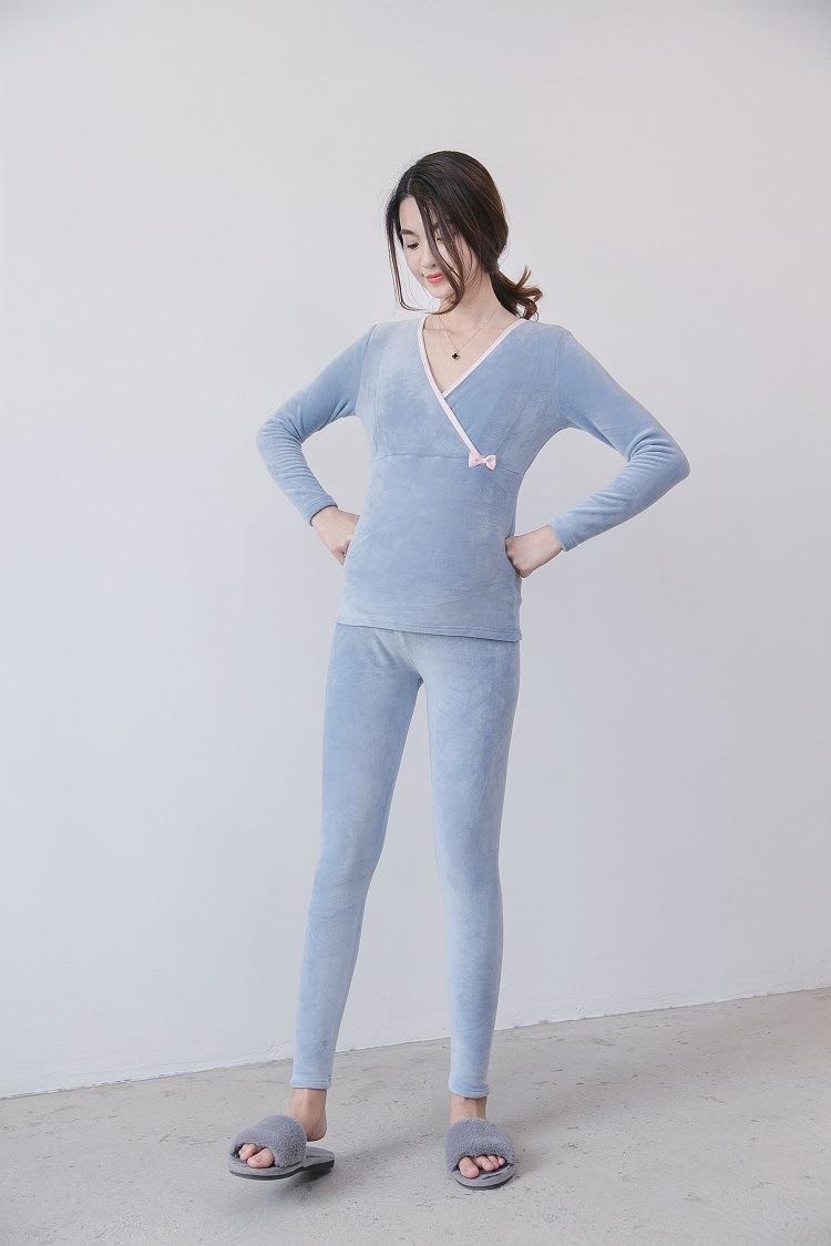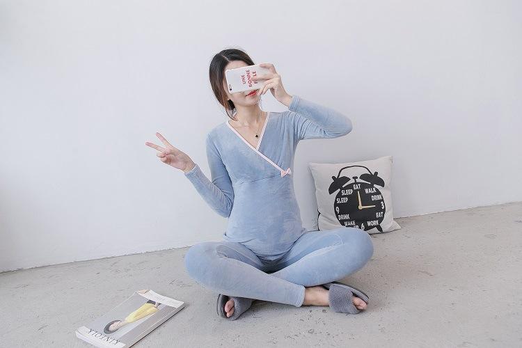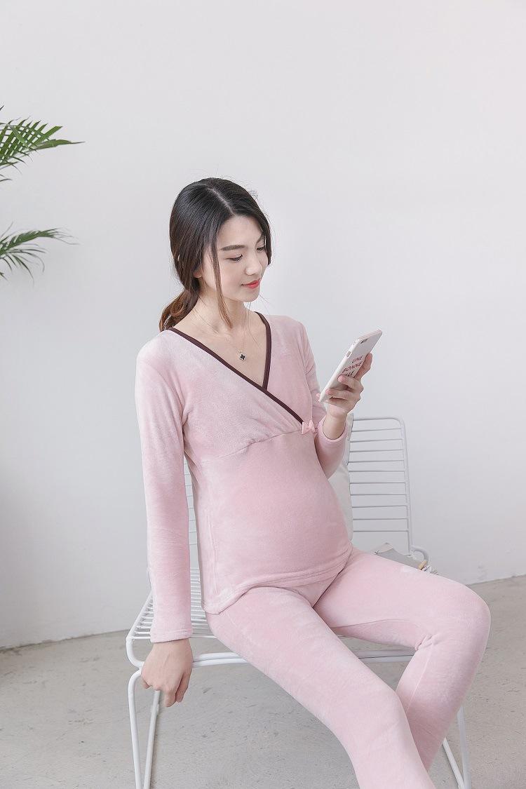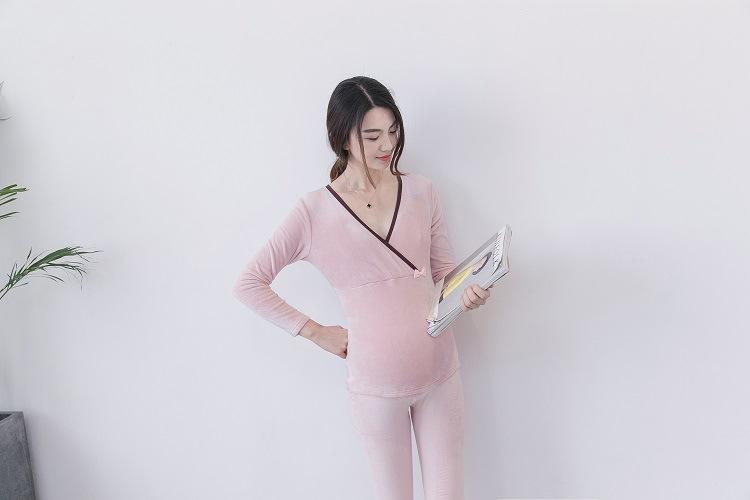 Conjunto de Ropa Interior Térmica para Mujeres Embarazadas Lactancia Postparto Calidad Ropa Mensual Pijama de Lactancia Top de Alimentación Otoño Invierno 1156