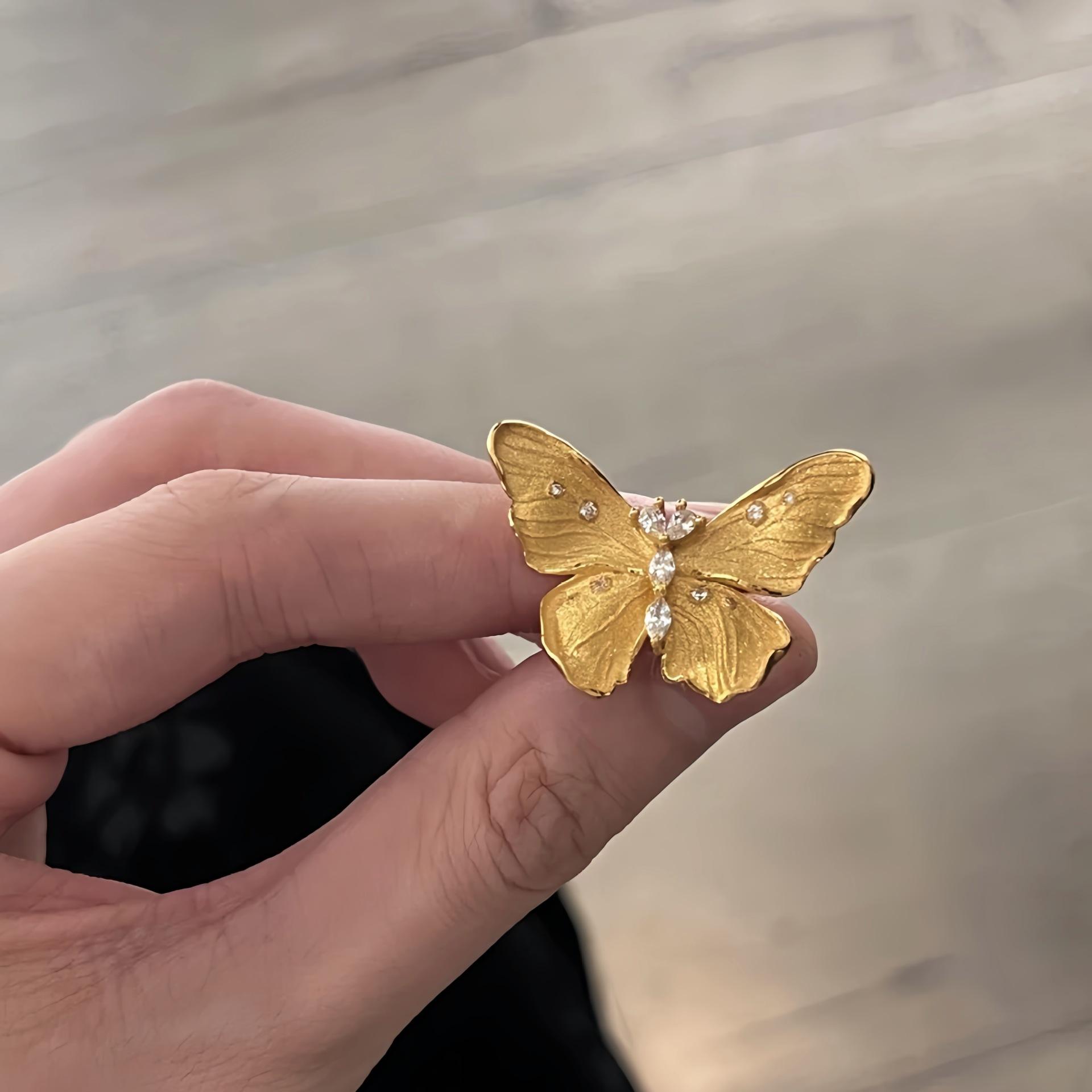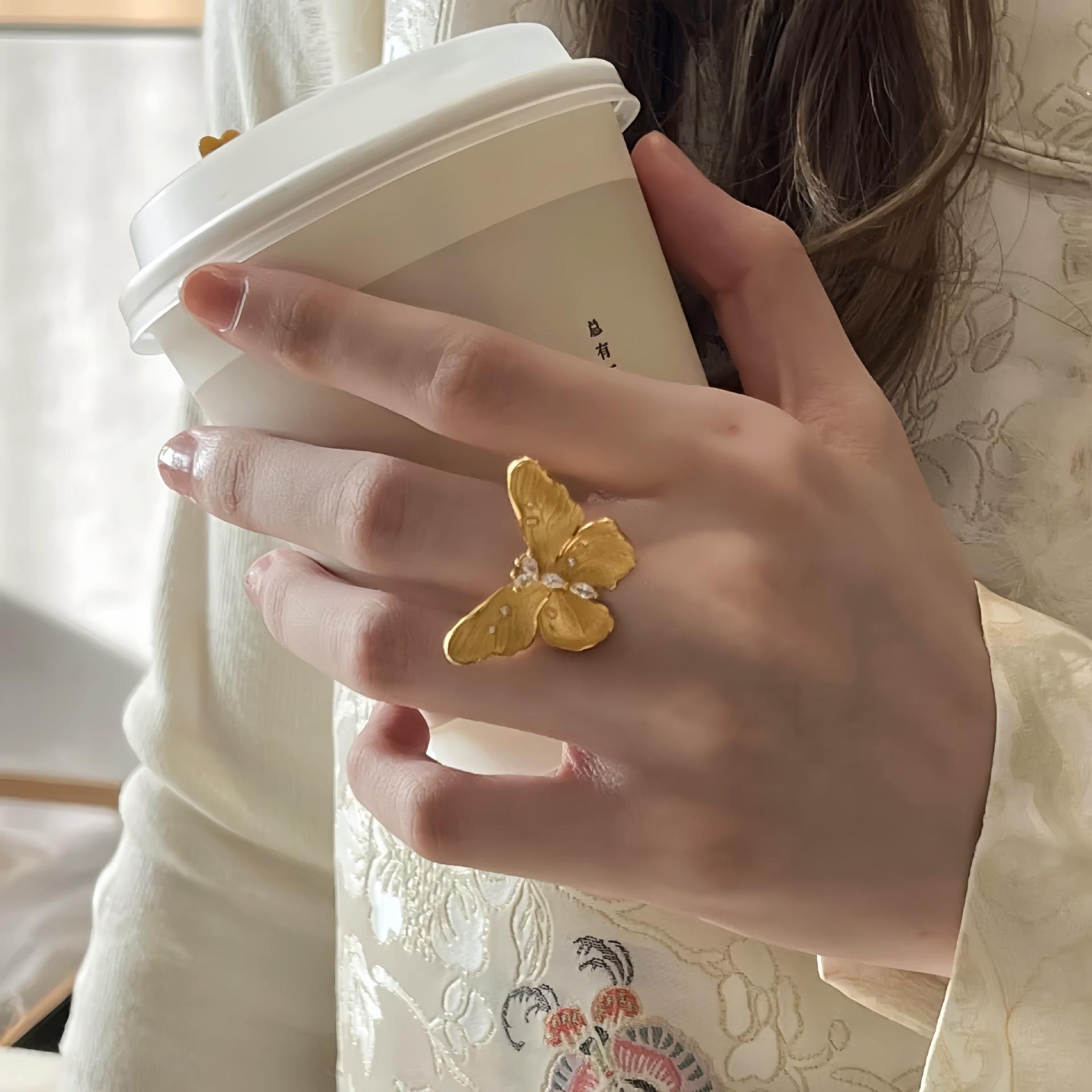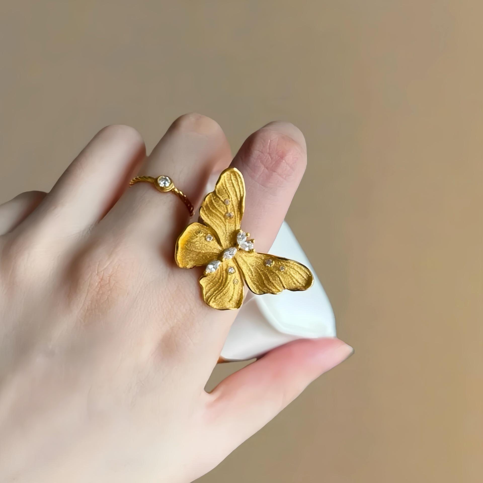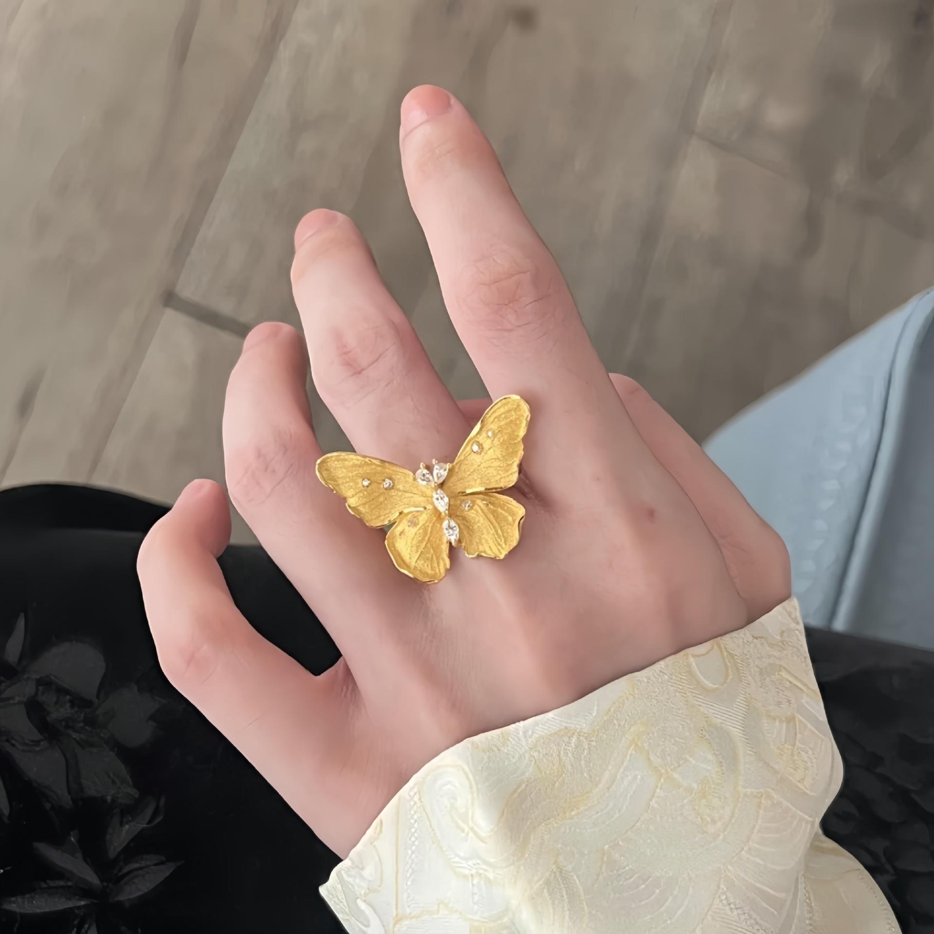 Anillo de Mariposa de Oro Escarchado de Lujo Ligero de Moda Vintage para Mujer, Nicho, Sentido de Alta Gama, Exquisito, Versátil, Elegante, Anillo de Dedo, Pulsera