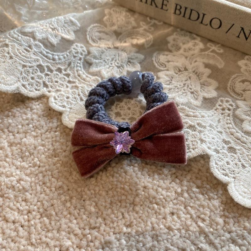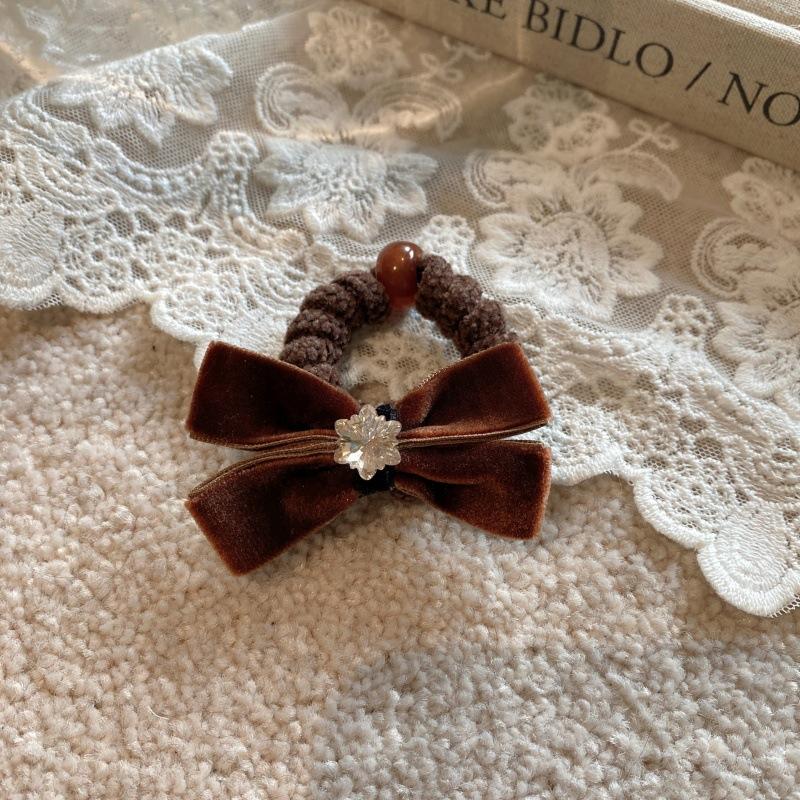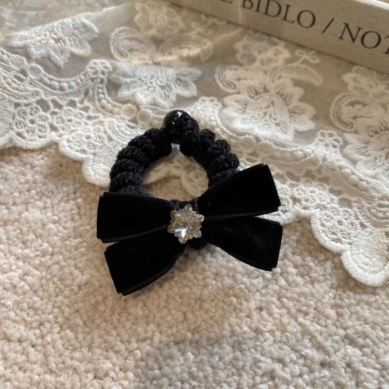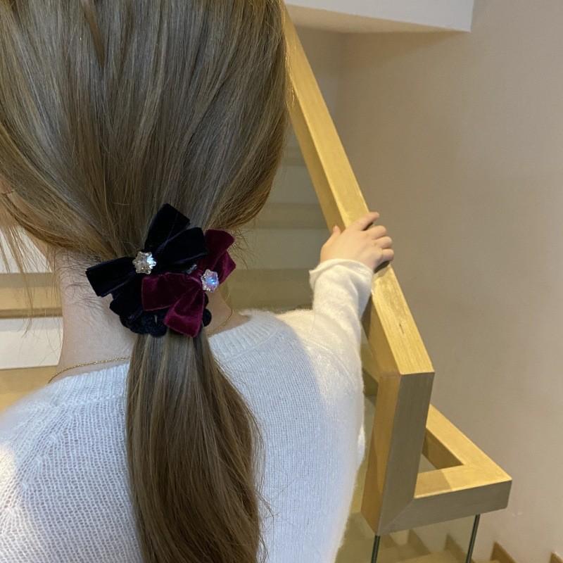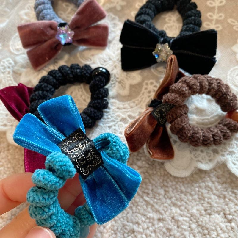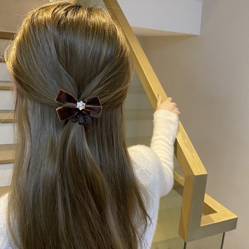 Otoño e invierno lazo flocado anillo para el cabello flor de cristal coreano bola cuerda para el cabello temperamento niña lazo coleta baja cuerda para la cabeza