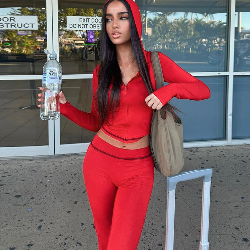 Cárdigan con capucha y estampado de estilo europeo y americano, novedad de verano de 2024, pantalones ajustados de cintura alta deportivos para mujer
