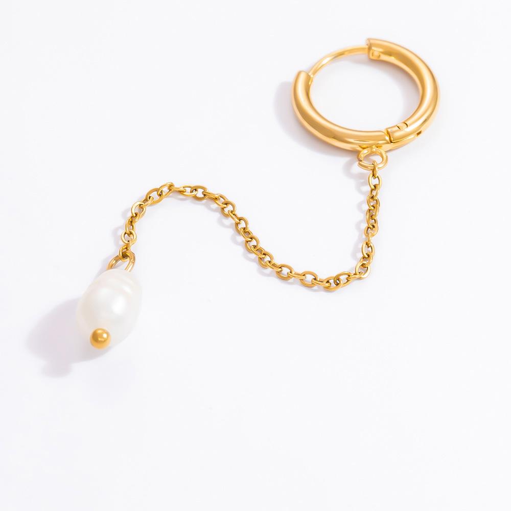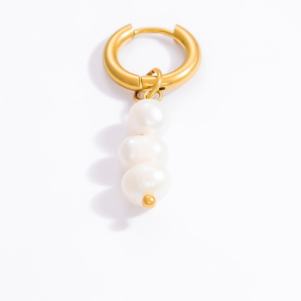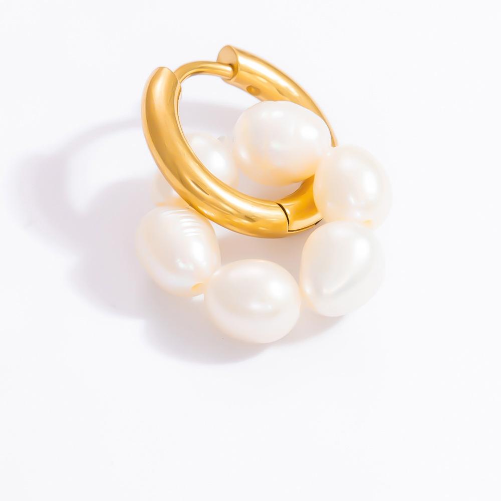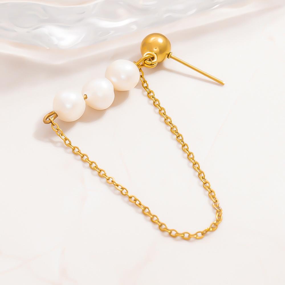 Pendientes de acero inoxidable en oro de 18 quilates con estilo INS de moda europea y americana, pendientes colgantes de perlas de agua dulce naturales, pendientes avanzados de otoño e invierno.