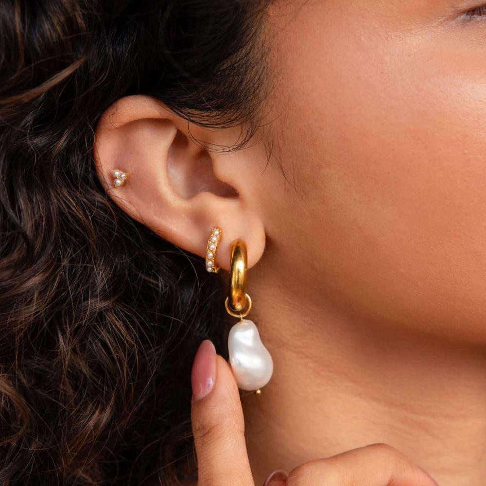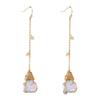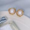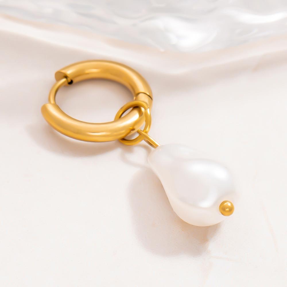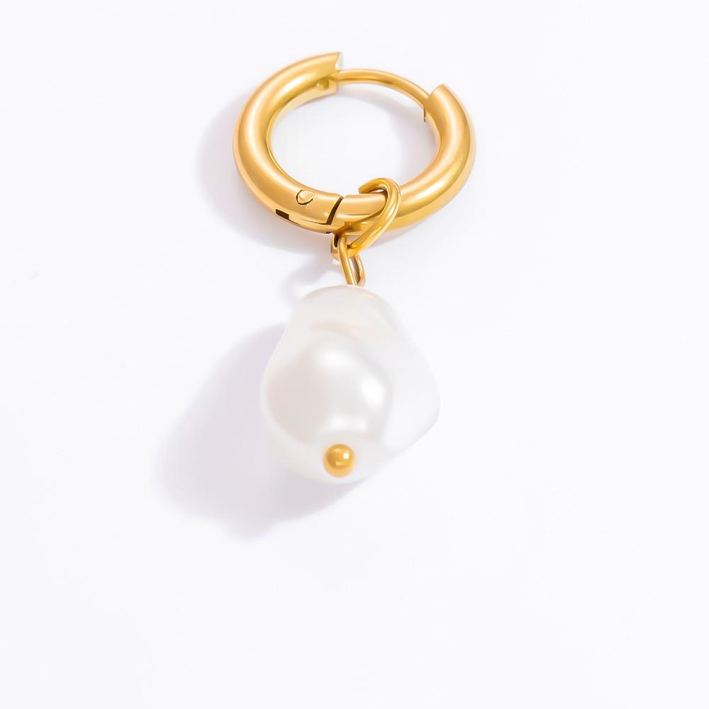 Pendientes de acero inoxidable en oro de 18 quilates con estilo INS de moda europea y americana, pendientes colgantes de perlas de agua dulce naturales, pendientes avanzados de otoño e invierno.