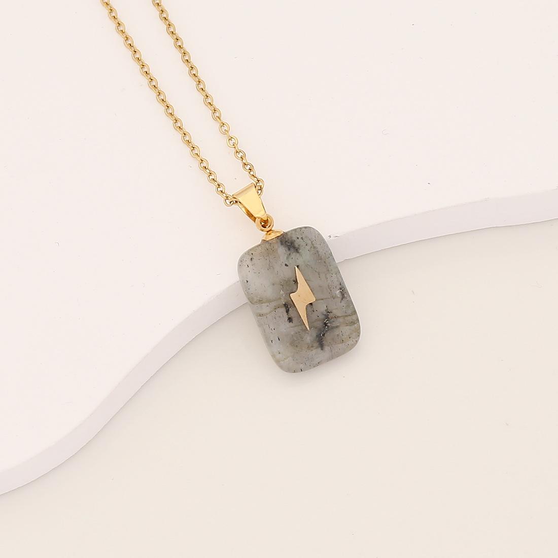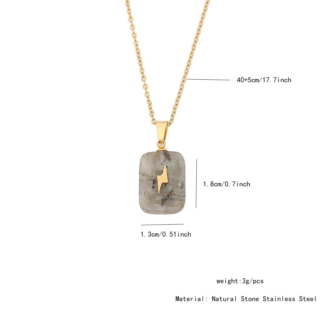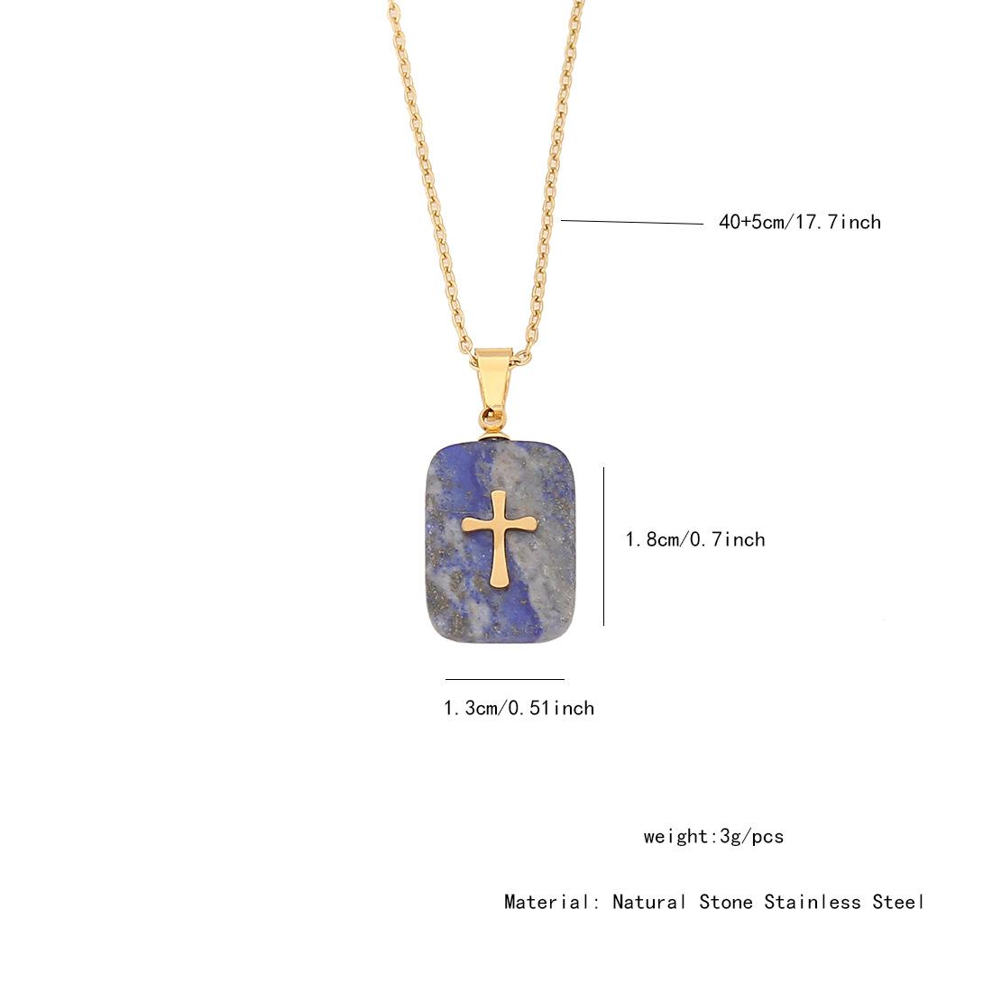 [Bingmeng] Colgante largo de piedra natural con forma de cruz de acero inoxidable y relámpago, joyería europea y americana N072
