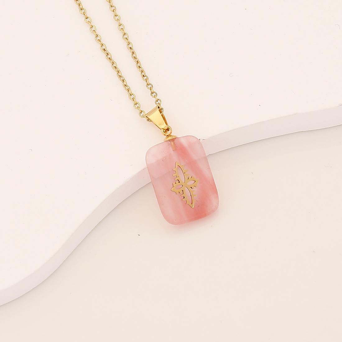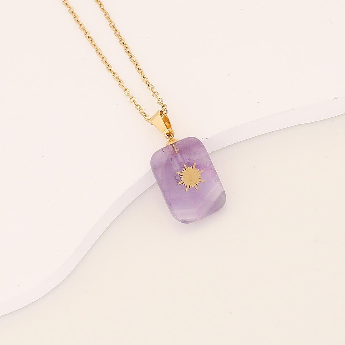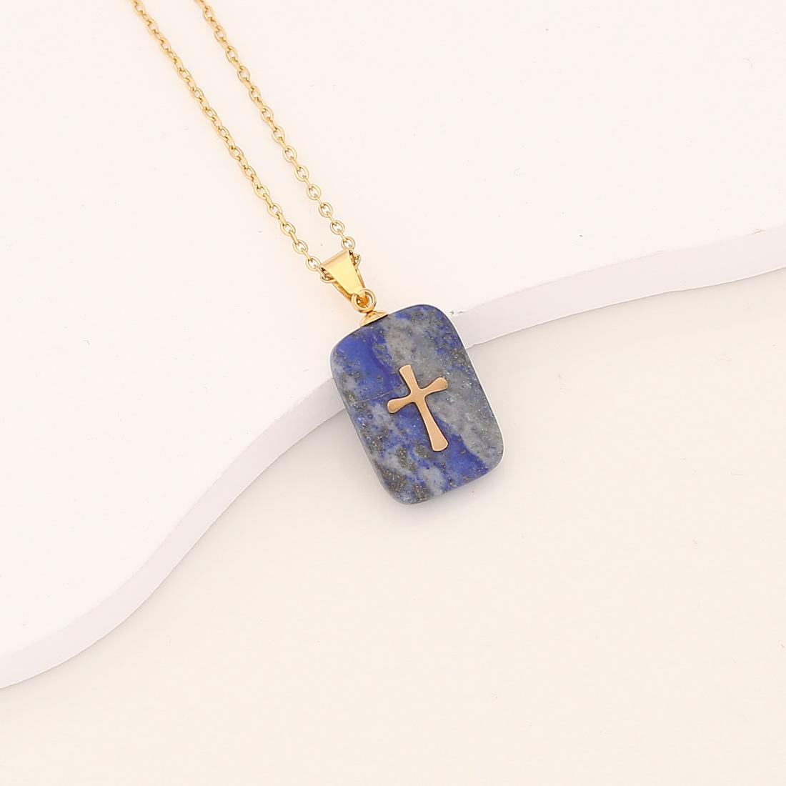 [Bingmeng] Colgante largo de piedra natural con forma de cruz de acero inoxidable y relámpago, joyería europea y americana N072