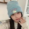 Lindo gorro de lana de punto bordado con cachorro para mujer, nuevo gorro de otoño e invierno 2024, pequeño gorro de cabeza grande que combina con todo.